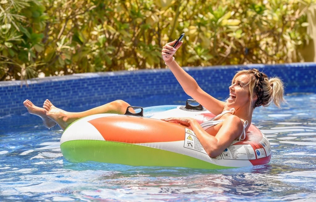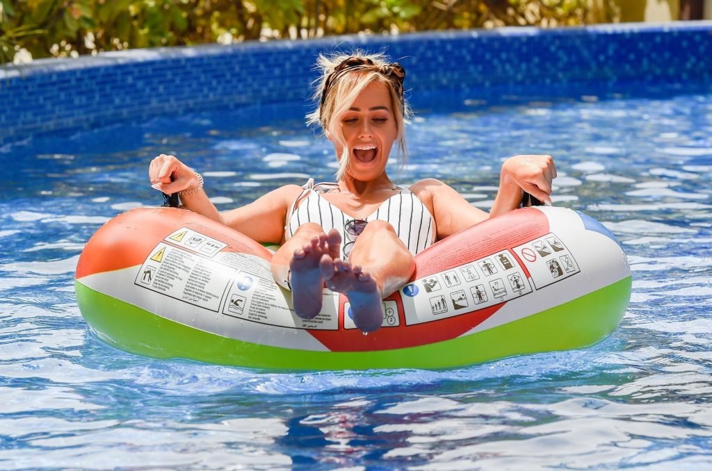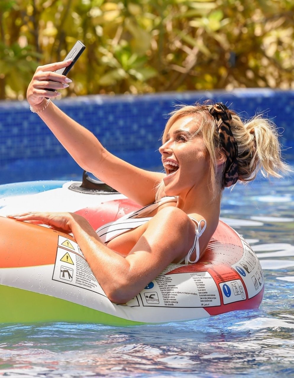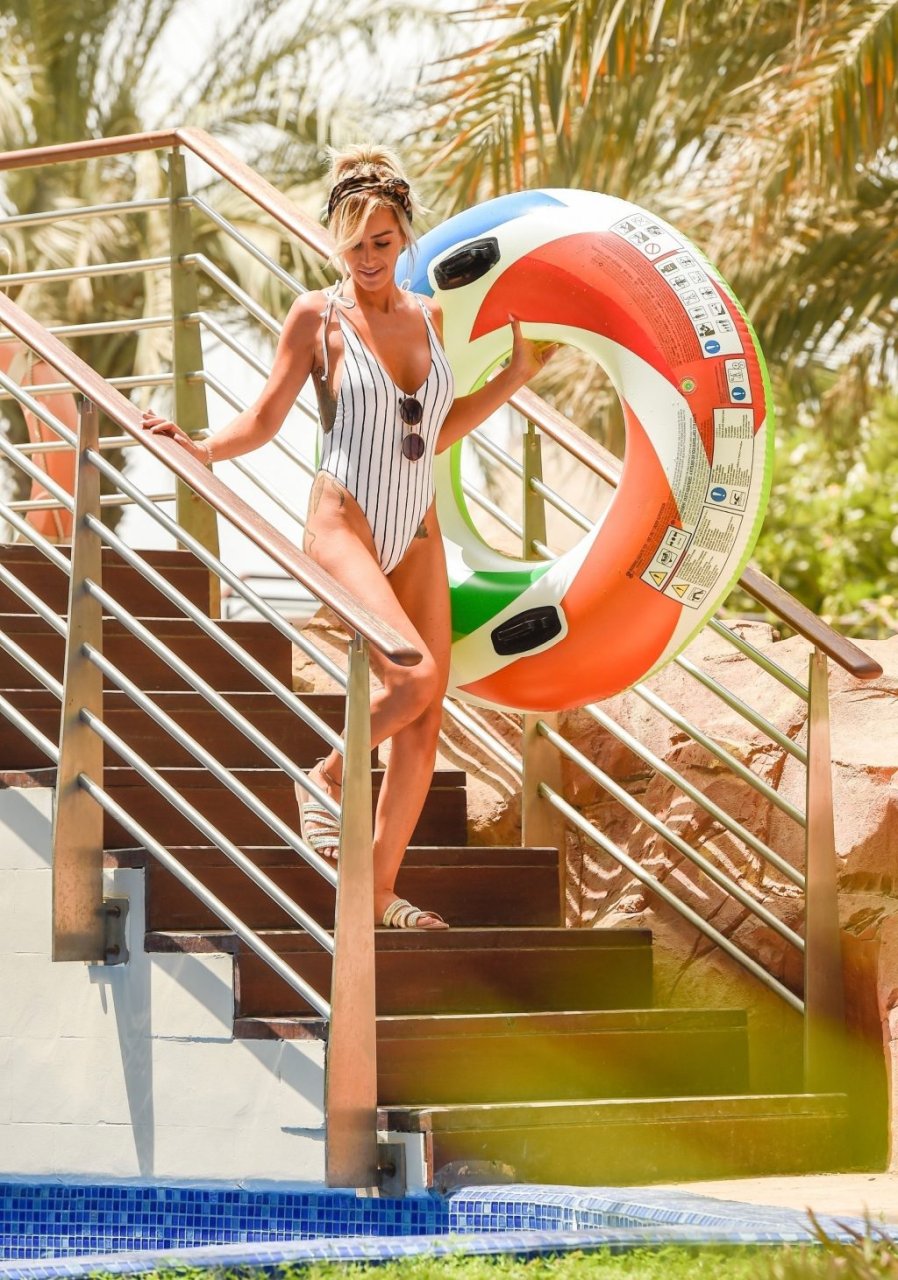 Сексуальная шотландская звезда и финалистка шоу “Остров любви” Лаура Андерсон отдыхает у бассейна, расслабляясь на своем надувном матрасе под жарким солнцем Эмиратов в Дубае, 30.08.2018. В настоящее время Лаура отдыхает без Пола Кноппса, с которым она состояла в паре на шоу ITV!