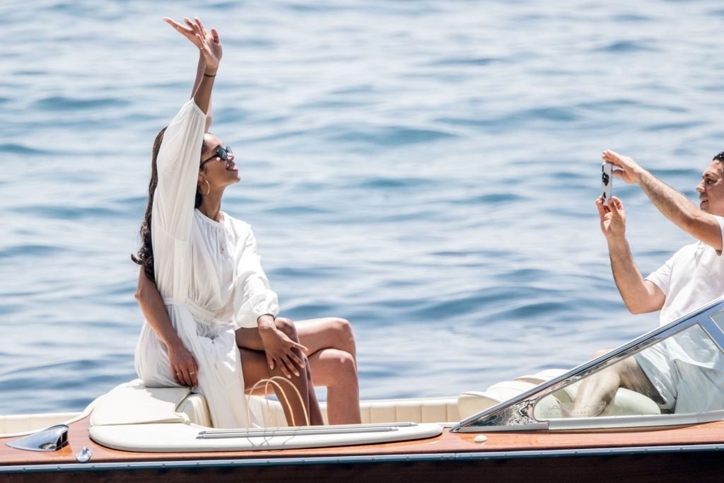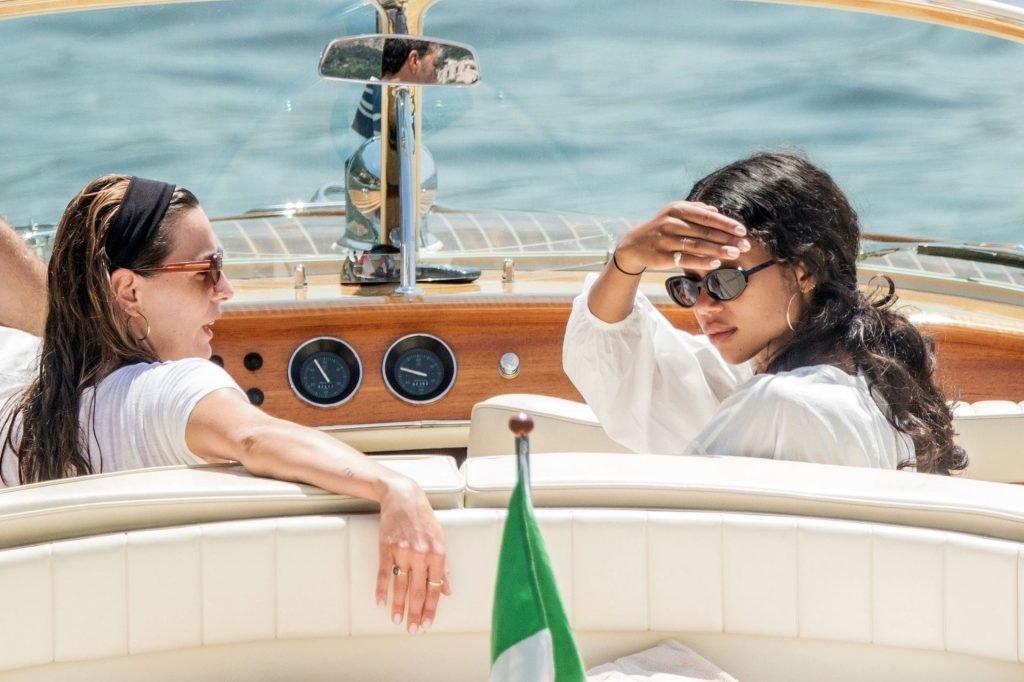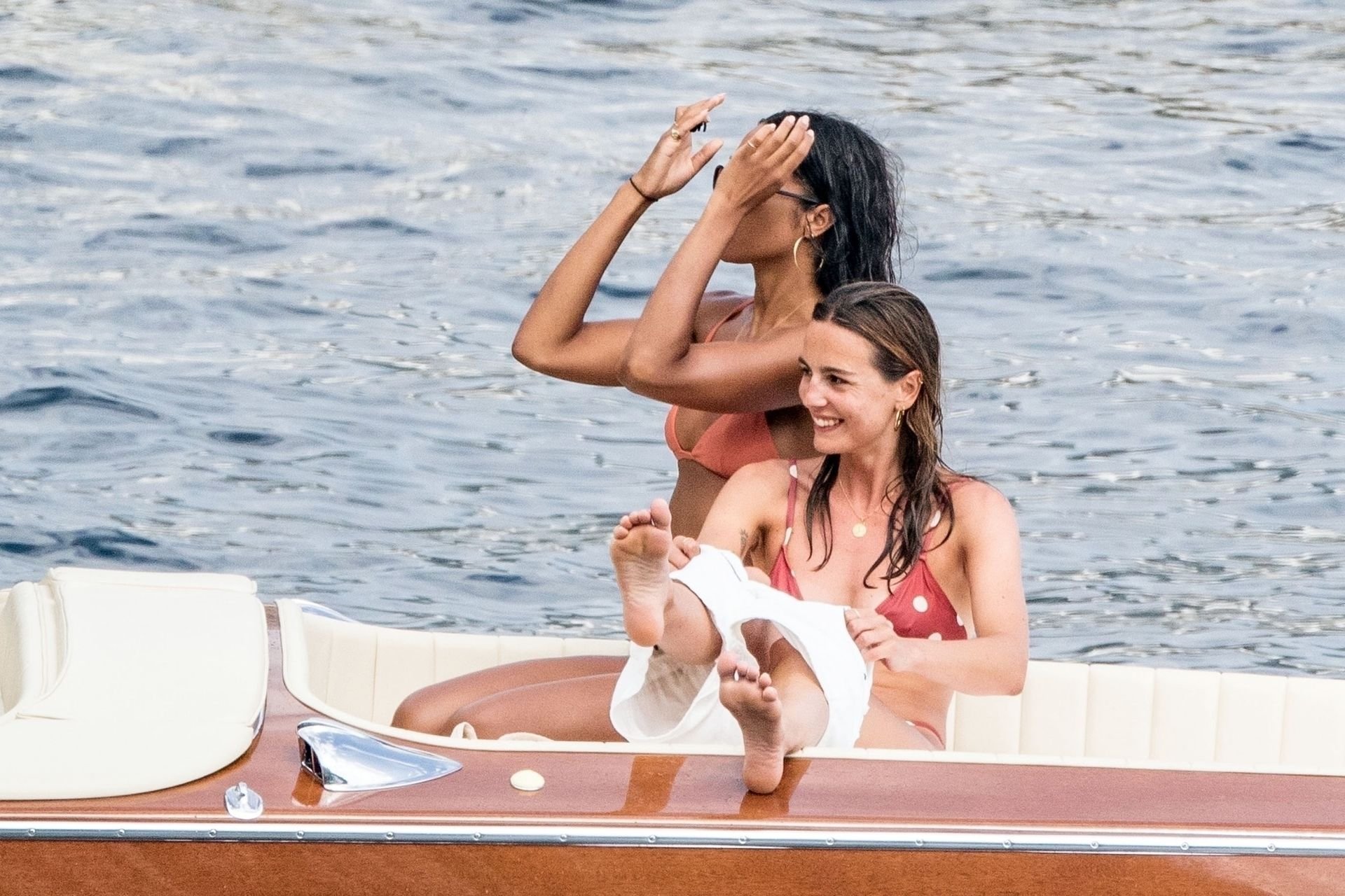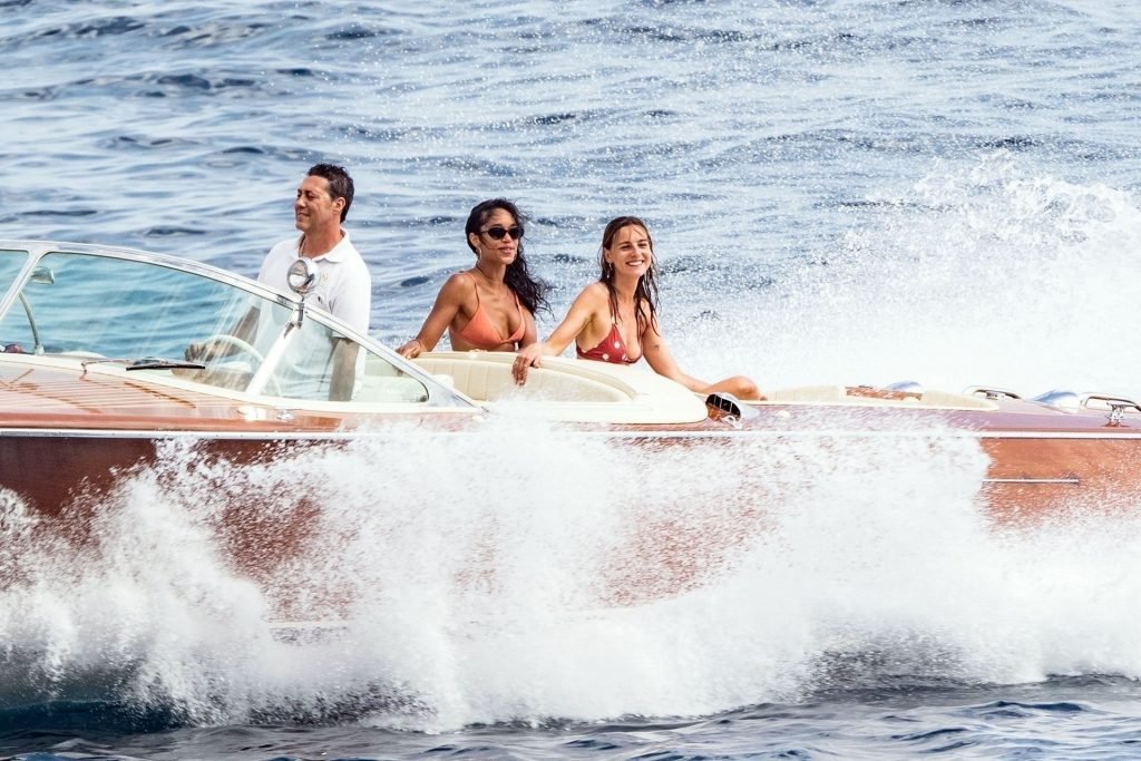 “Человек-паук: Возвращение домой” актриса Лаура Харриер и Элеонор Тулин были замечены веселящимися во время прогулки на лодке в отпуске в Позитано, 17.06.2019.