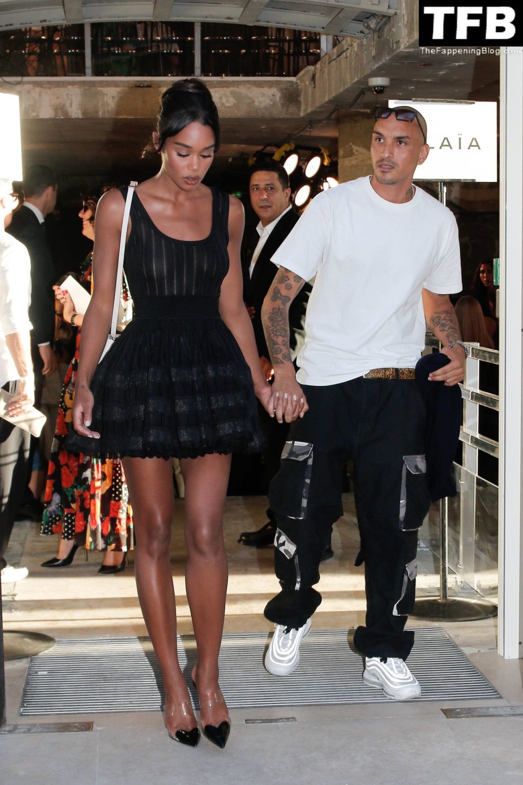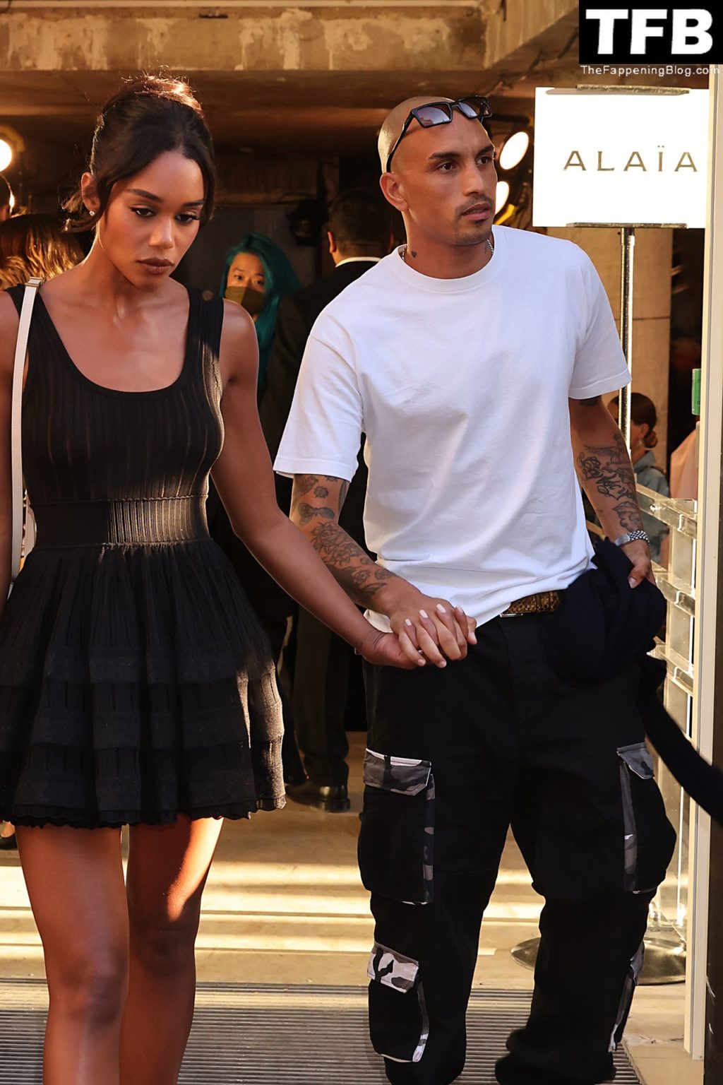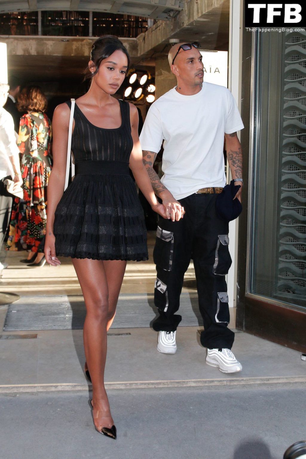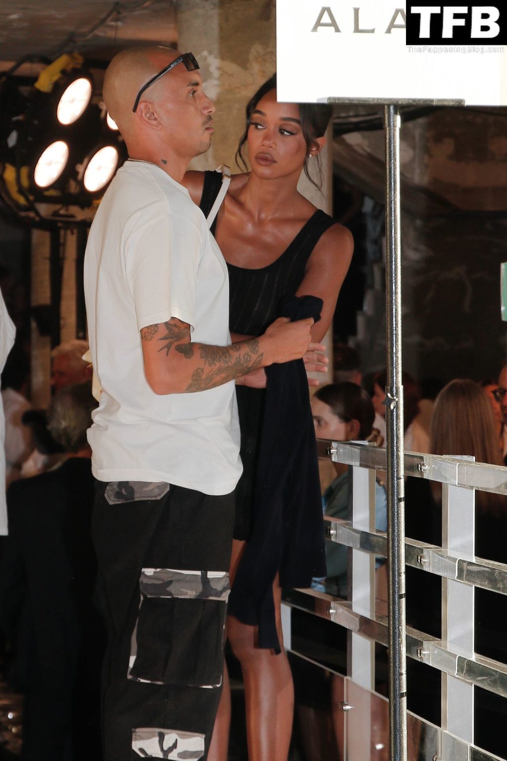 Звезда The Fappening Лаура Харриер и её парень Сэм Жару покидают шоу Alaia во время Парижской недели моды, 07/03/2022.