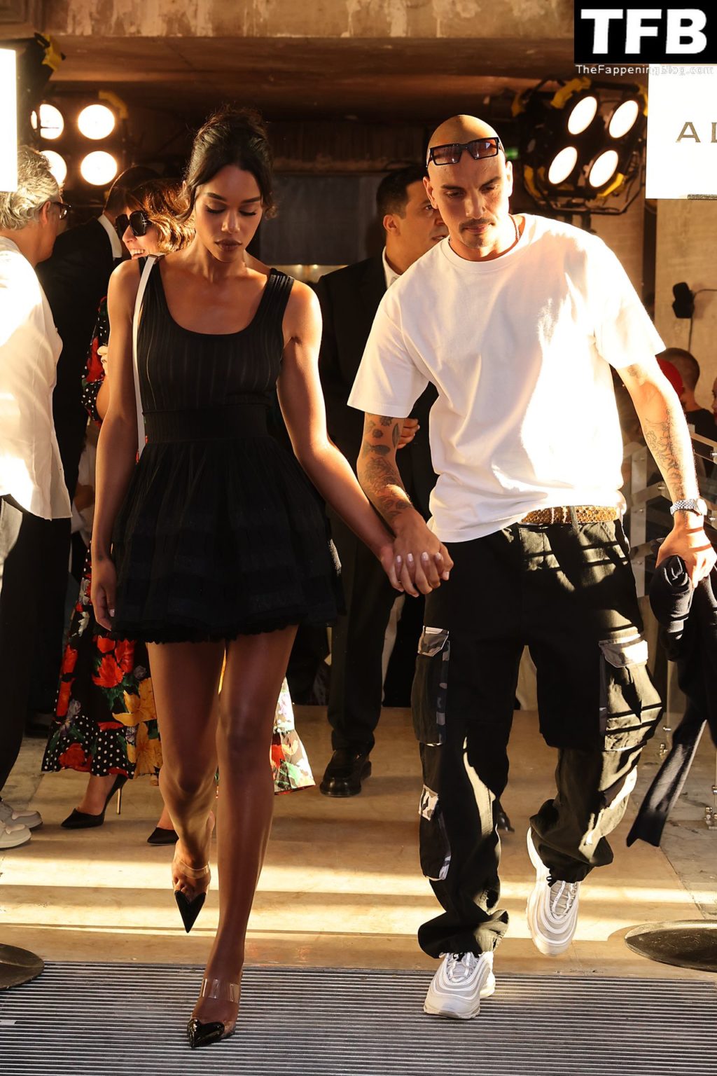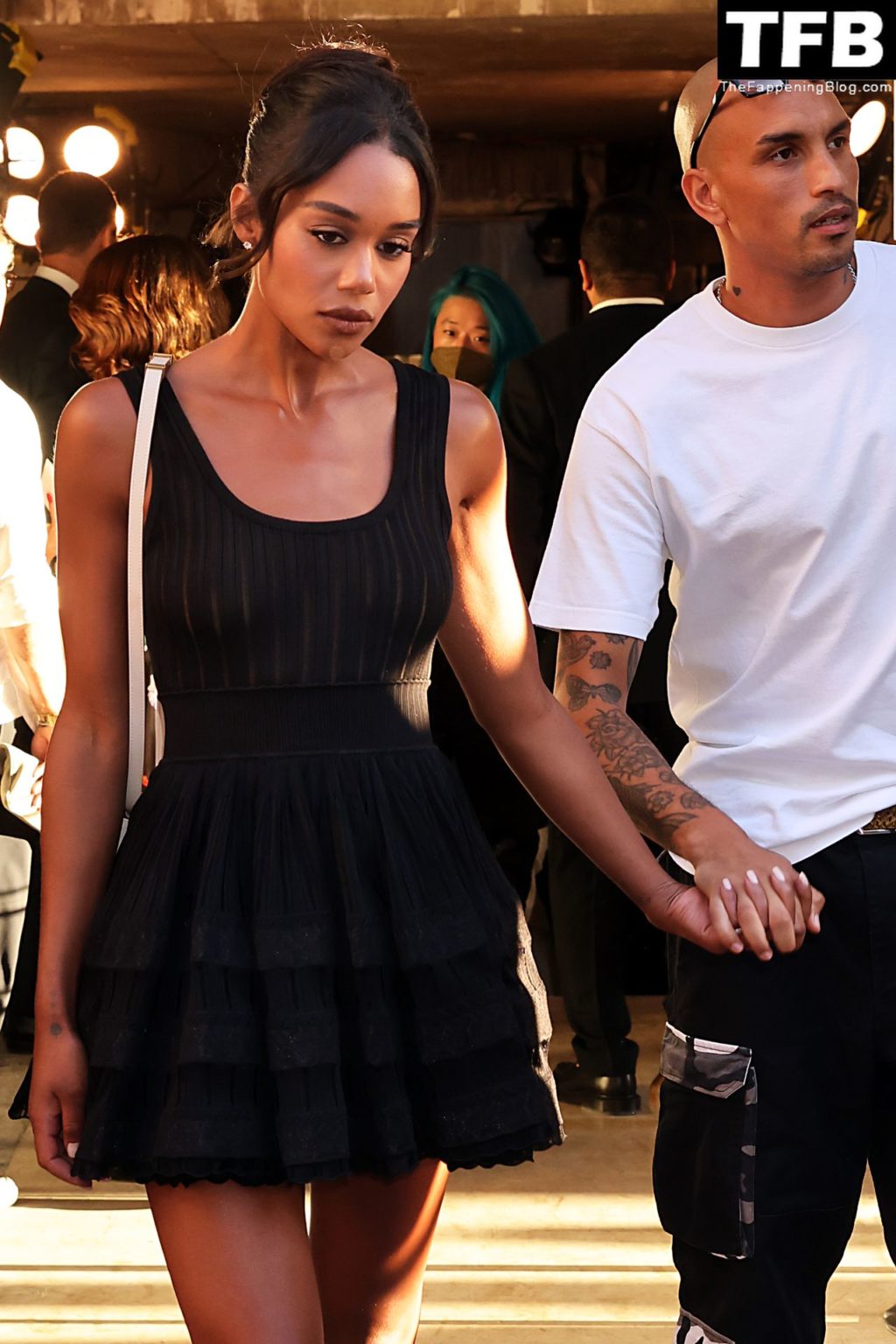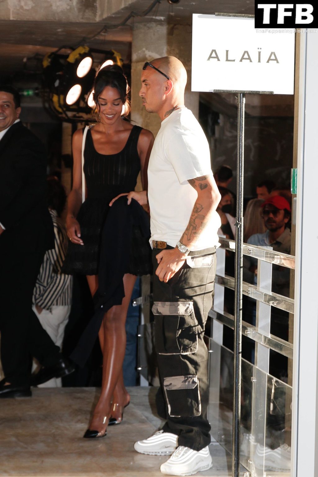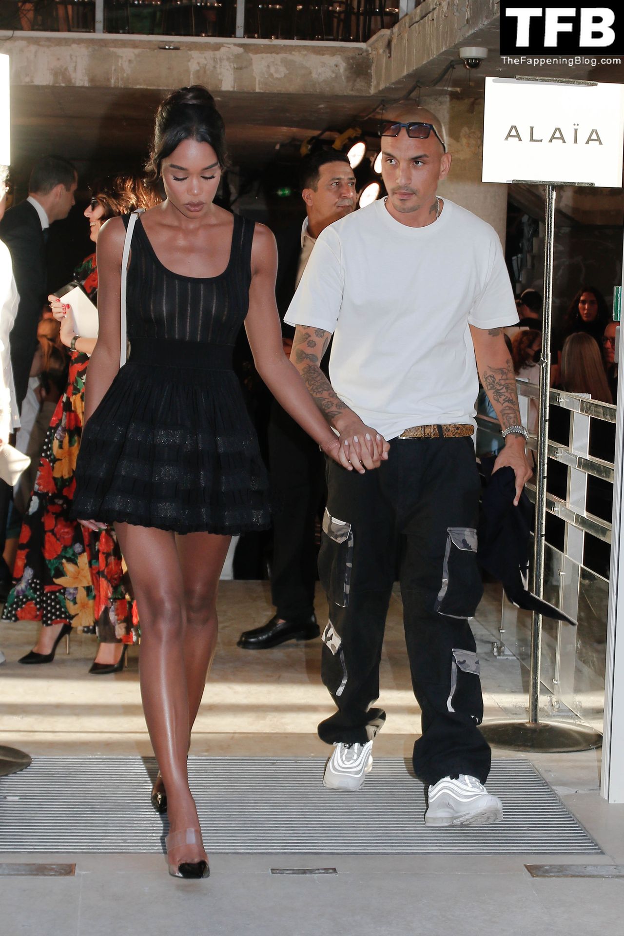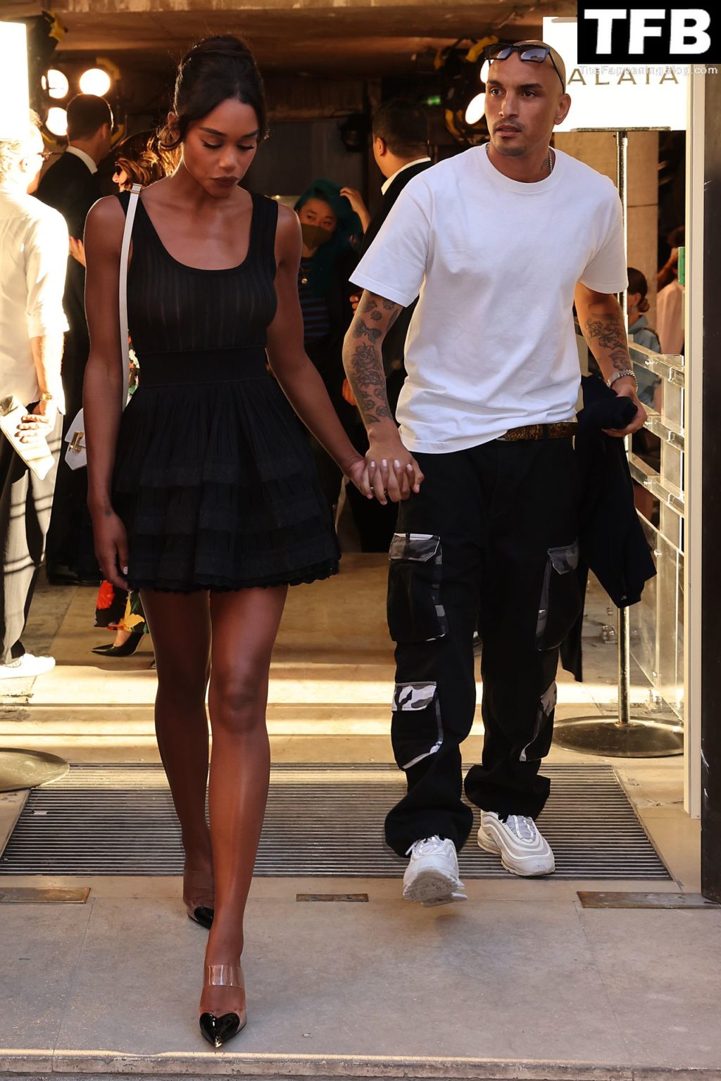 Звезда The Fappening Лаура Харриер и её парень Сэм Жару покидают шоу Alaia во время Парижской недели моды, 07/03/2022.
