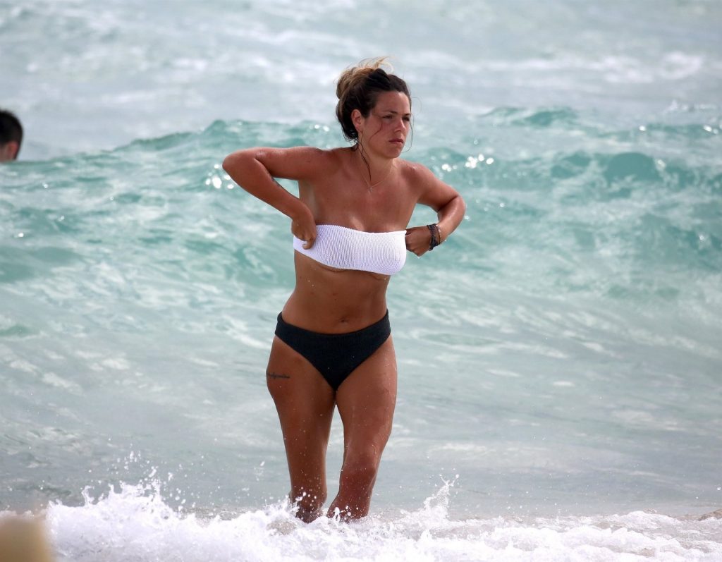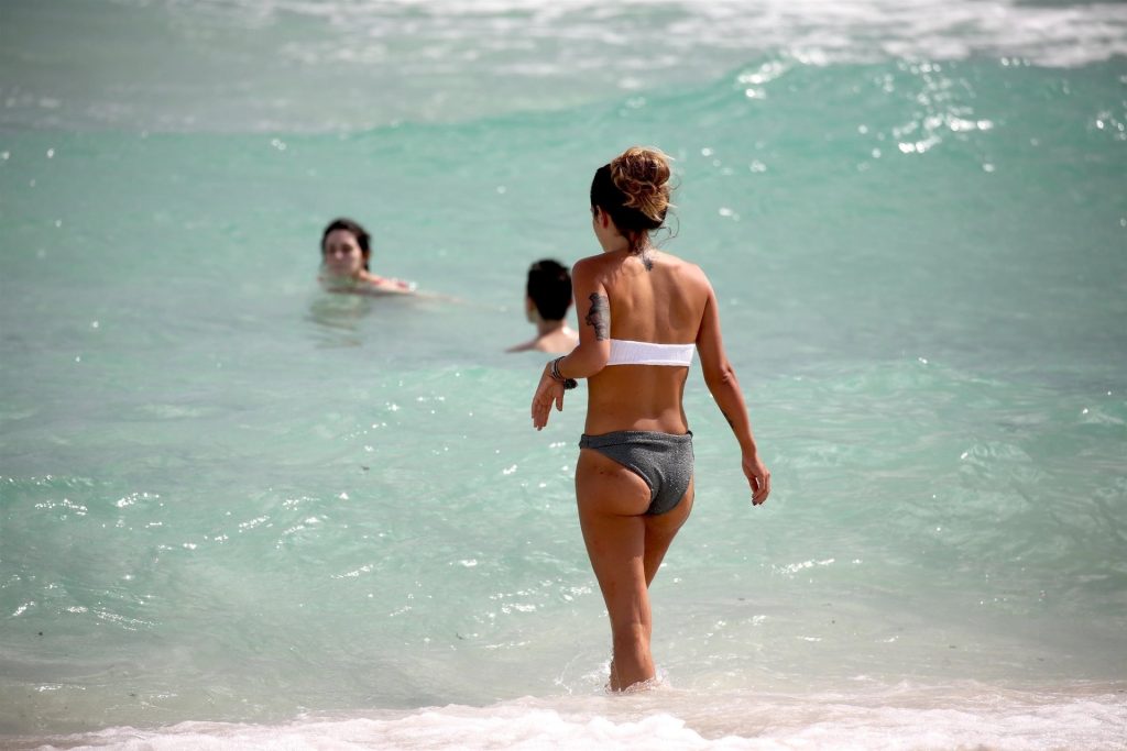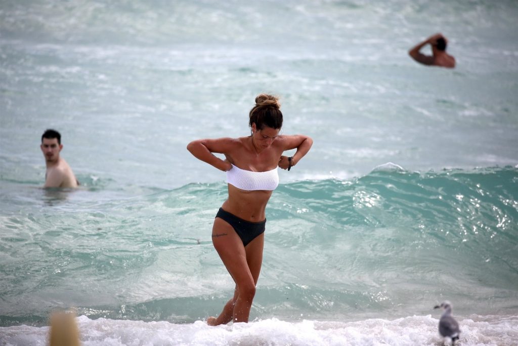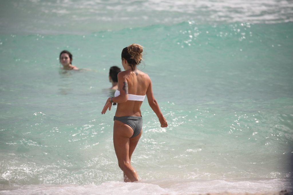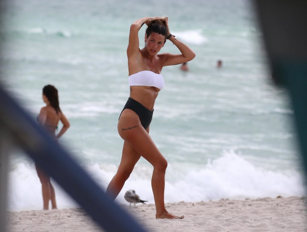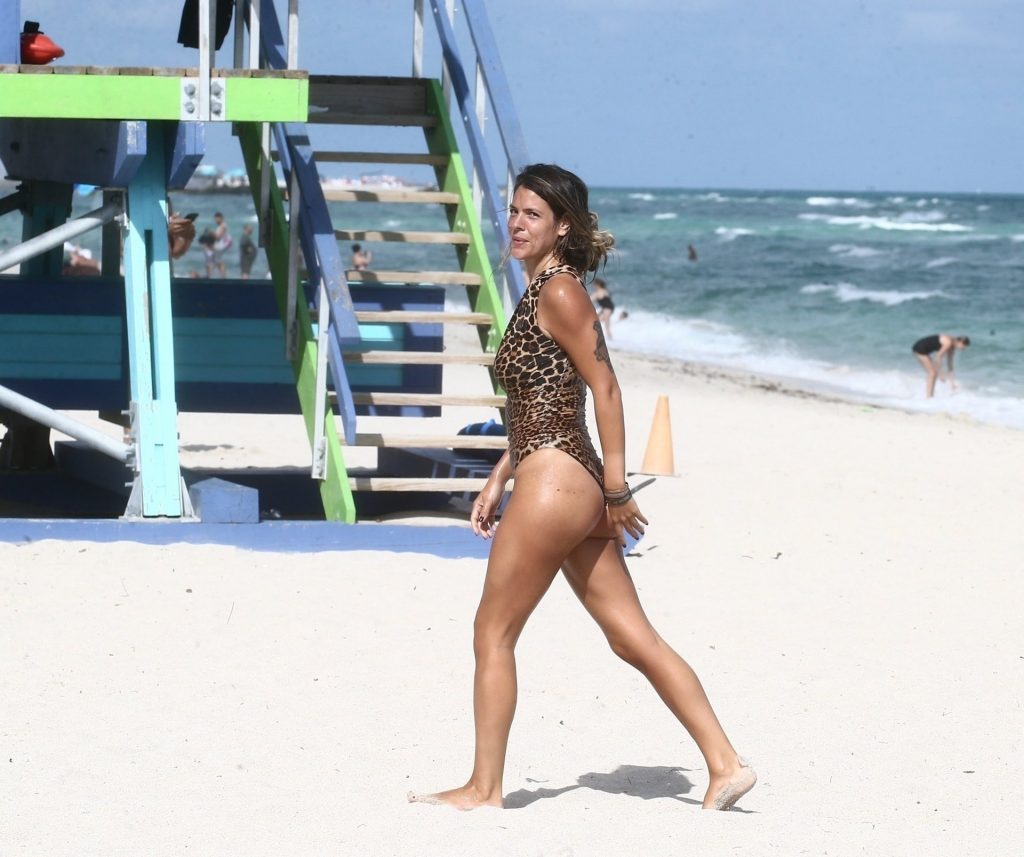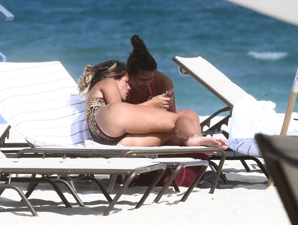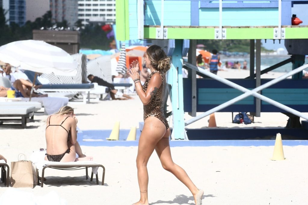 Испанская инфлюенсер Лаура Матаморос зажигает на Майами-Бич! звезда социальных сетей продемонстрировала свою фигуру в леопардовом цельном купальнике, а затем переоделась в белый топ-трубу и серые плавки, 16.12.2019.