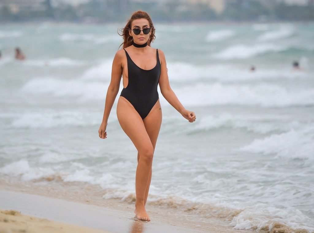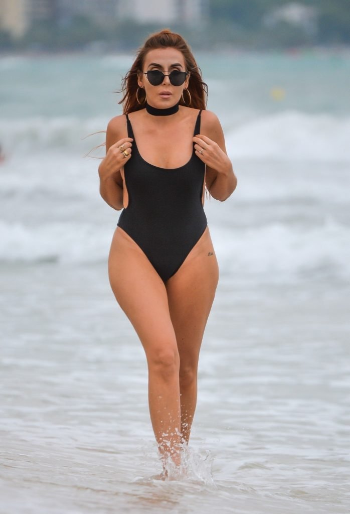 Лаура Симпсон, тусовщица, которая была замечена с рекордсменом Англии по голам Уэйном Руни, замечена на пляже в черном купальнике во время отпуска на Майорке, 10/02/2017.