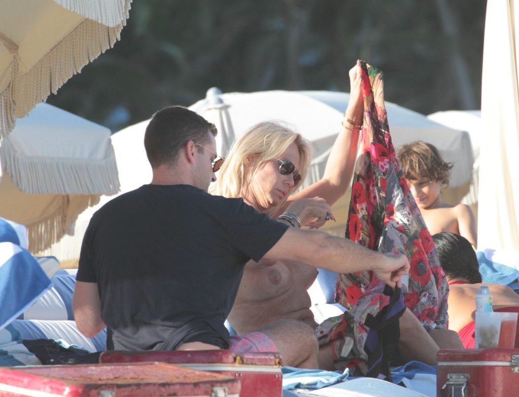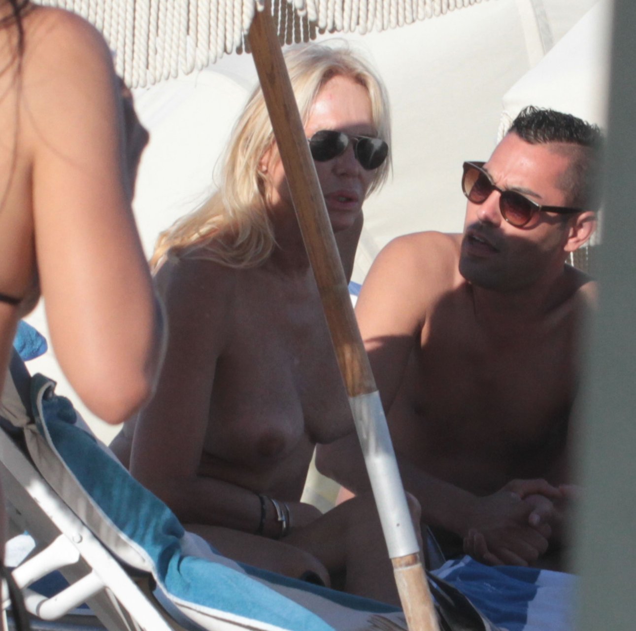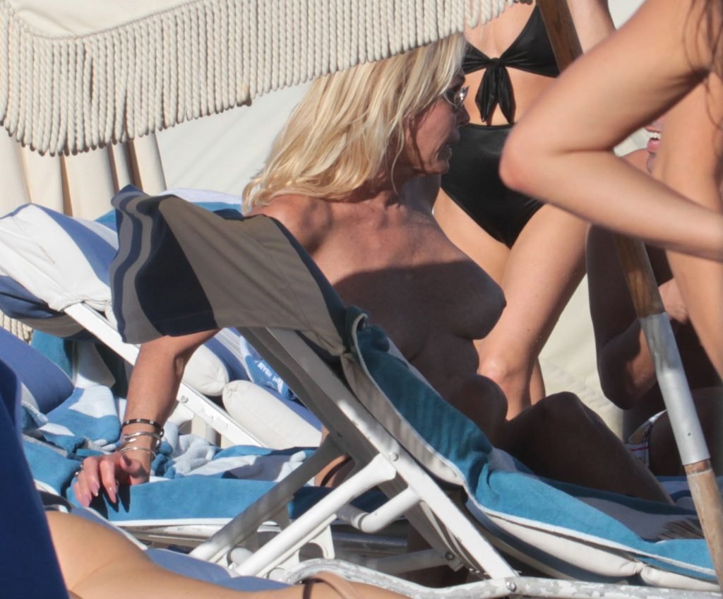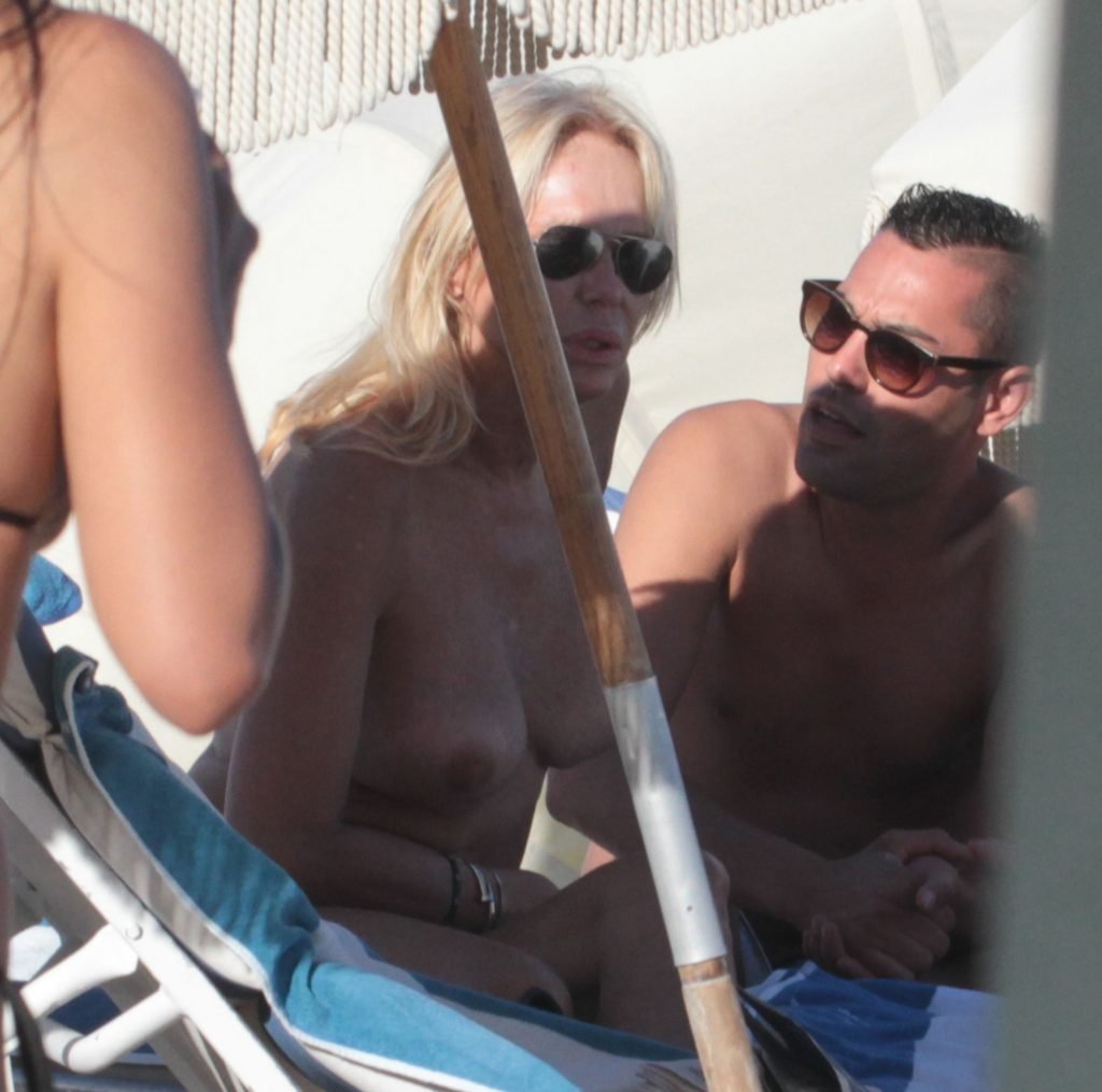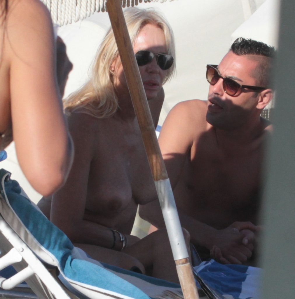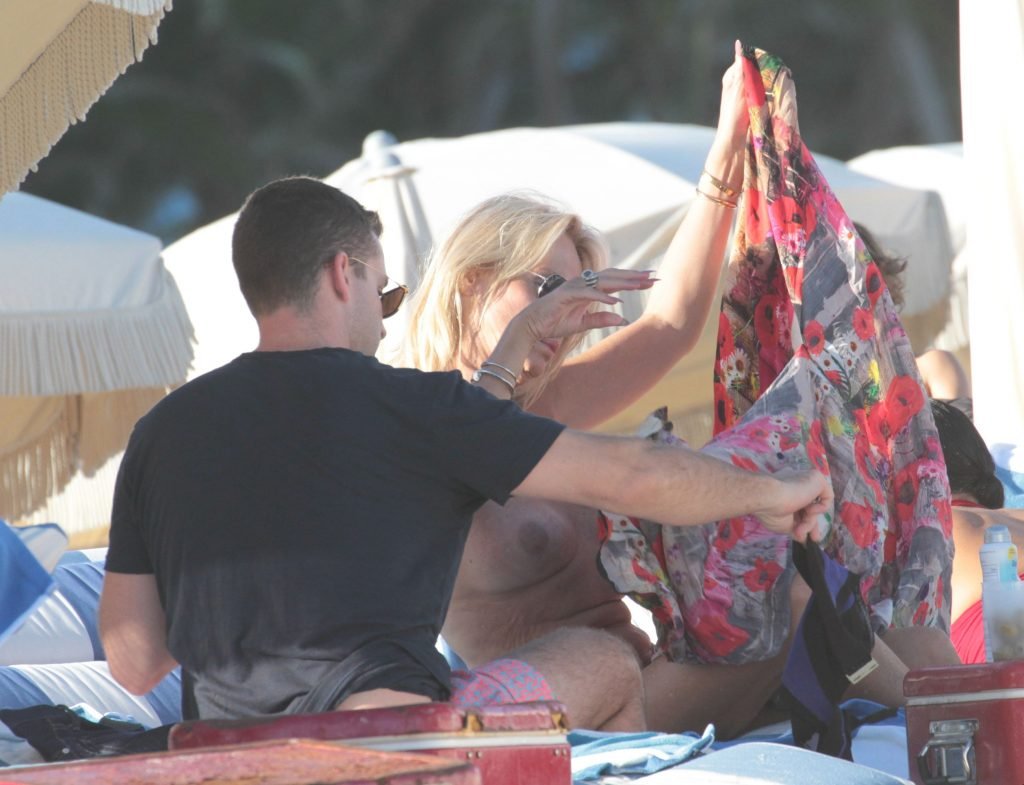 Трансгендерная модель Лорен Фостер топлесс на пляже с друзьями на Майами-Бич в Майами, 11/05/2017.