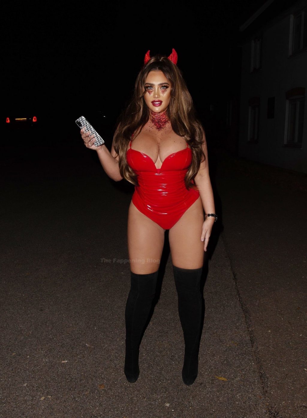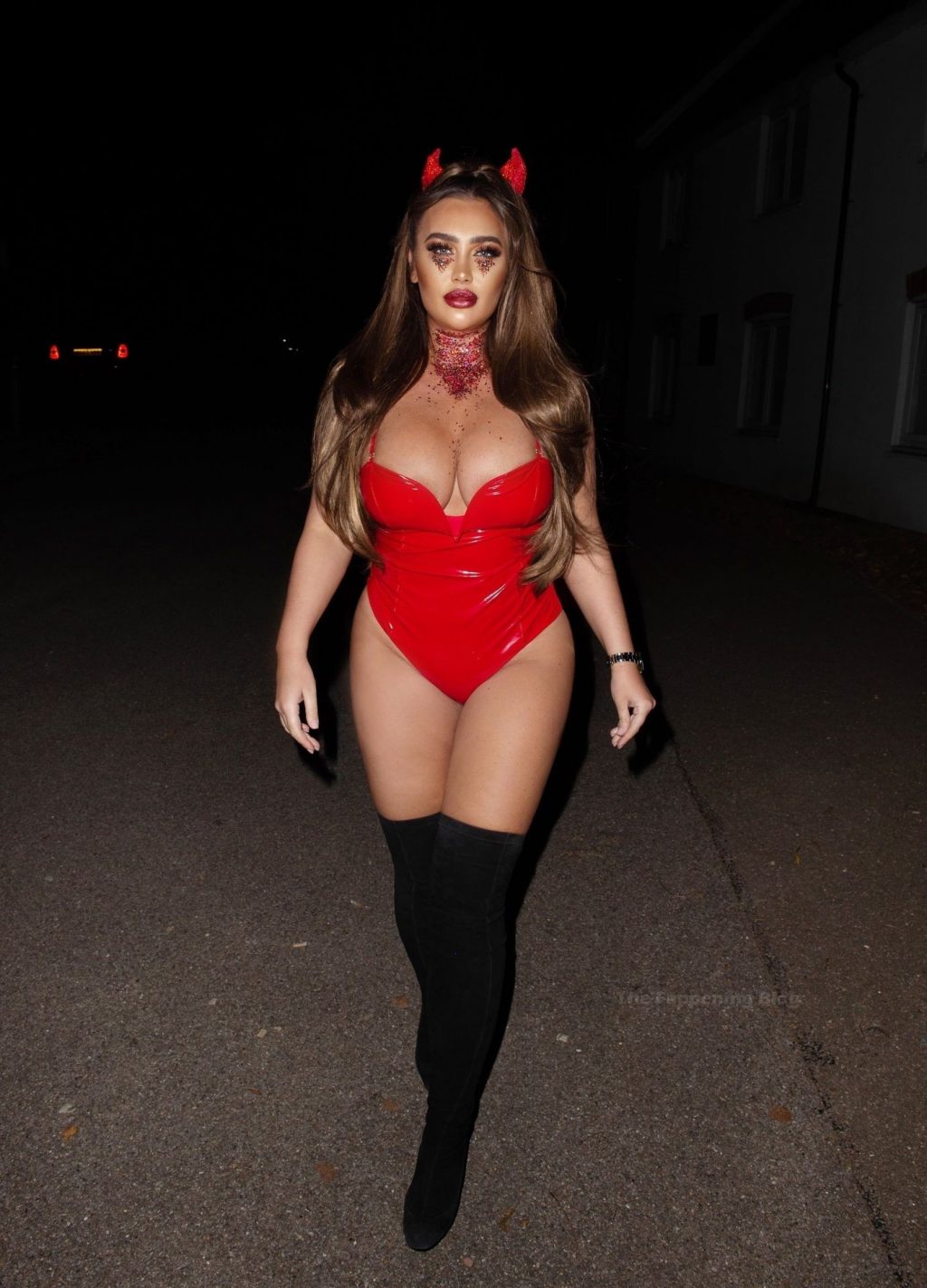 Лорен Гуджер погружается в атмосферу Хэллоуина, когда ее видели, как она выходила в Эссексе прошлой ночью. Звезда реалити-шоу демонстрирует свою потрясающую попу и декольте в обтягивающем красном костюме дьяволёнка.