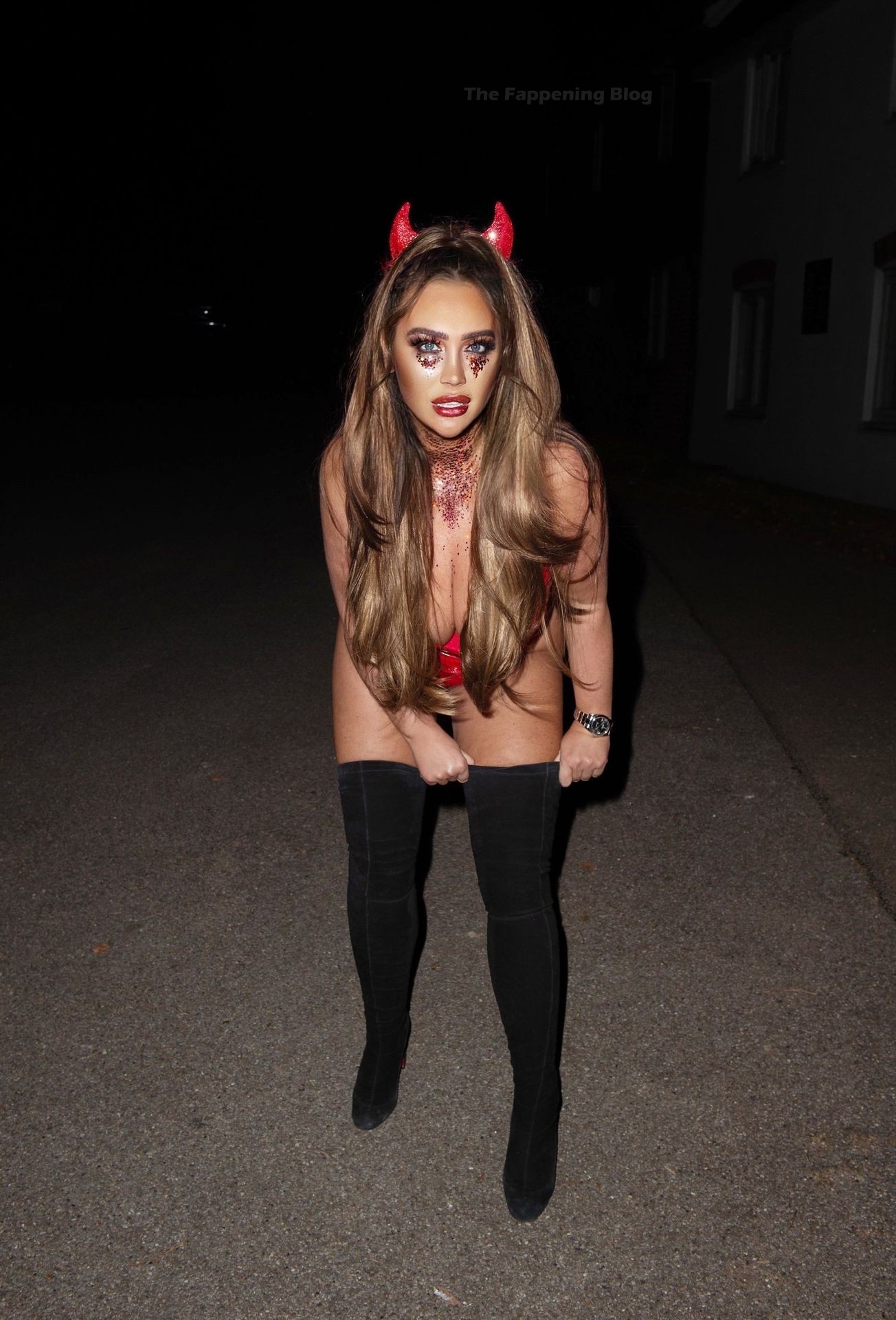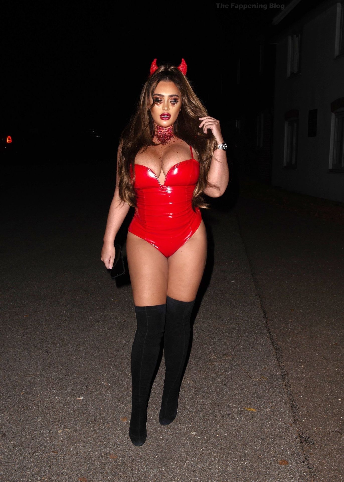 Лорен Гуджер погружается в атмосферу Хэллоуина, когда ее видели, как она выходила в Эссексе прошлой ночью. Звезда реалити-шоу демонстрирует свою потрясающую попу и декольте в обтягивающем красном костюме дьяволёнка.