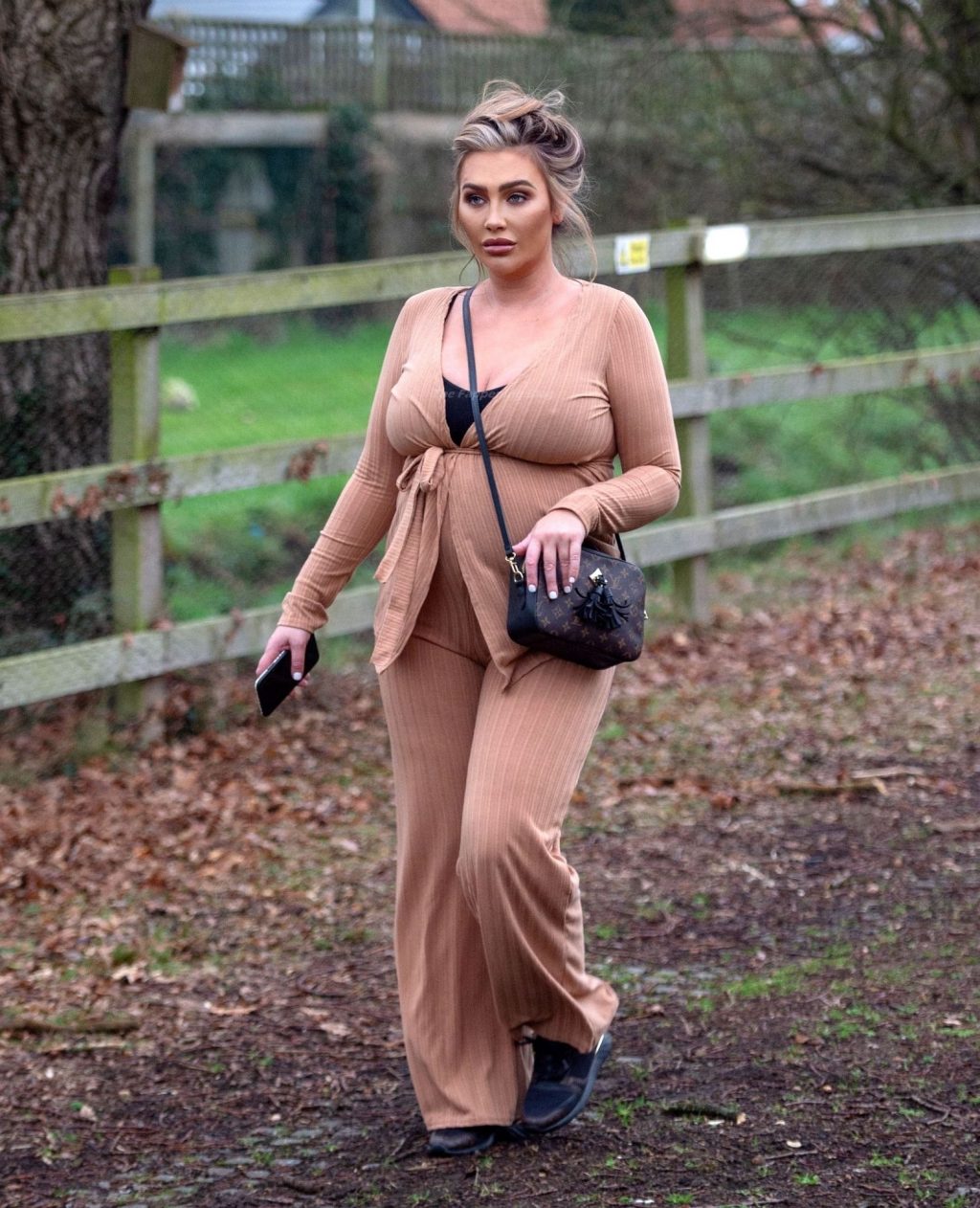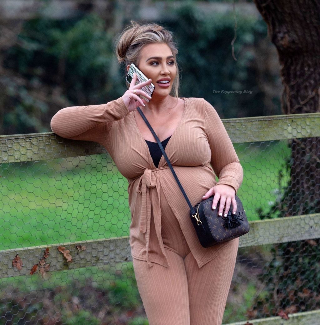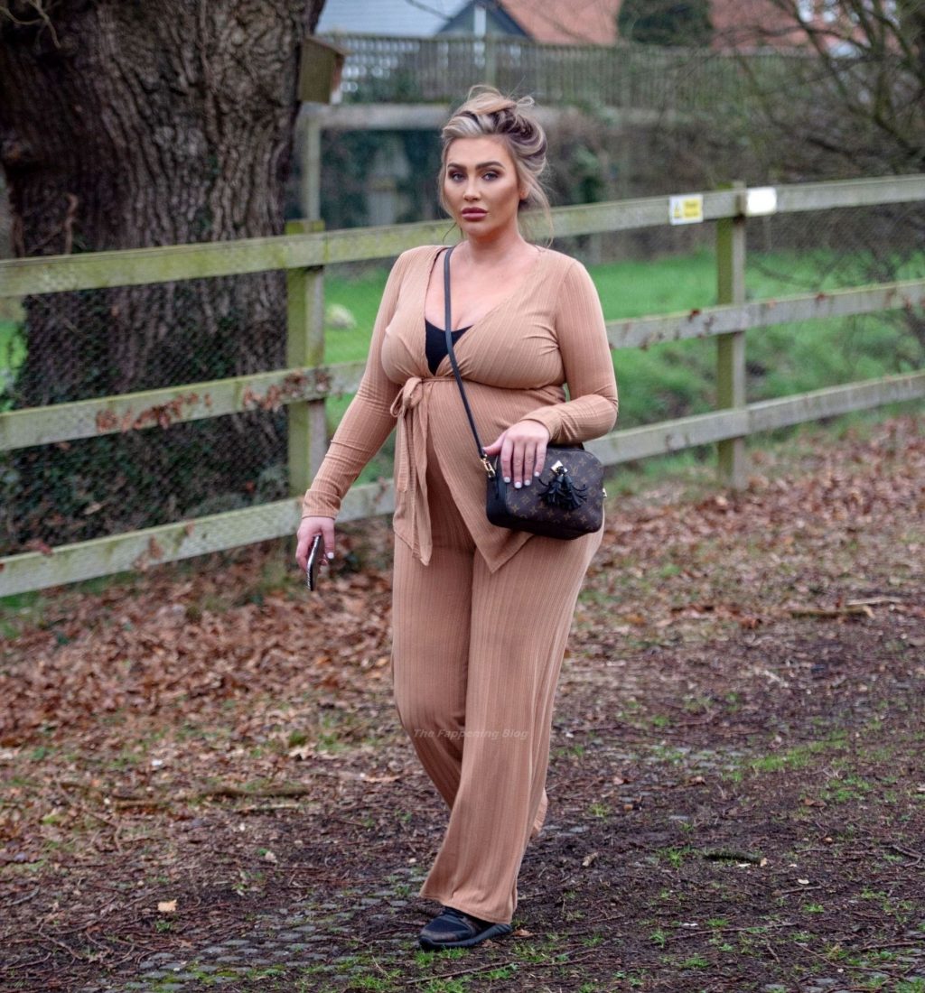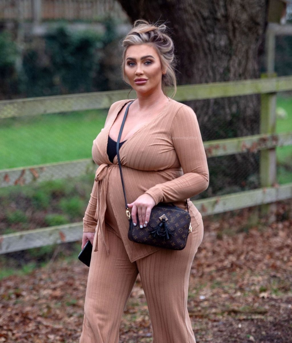 Бывшая звезда TOWIE Лорен Гуджер была замечена в бежевом комбинезоне, когда вчера днем отправлялась на прогулку в Эссексе.