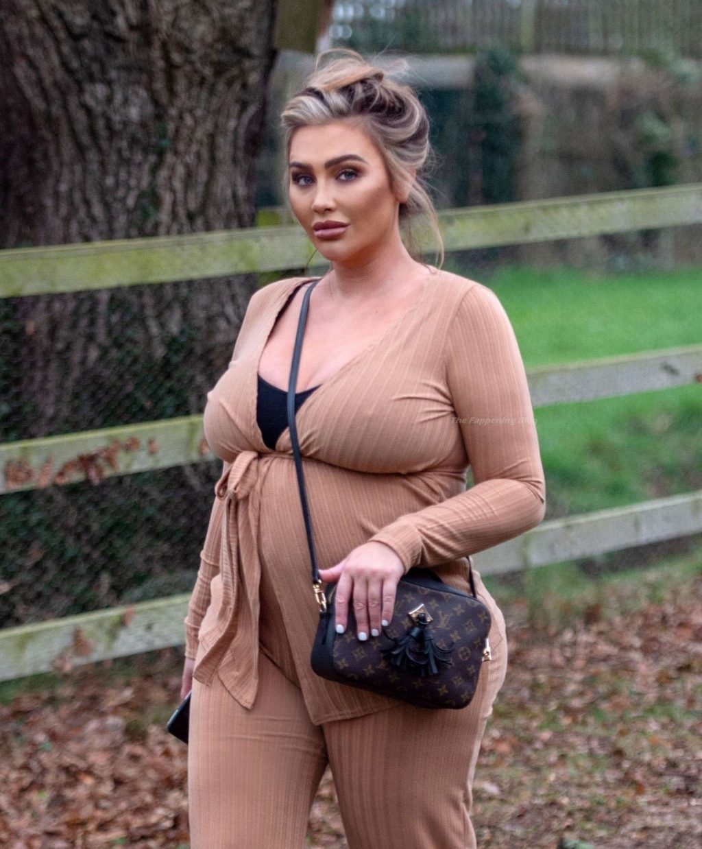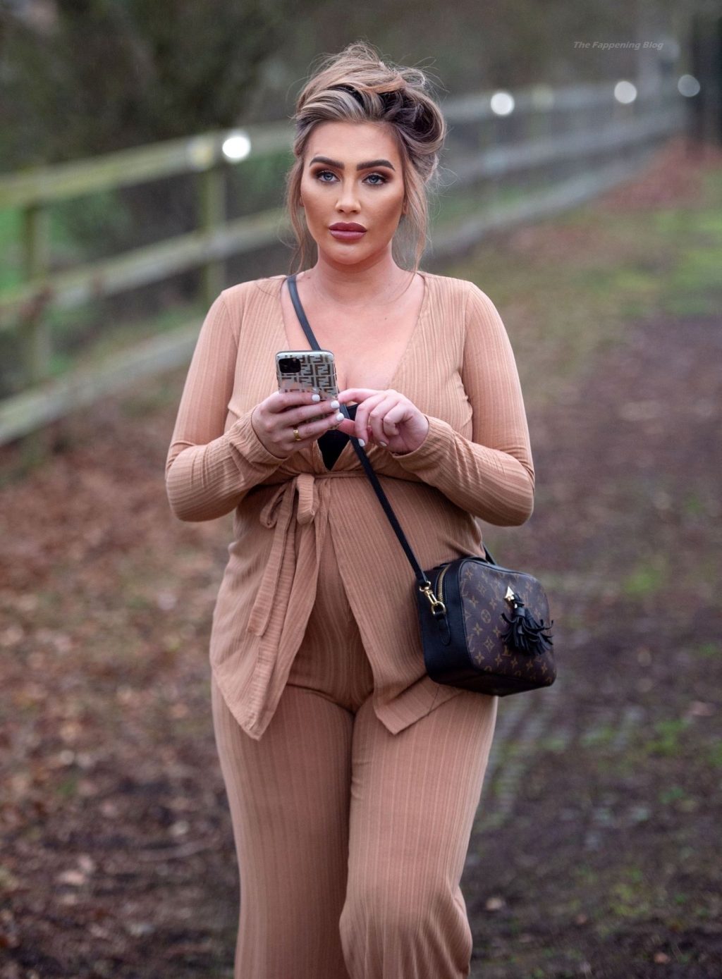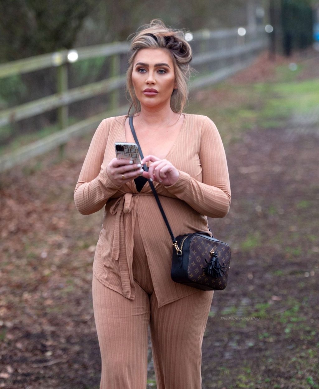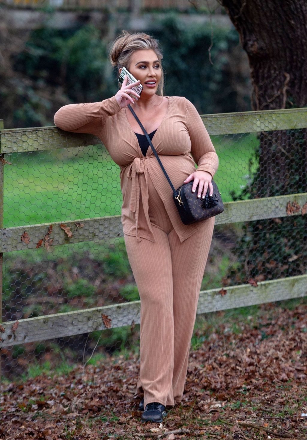 Бывшая звезда TOWIE Лорен Гуджер была замечена в бежевом комбинезоне, когда вчера днем отправлялась на прогулку в Эссексе.