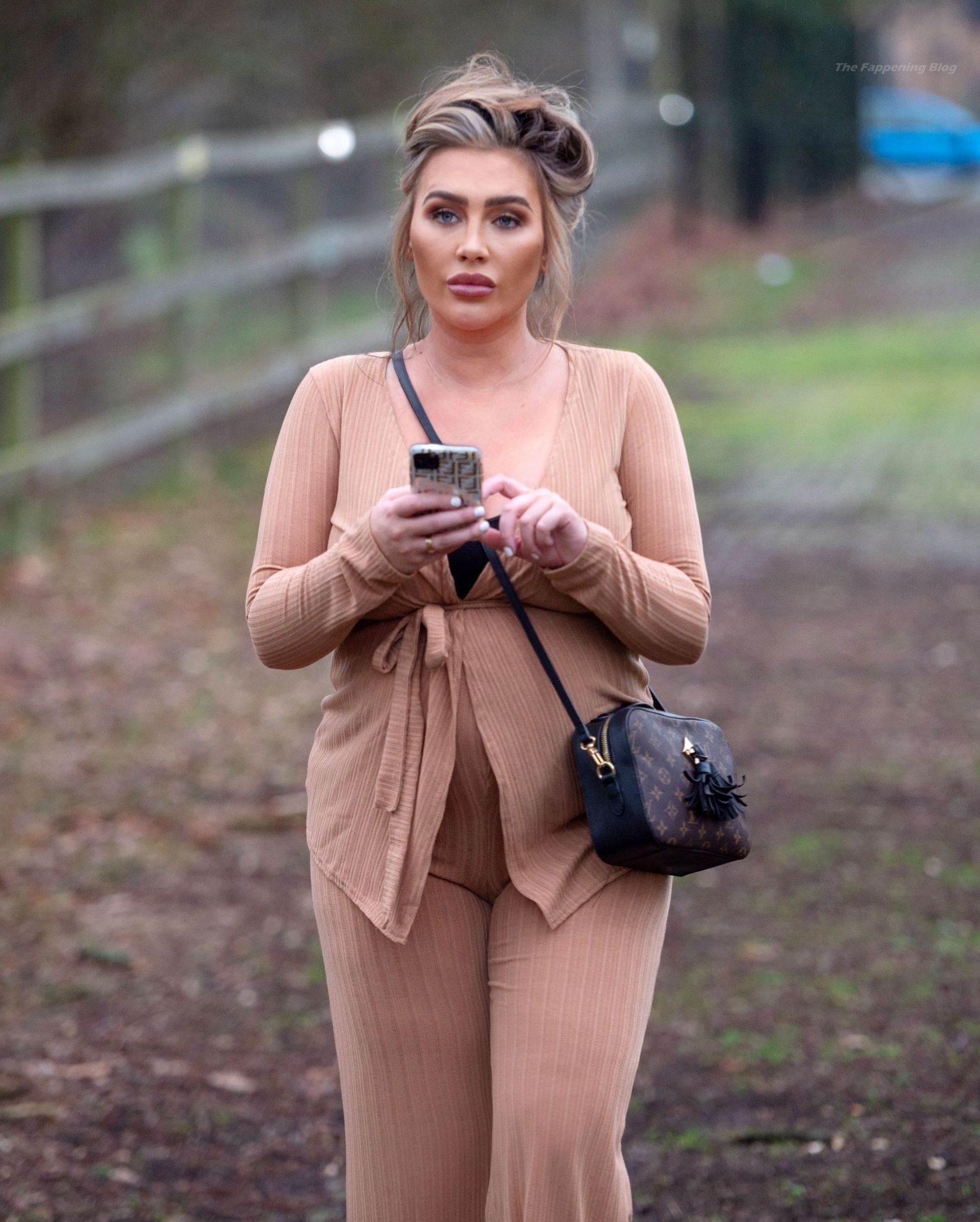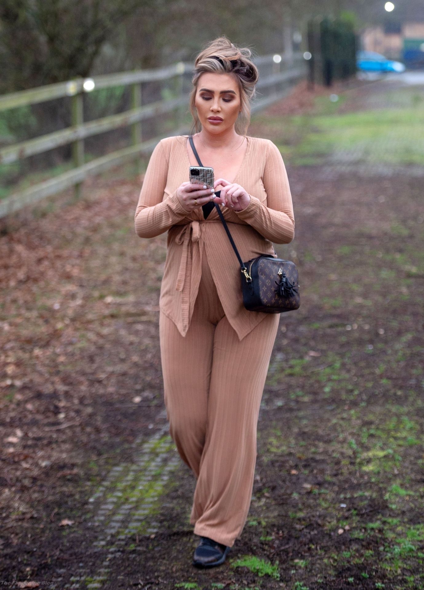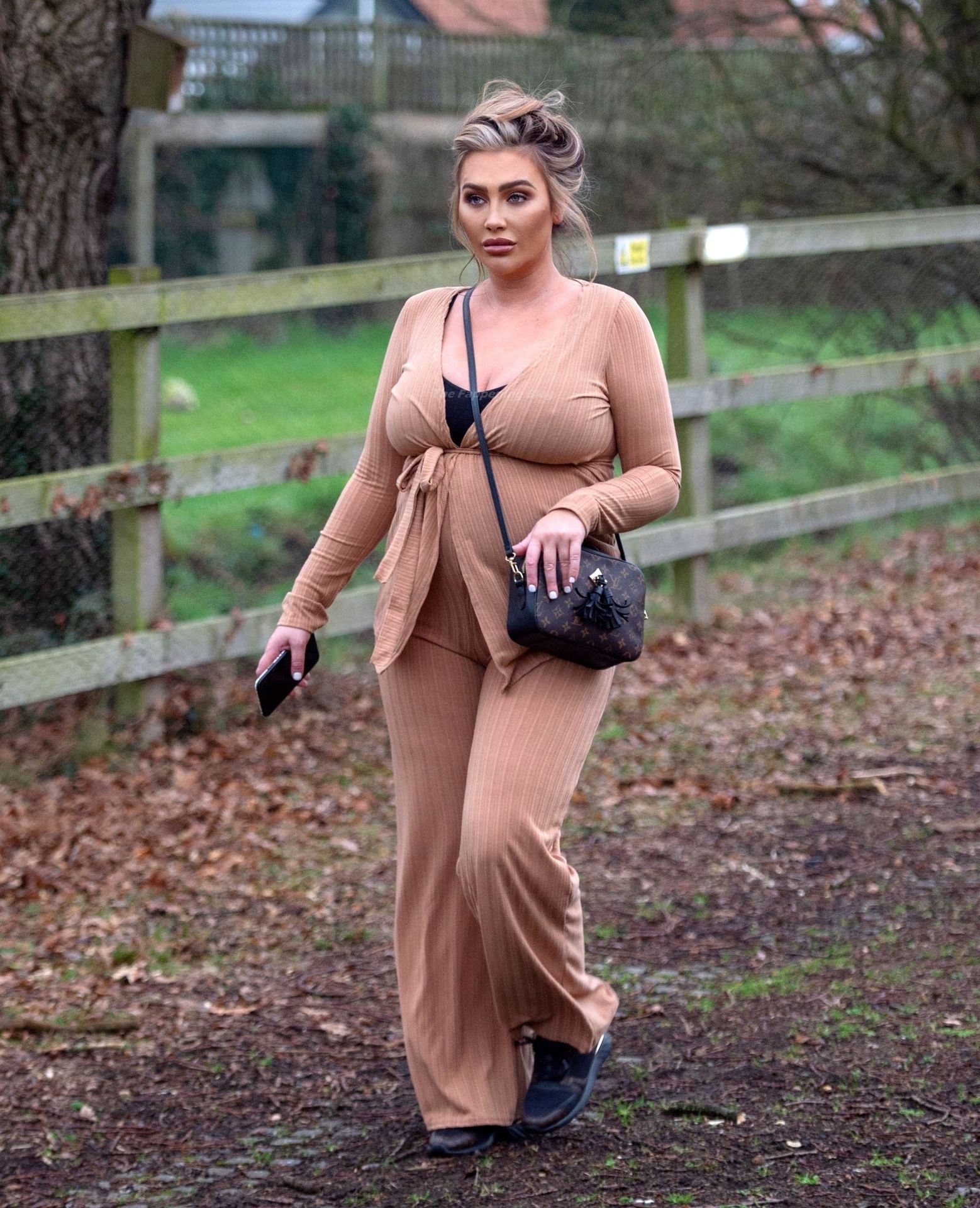 Бывшая звезда TOWIE Лорен Гуджер была замечена в бежевом комбинезоне, когда вчера днем отправлялась на прогулку в Эссексе.
