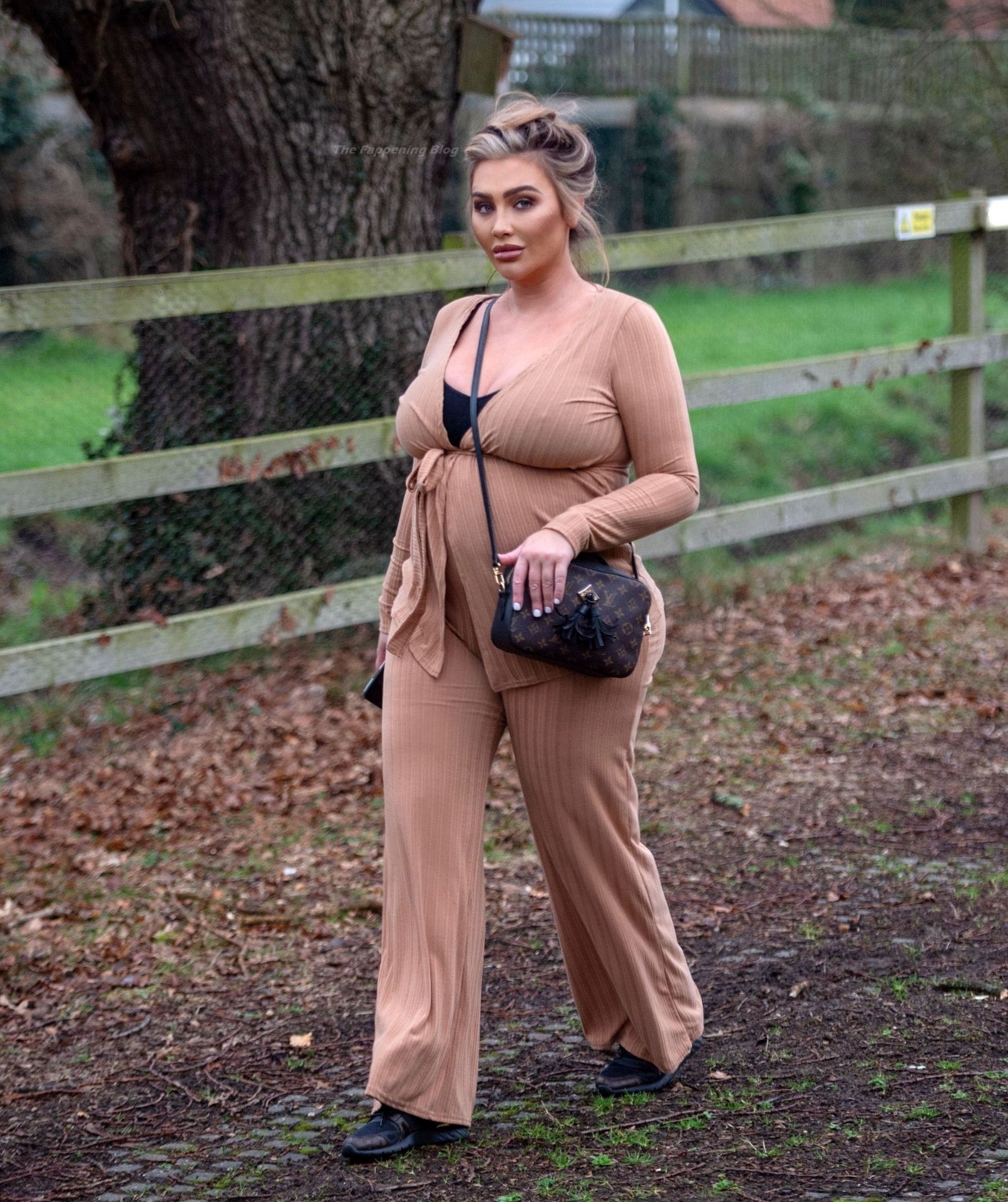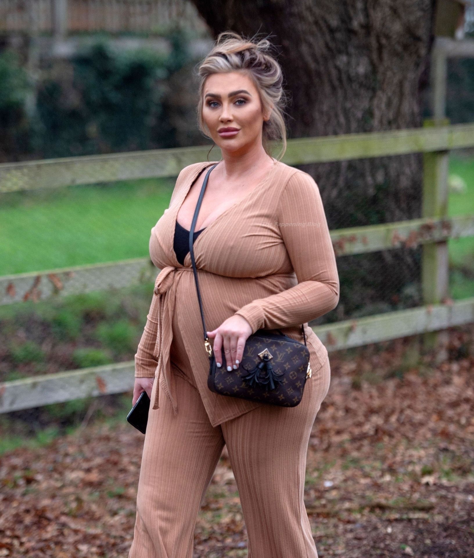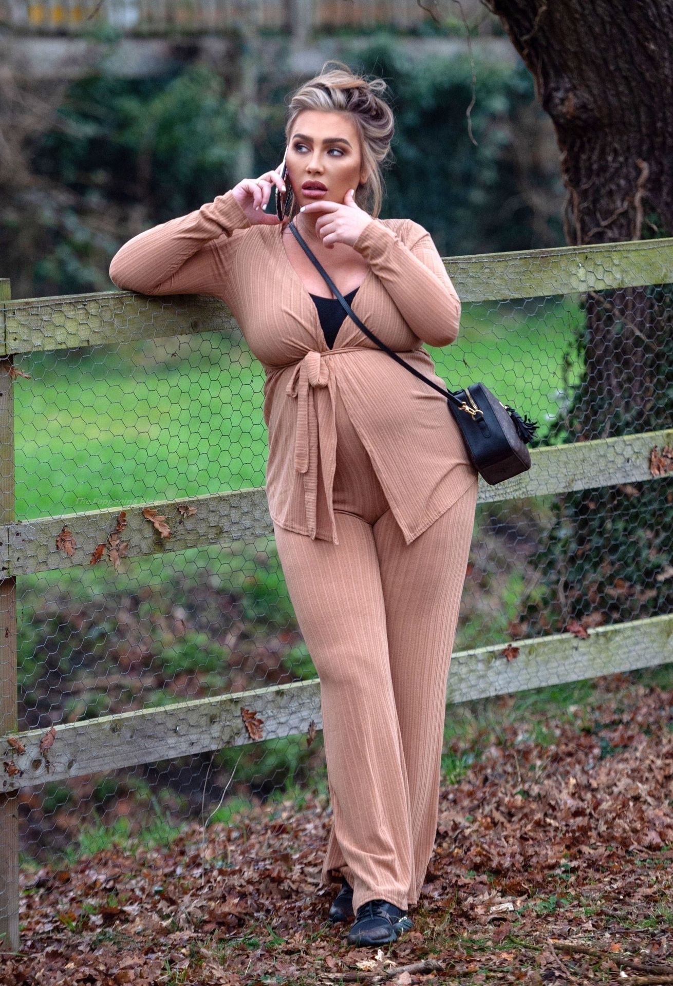 Бывшая звезда TOWIE Лорен Гуджер была замечена в бежевом комбинезоне, когда вчера днем отправлялась на прогулку в Эссексе.