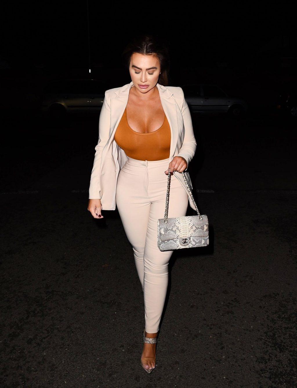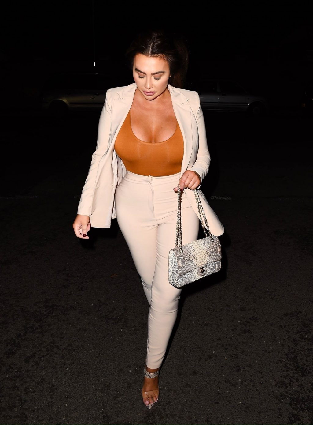 Реалити-звезда выглядела в хорошем настроении, несмотря на недавний скандал, связанный с диетическими продуктами. Девушка из Эссекса демонстрирует свои пышные формы в белом костюме с коричневым топом, направляясь в ресторан.
