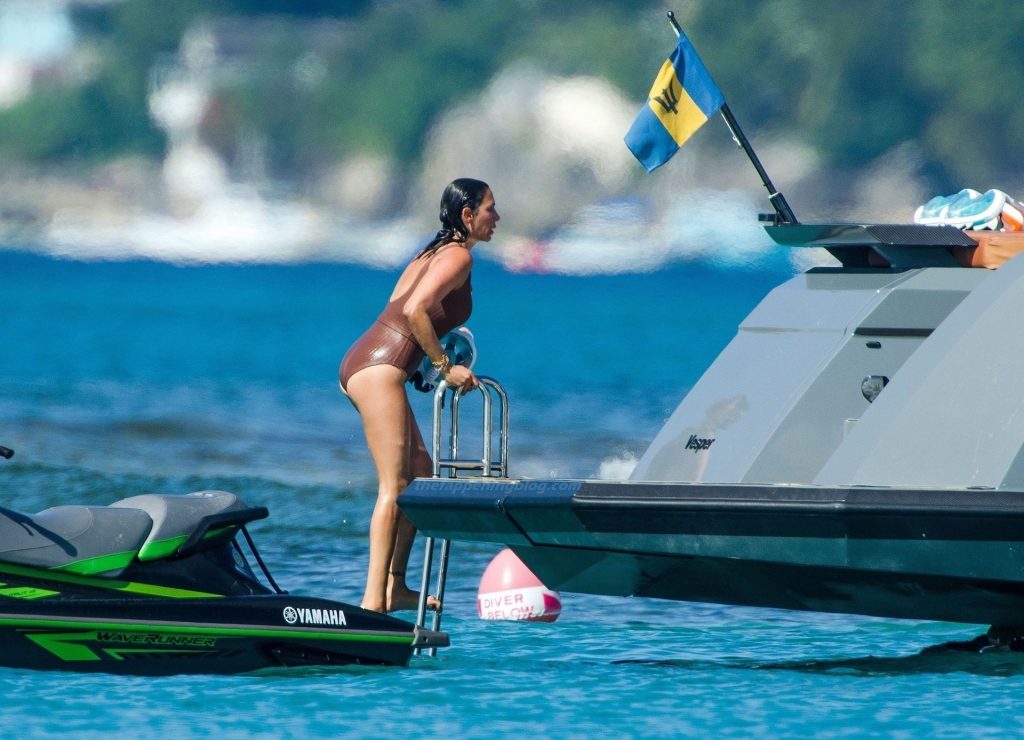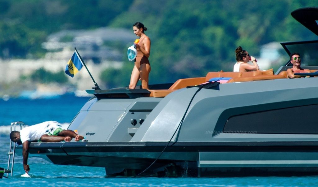 Семью заметили на их роскошной яхте в приходе Сент-Питер на Барбадосе, где Саймон, который всё ещё восстанавливается после несчастного случая с переломом позвоночника, отправился покорять воды на захватывающей прогулке на гидроцикле по прозрачному голубому морю.