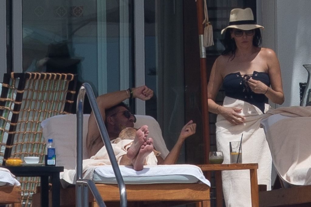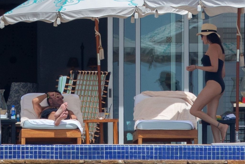 Саймон Коуэлл замечен за тем, как он потягивает свежий зелёный сок, наслаждаясь отдыхом на пляже в Кабо вместе с Лорен Сильверман и их сыном, 01.10.2019. Саймон определённо сбросил довольно много веса в последнее время и демонстрировал подтянутый живот, плескаясь в бассейне своего курорта.