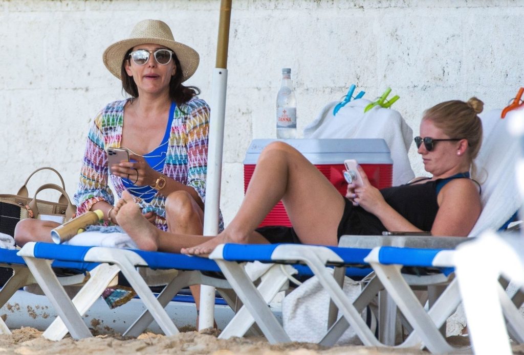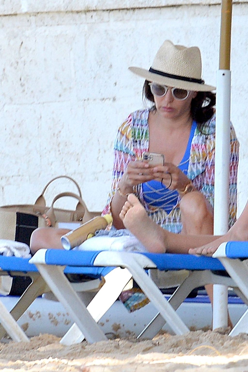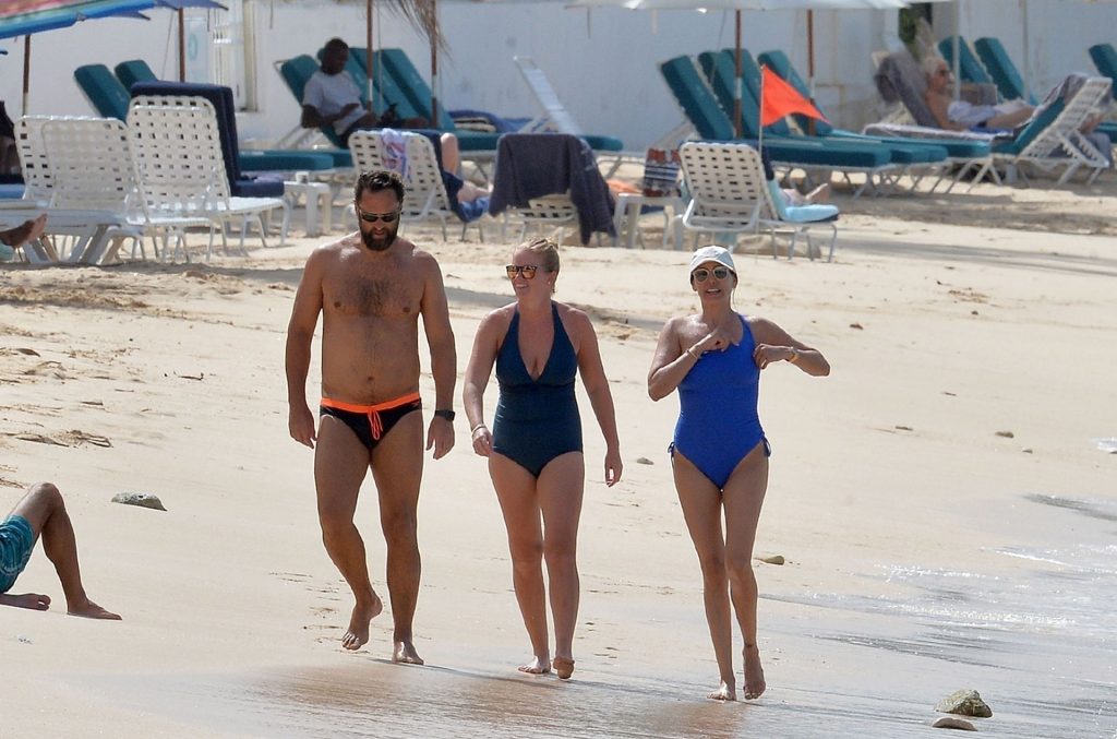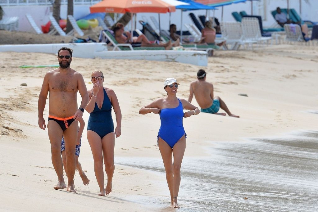 В синем цельном купальнике, партнерша Саймона Коуэлла Лорен Сильверман замечена на пляже под палящим солнцем Вест-Индии на острове Барбадос (2020).