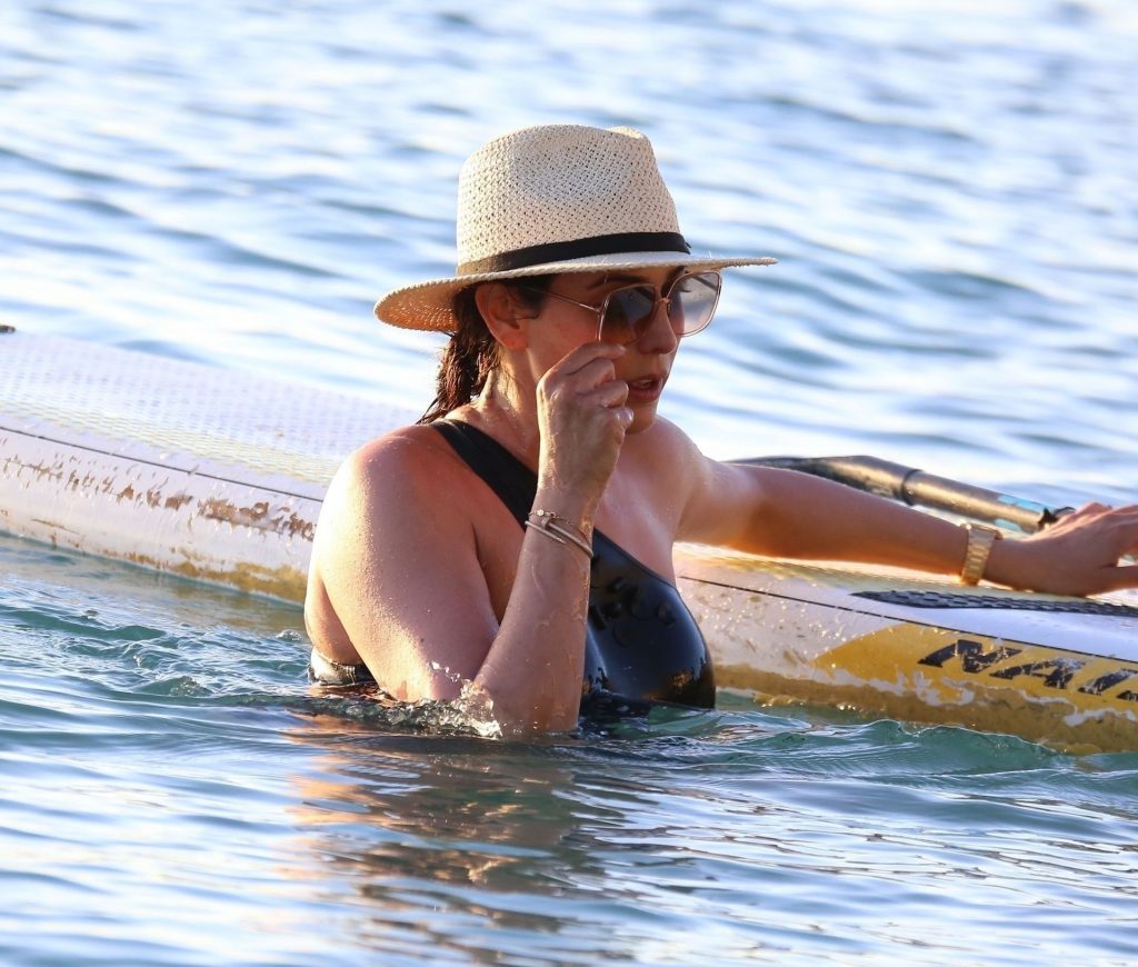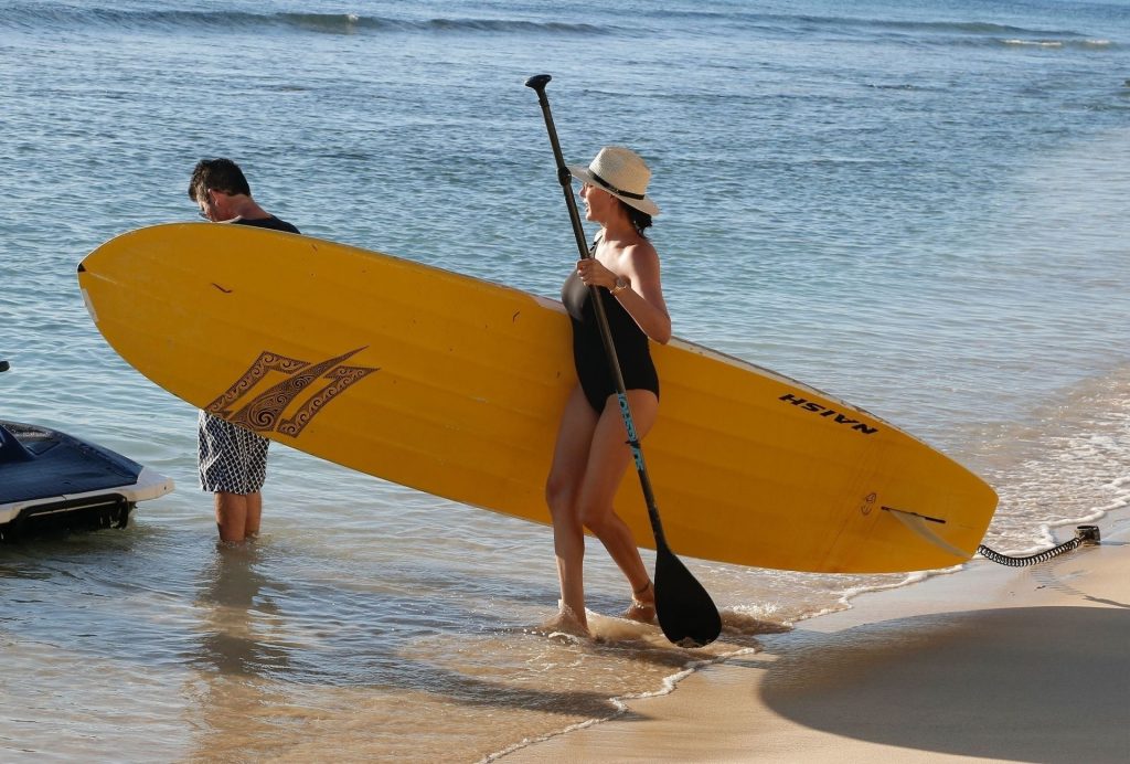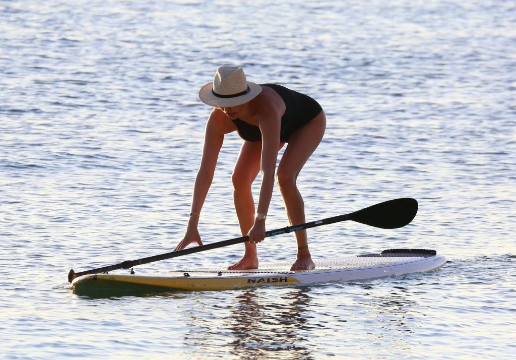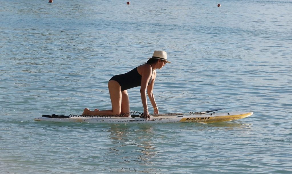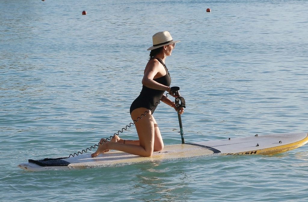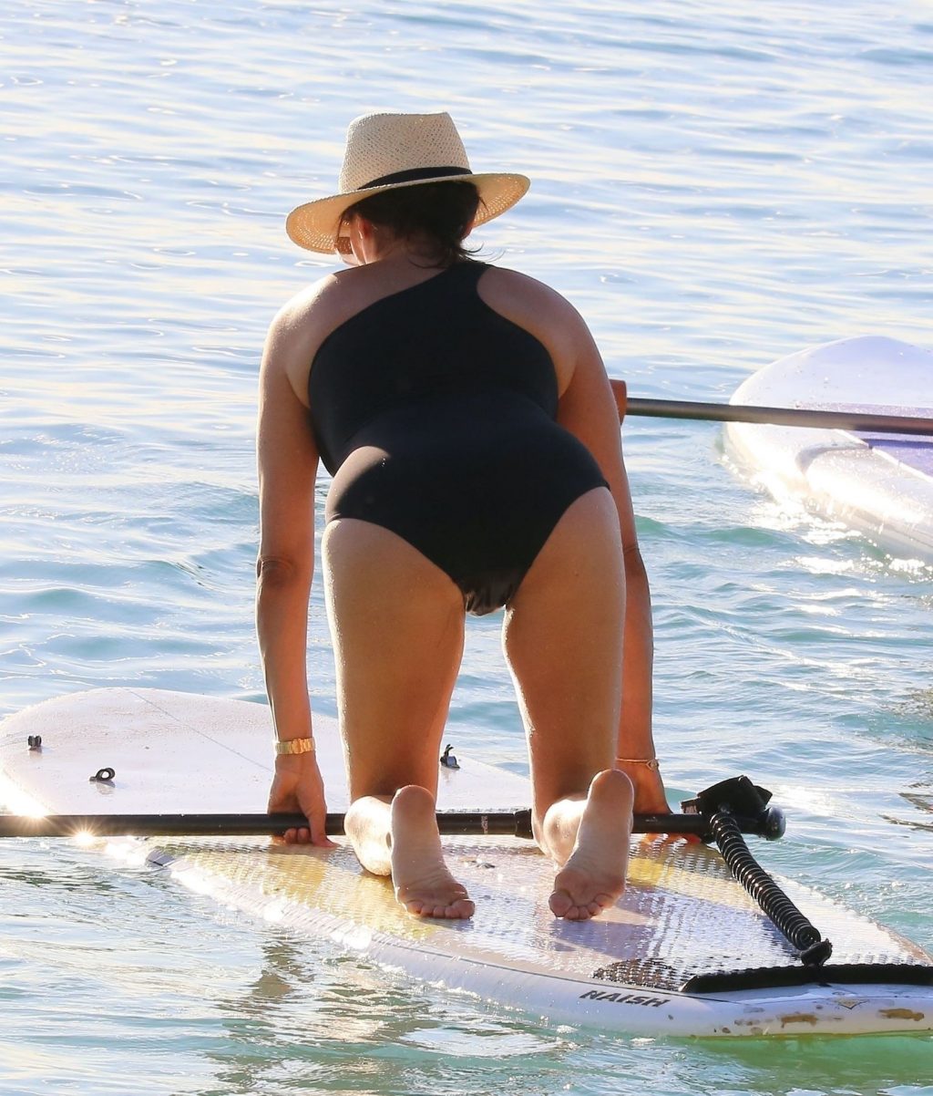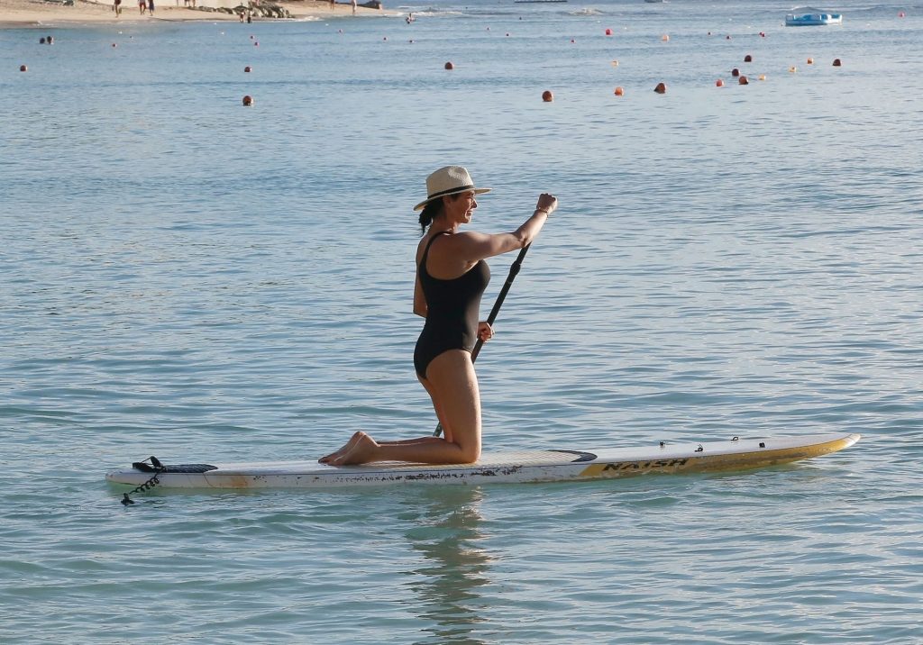 Лорен тоже выглядела великолепно в своем черном купальнике, показывая свою попу, ноги, формы, и она ловит волны, занимаясь паддлбордингом в море.