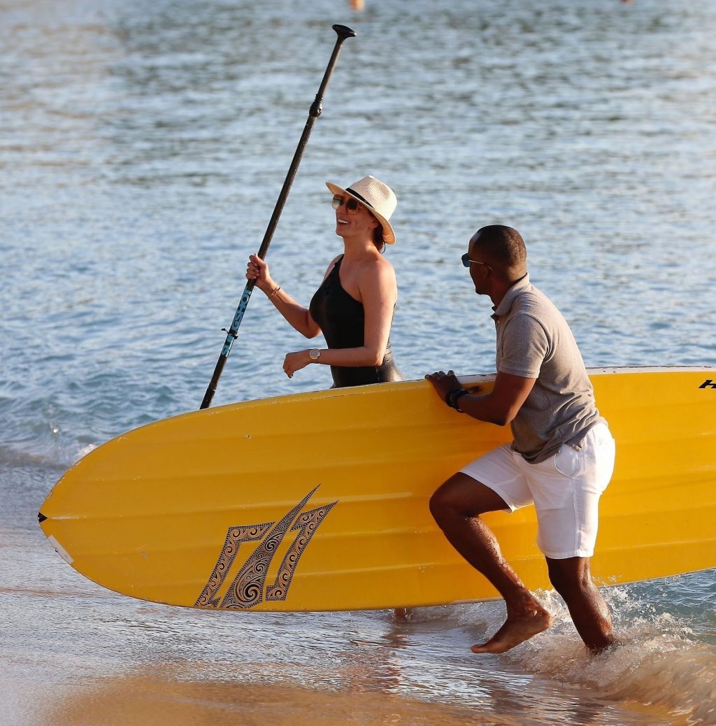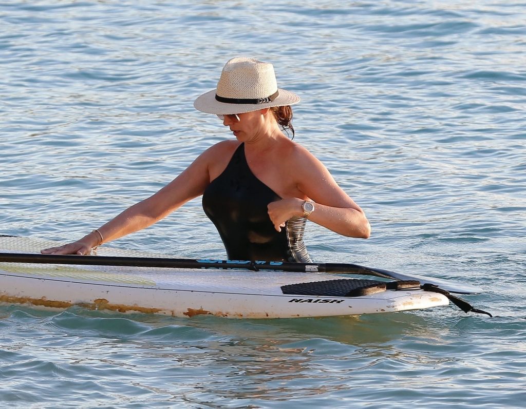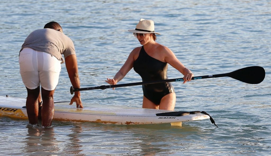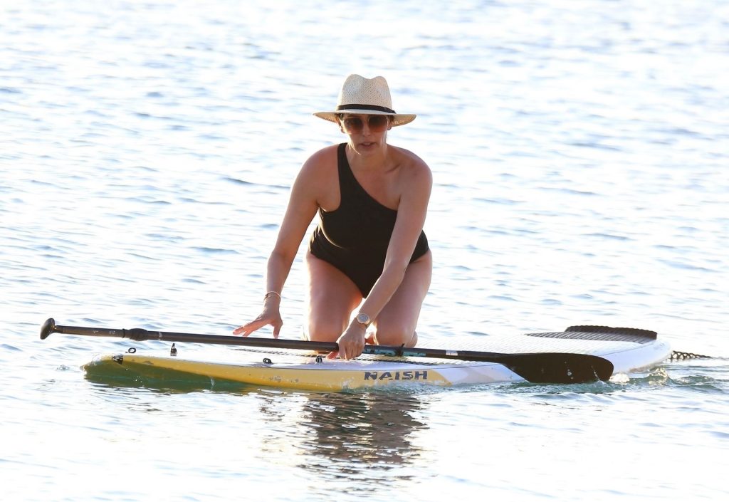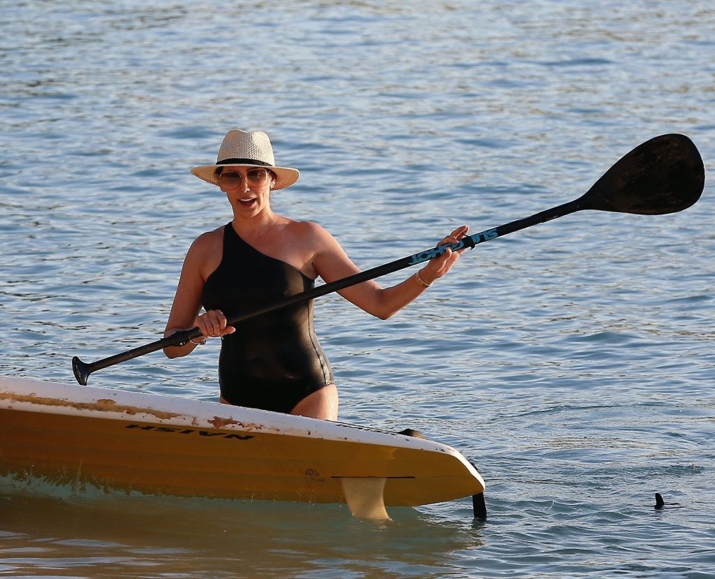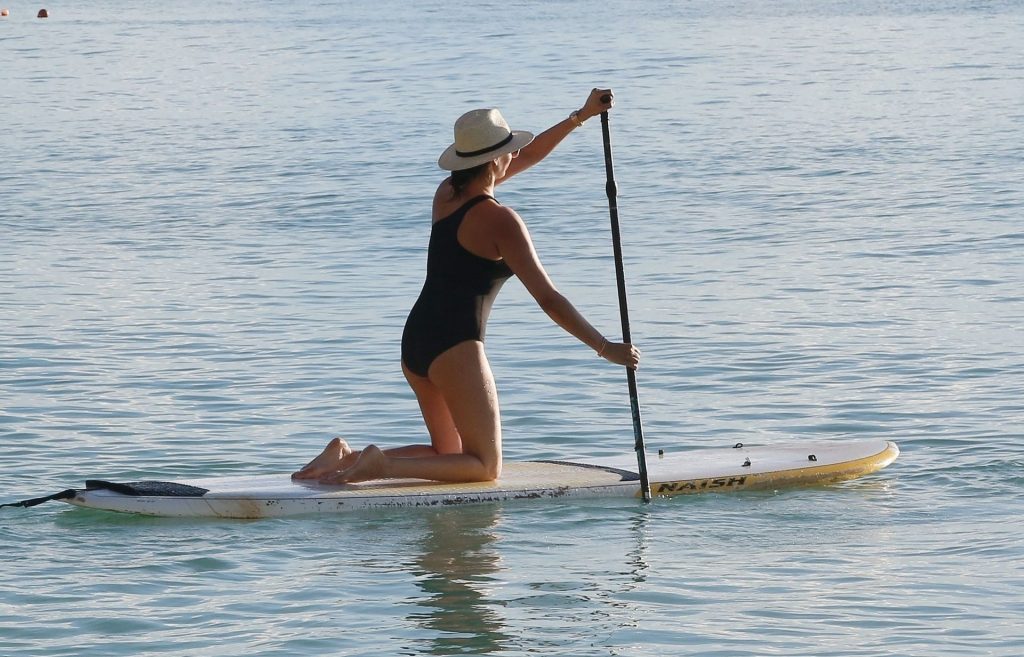 Лорен тоже выглядела великолепно в своем черном купальнике, показывая свою попу, ноги, формы, и она ловит волны, занимаясь паддлбордингом в море.