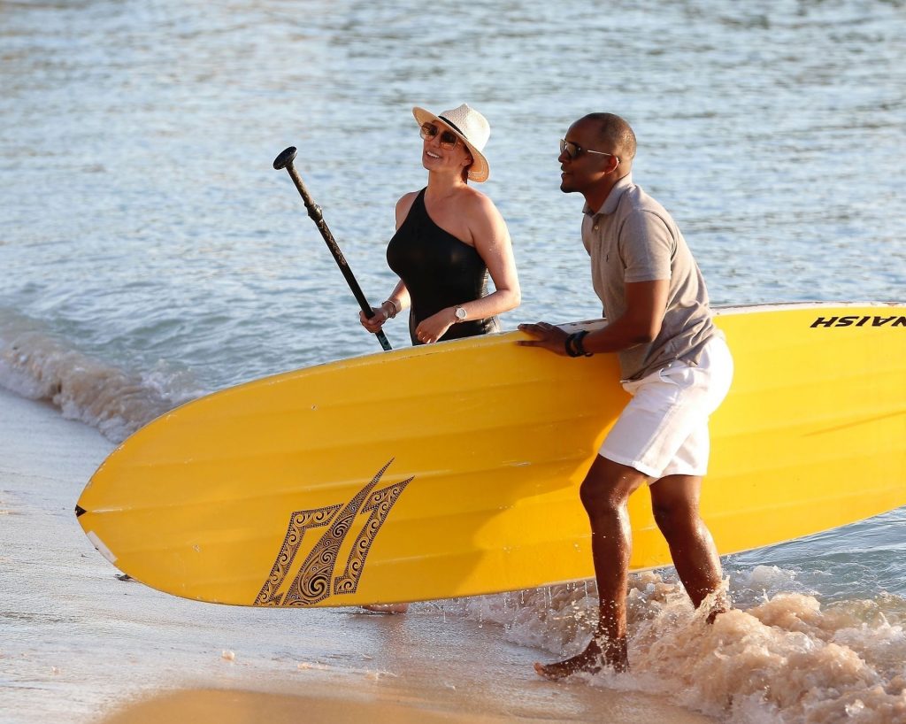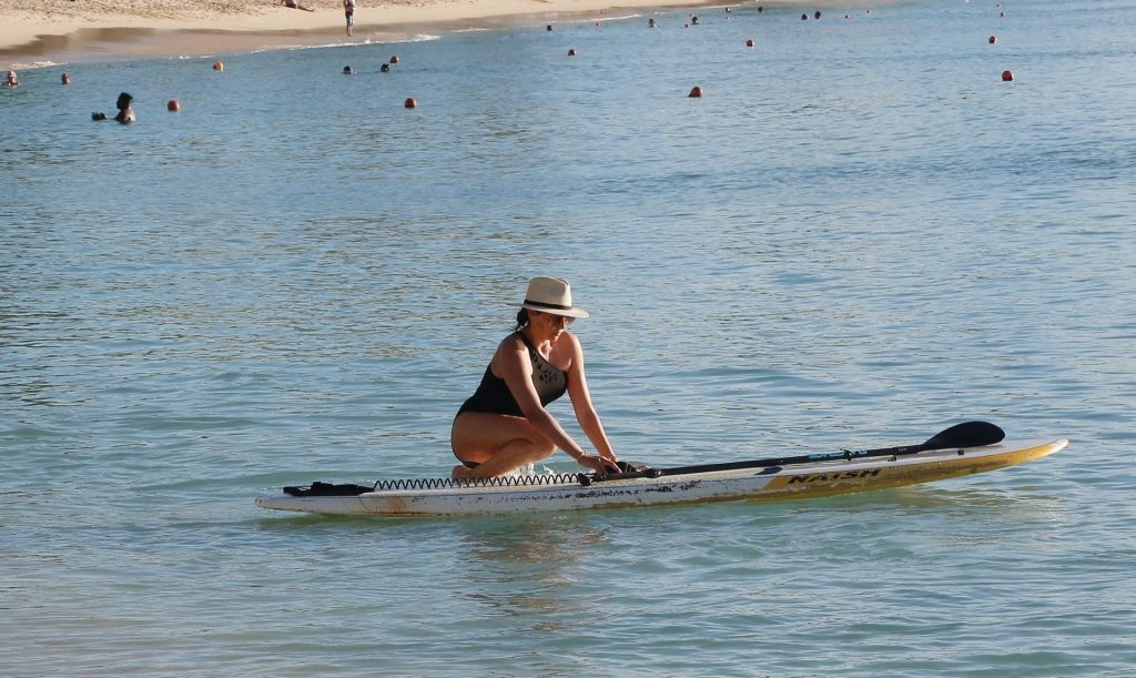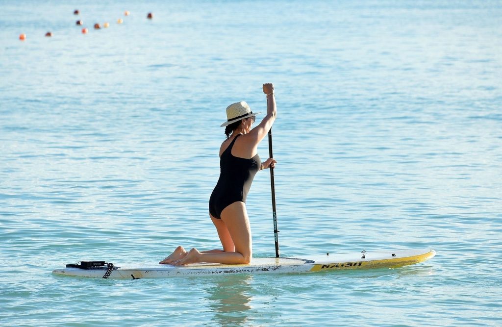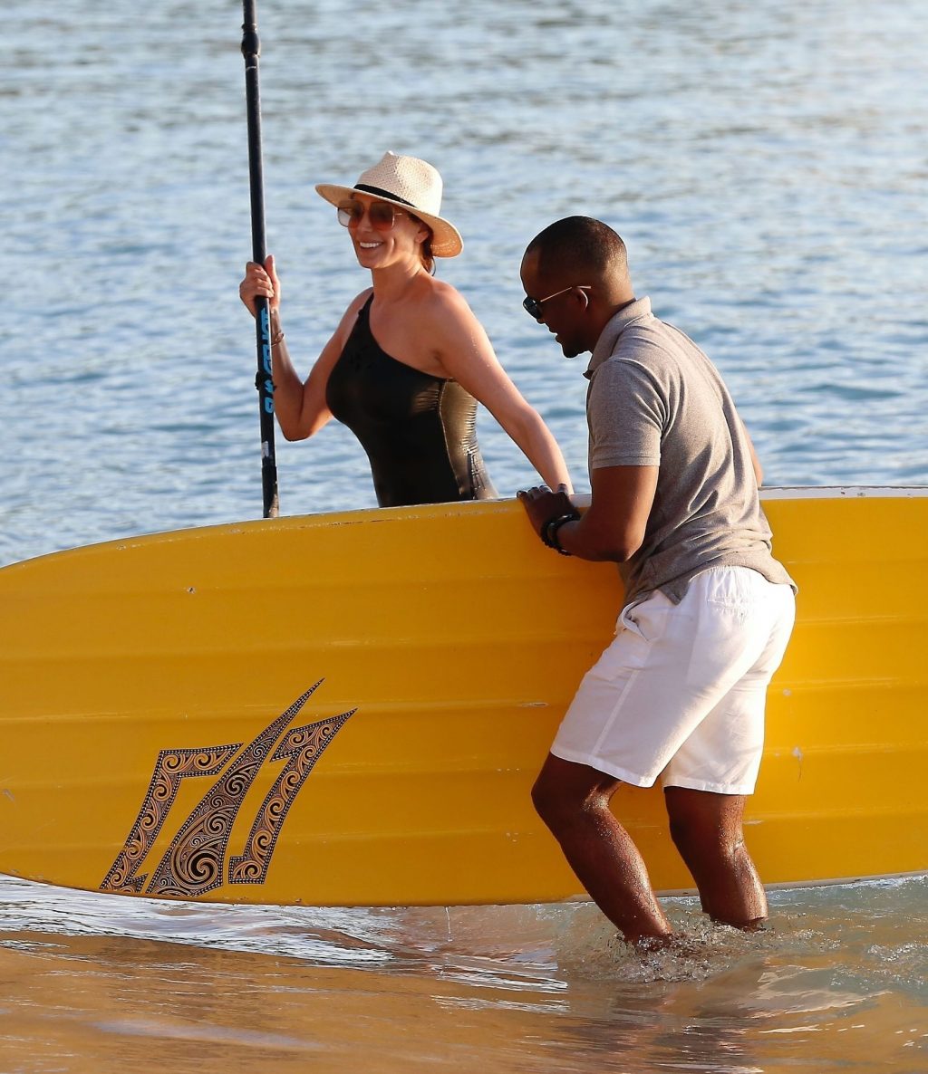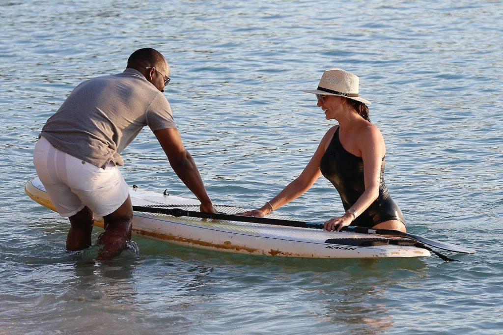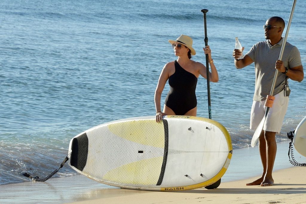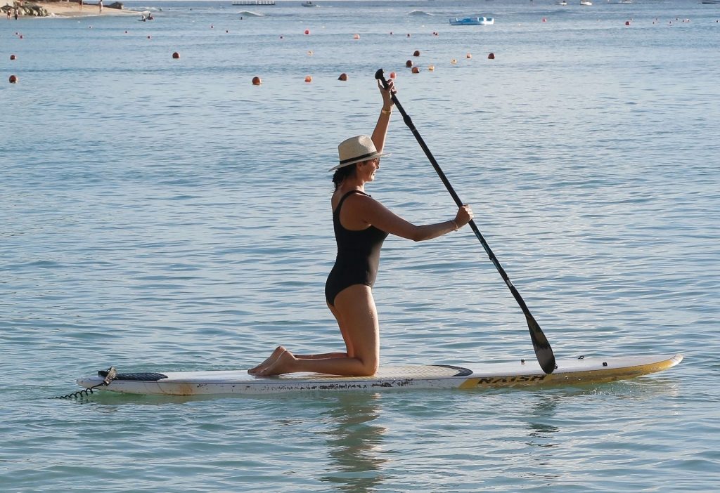 Лорен тоже выглядела великолепно в своем черном купальнике, показывая свою попу, ноги, формы, и она ловит волны, занимаясь паддлбордингом в море.