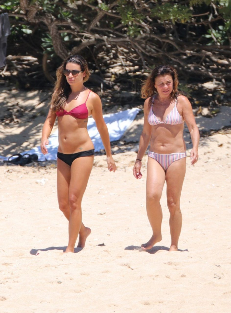 Лиа Мишель замечена на пляже с матерью на Гавайях, 08.08.2019. 32-летняя актриса и певица окунулась в океан в красно-черном двухсекционном бикини.