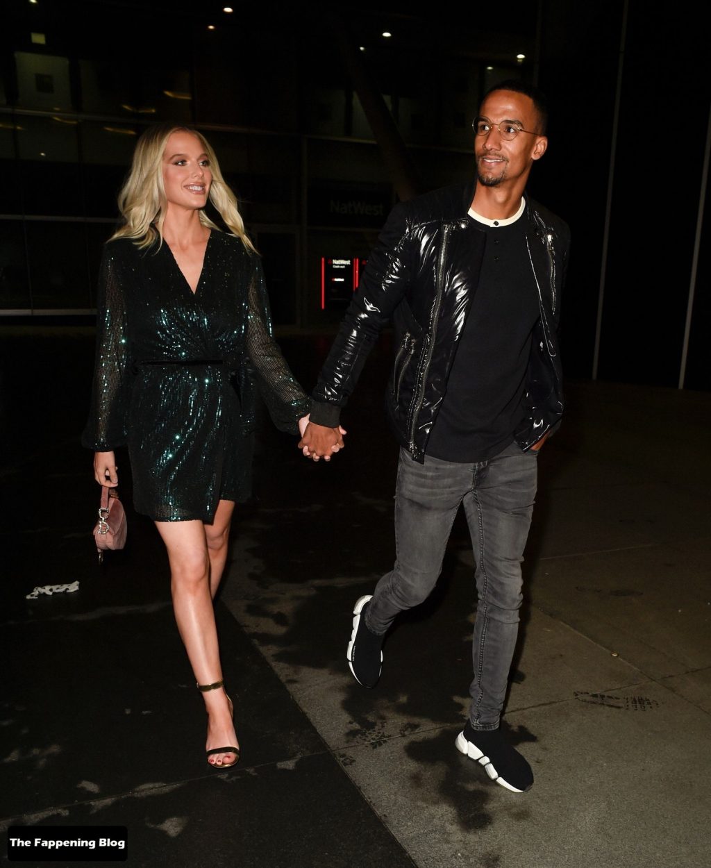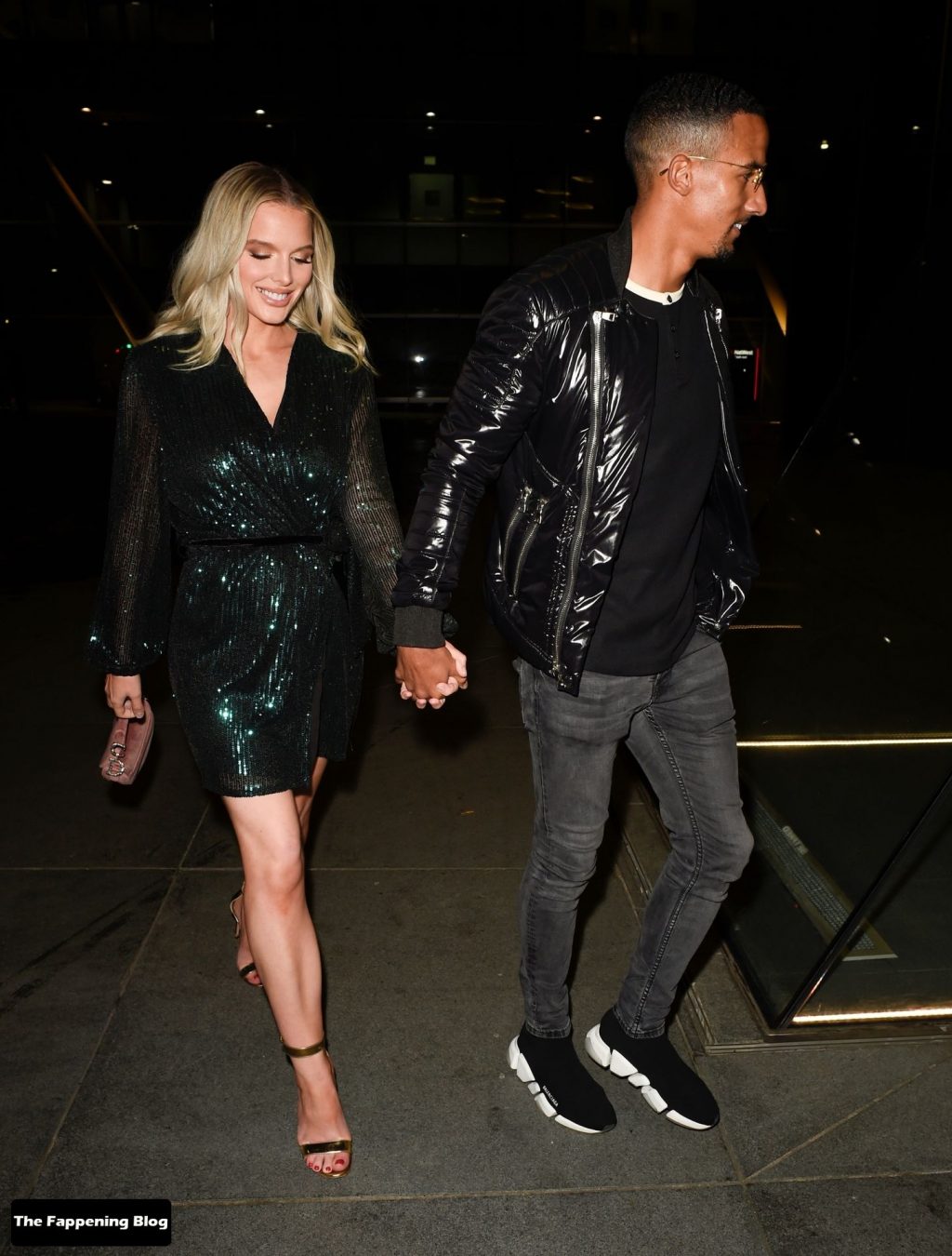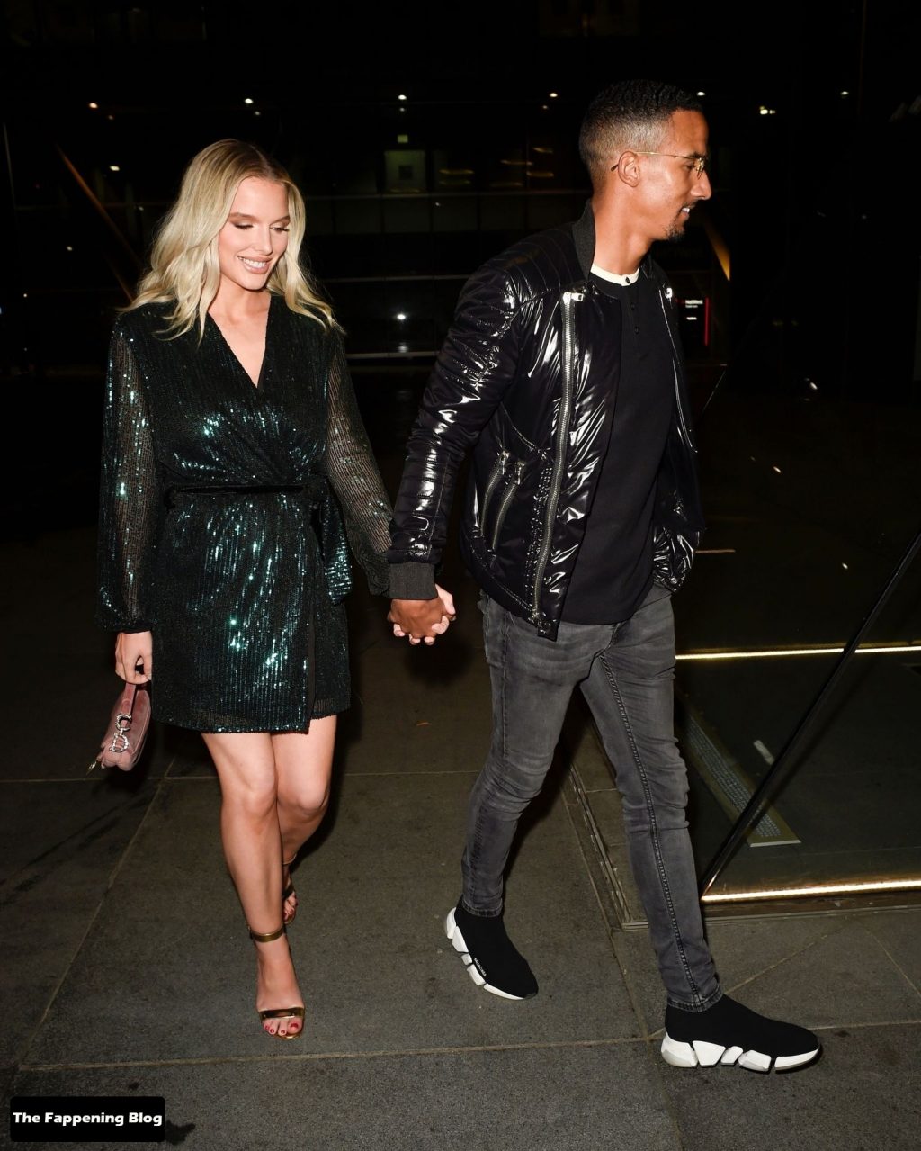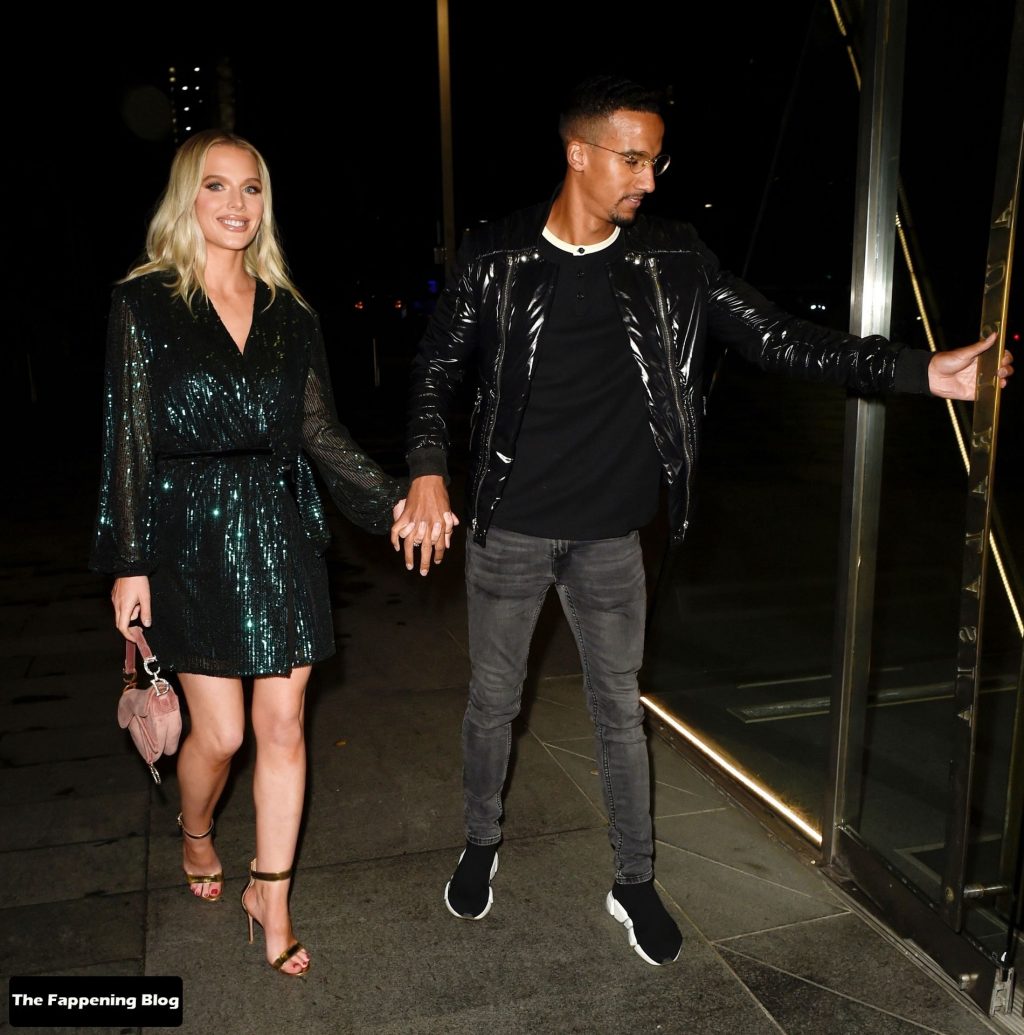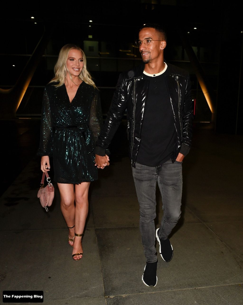 Хелен Фланаган демонстрирует длинные ноги, наслаждаясь вечерним свиданием со своим женихом, футболистом Скоттом Синклером, в ресторане Australasia в Манчестере, 10.09.2021.