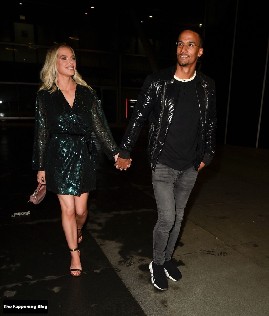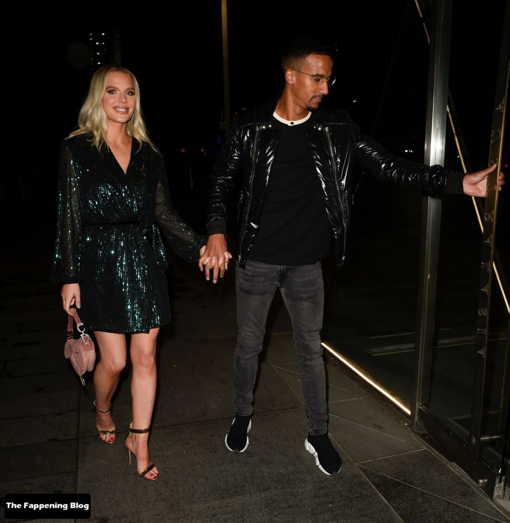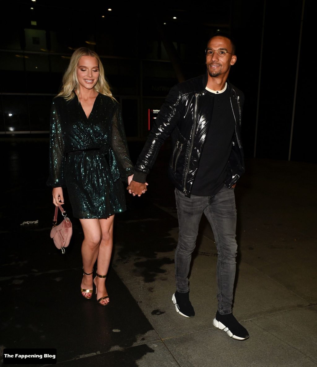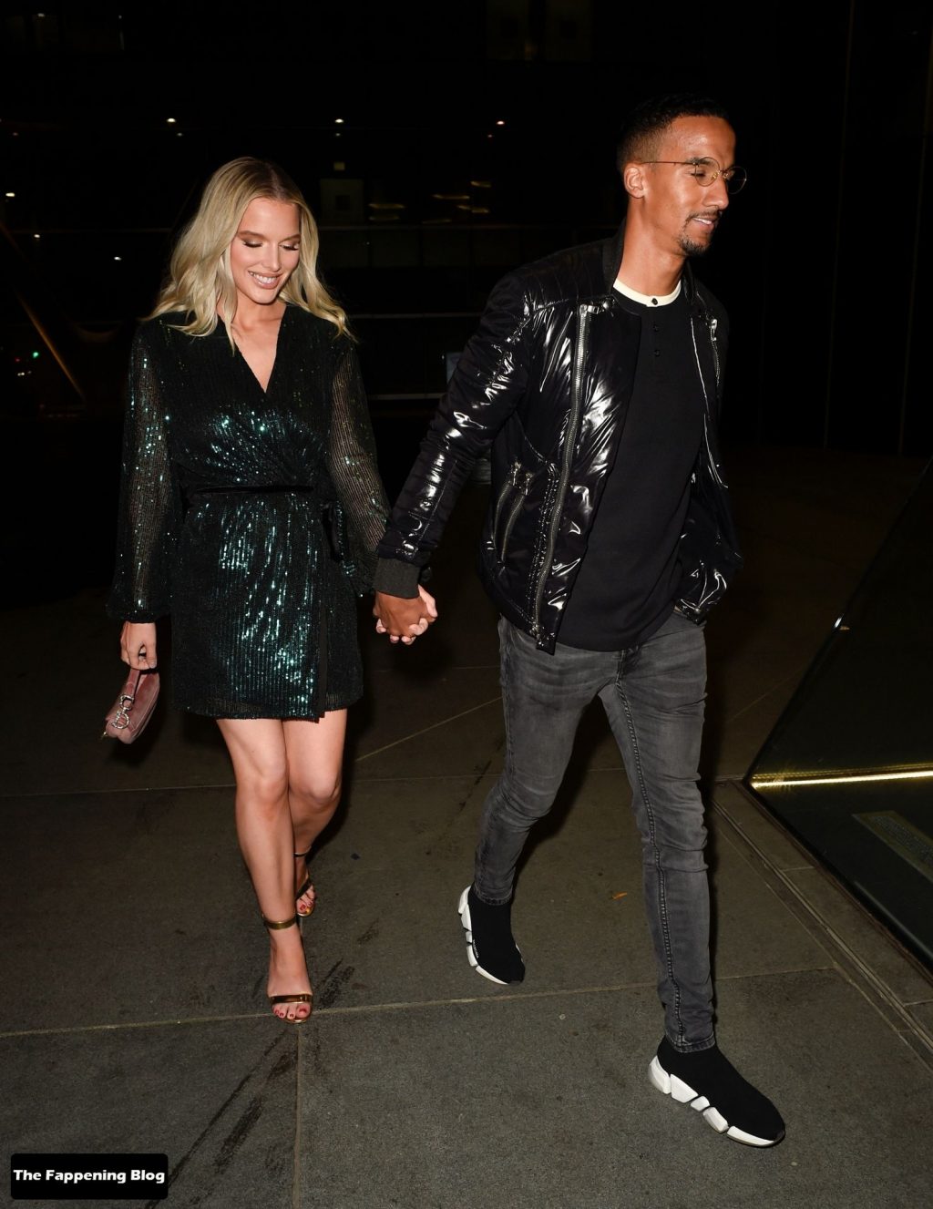 Хелен Фланаган демонстрирует длинные ноги, наслаждаясь вечерним свиданием со своим женихом, футболистом Скоттом Синклером, в ресторане Australasia в Манчестере, 10.09.2021.