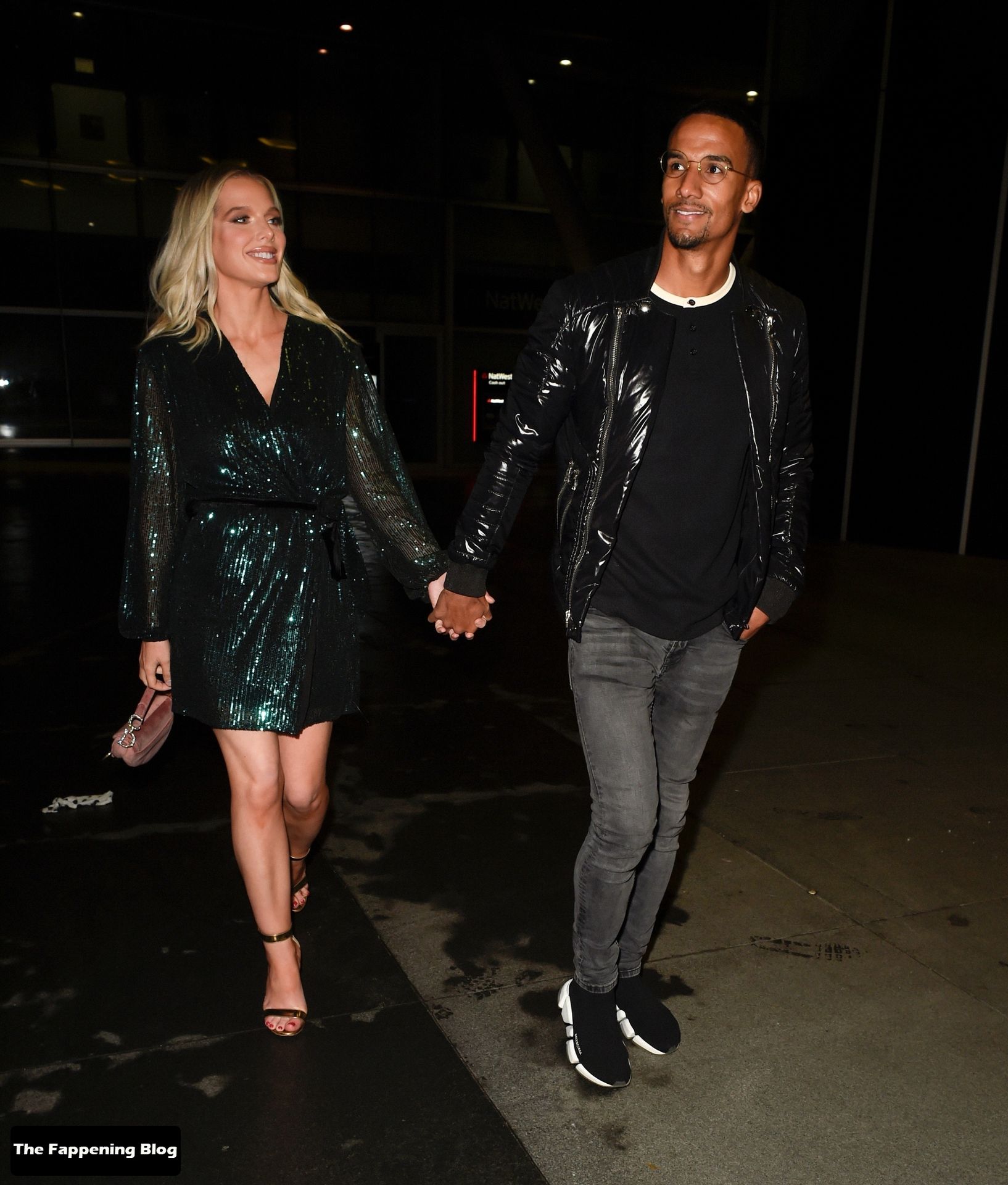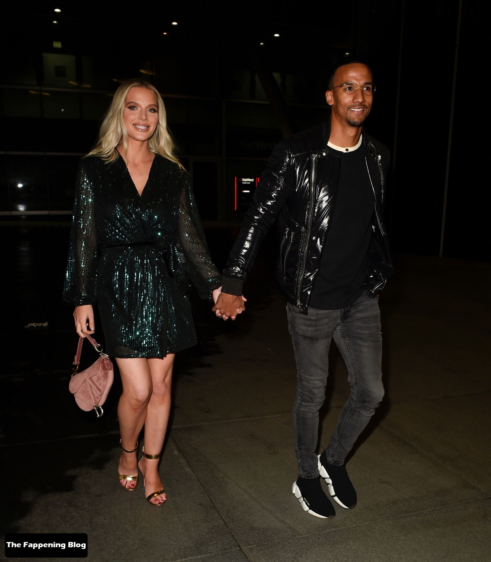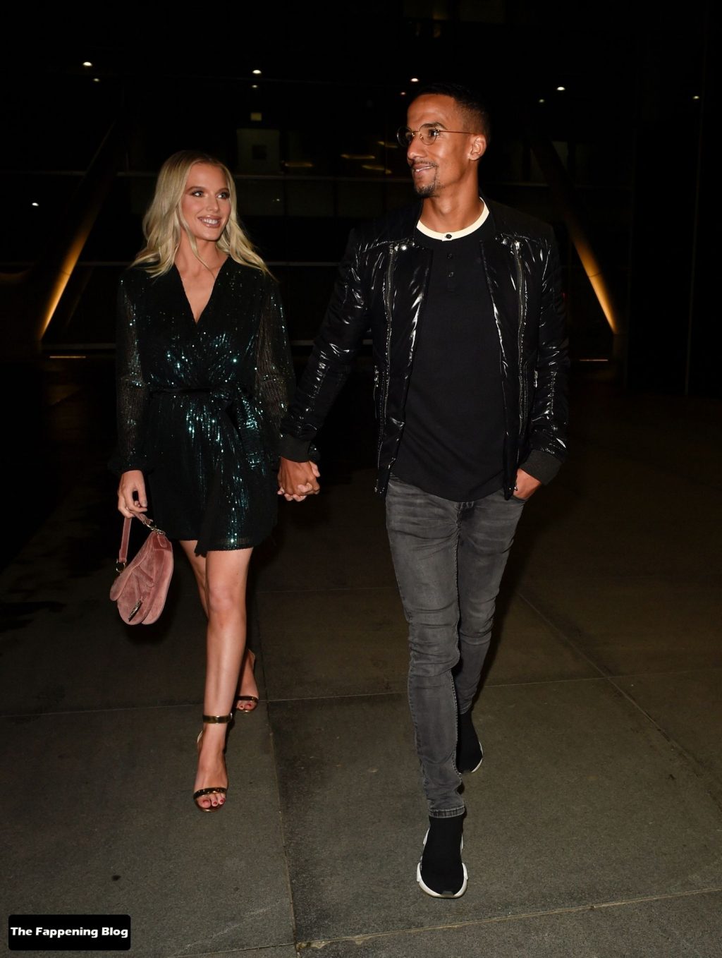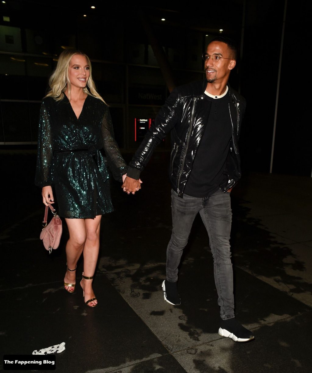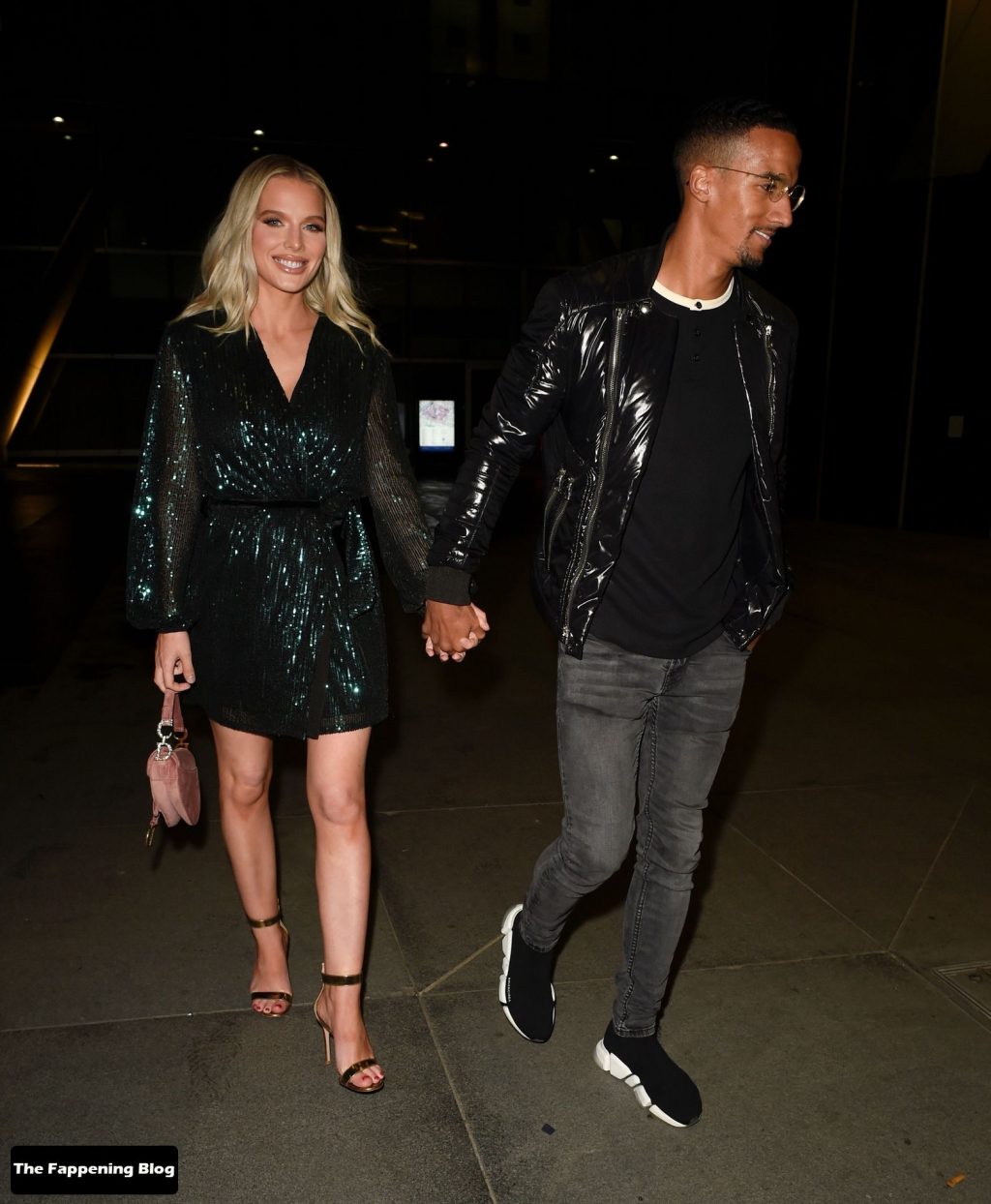 Хелен Фланаган демонстрирует длинные ноги, наслаждаясь вечерним свиданием со своим женихом, футболистом Скоттом Синклером, в ресторане Australasia в Манчестере, 10.09.2021.