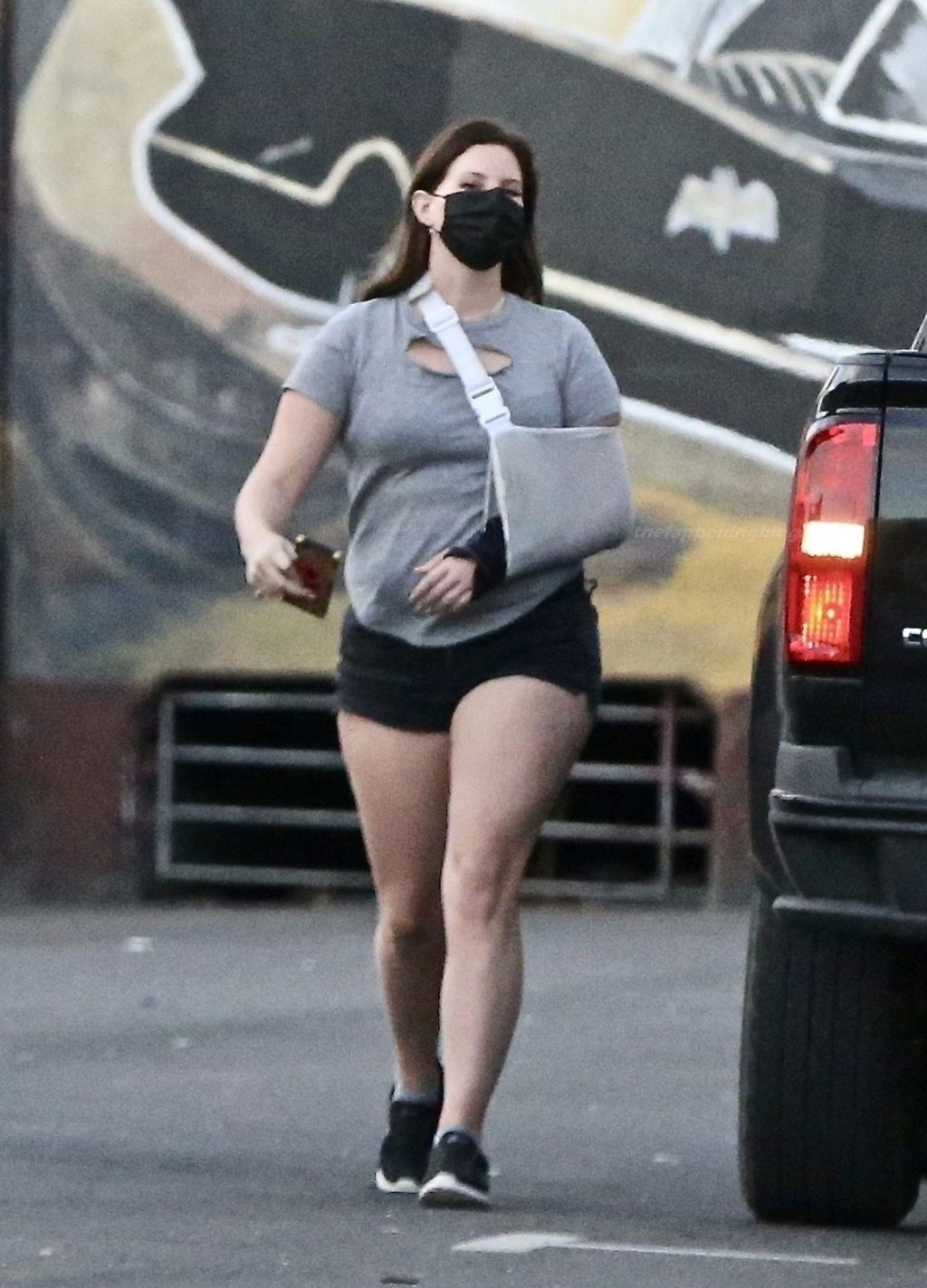 Певица Лана Дель Рей сегодня была замечена в Hugo’s Tacos, где она остановилась перекусить перед тем, как отправиться в клинику ProHealth, предположительно для ухода за травмированной рукой в повязке.