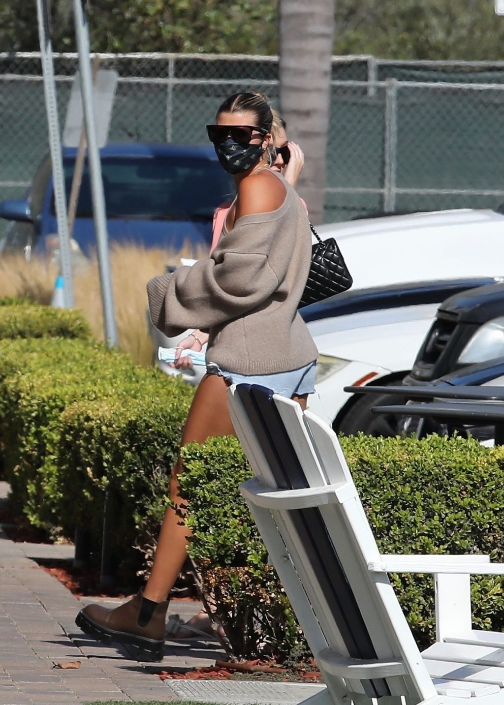 Sofia Richie демонстрирует свои подтянутые и загорелые ноги, делая покупки с друзьями в Malibu Country Mart в Малибу, 01.09.2020.