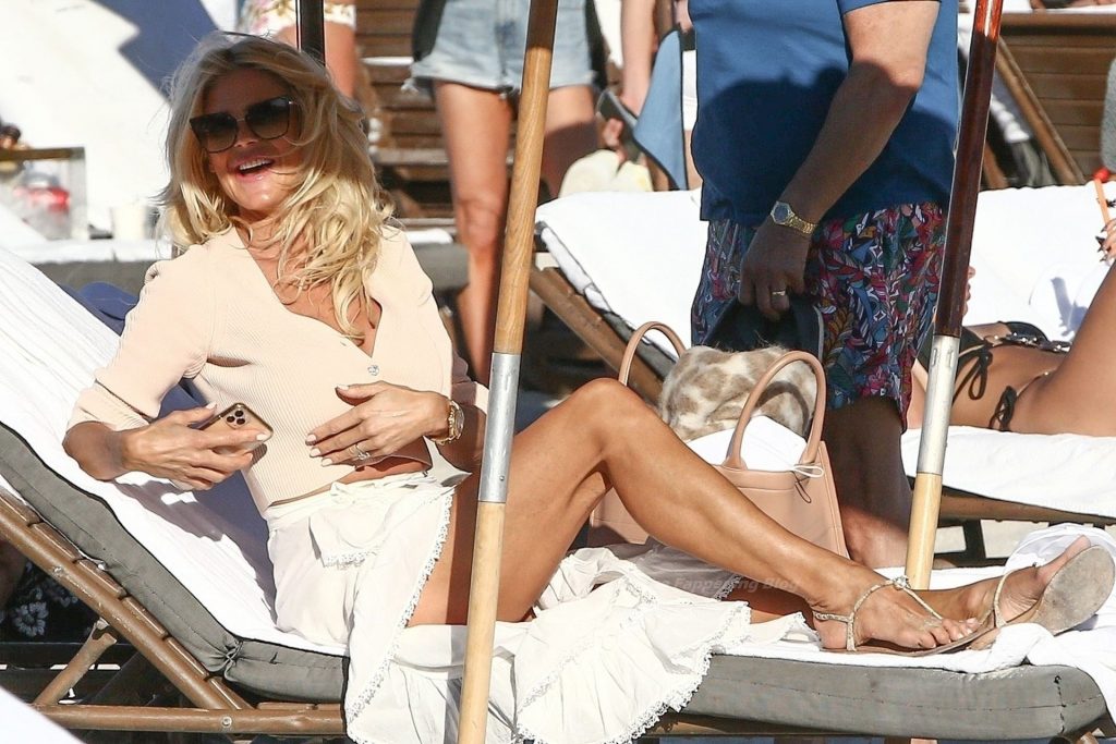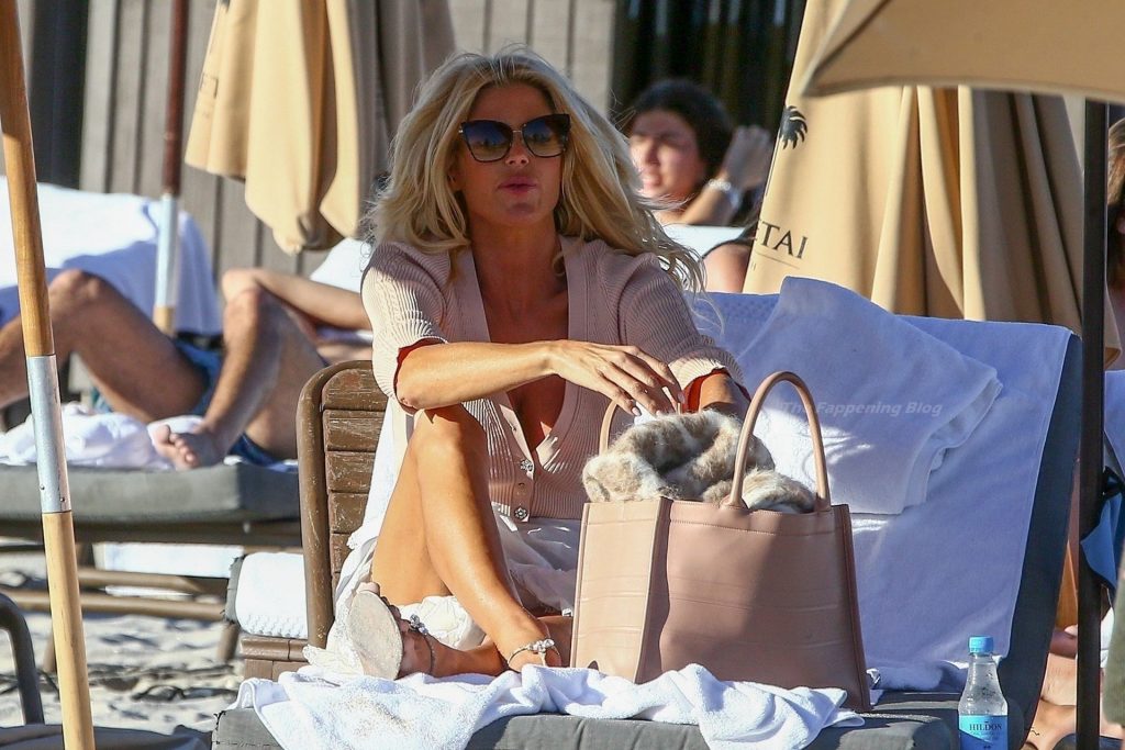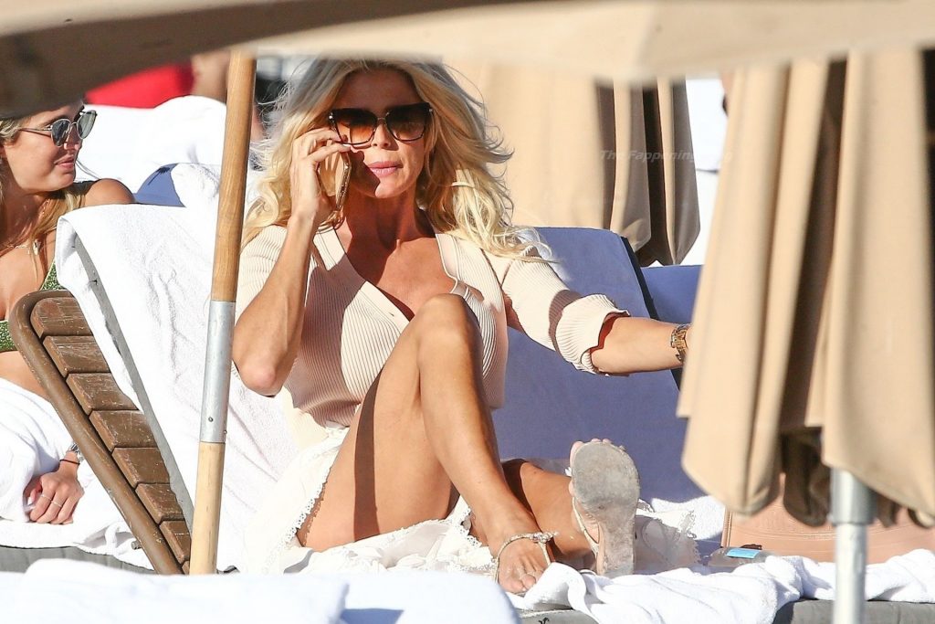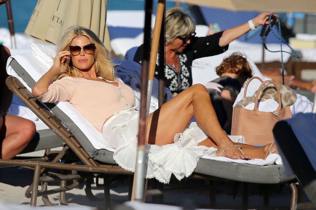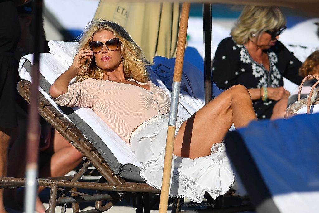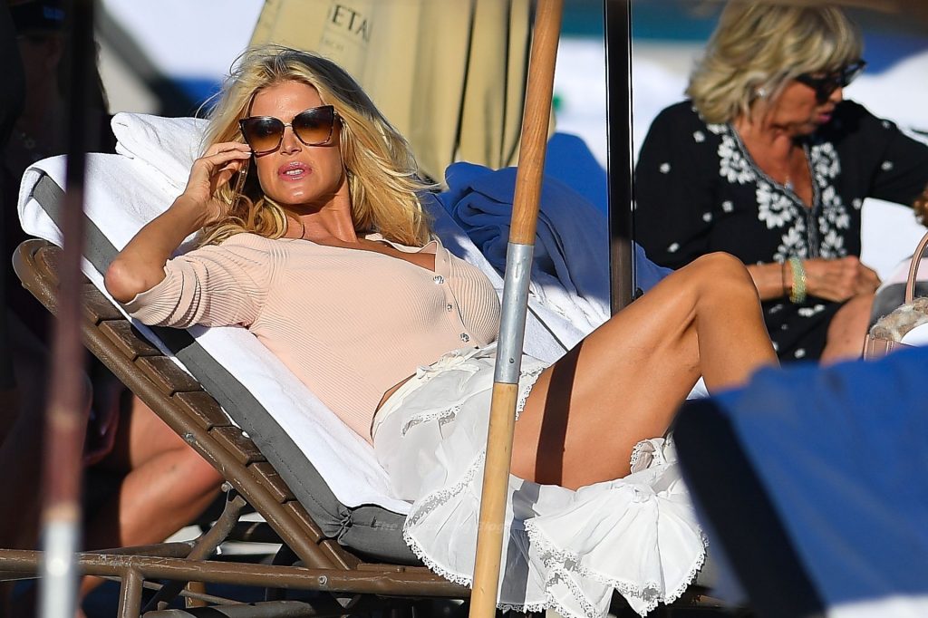 Шведская модель, актриса, певица и телеведущая Виктория Сильвстедт, 46 лет, наслаждается днем, загорая на солнце в Майами с друзьями перед выходными, 22.01.2021.
