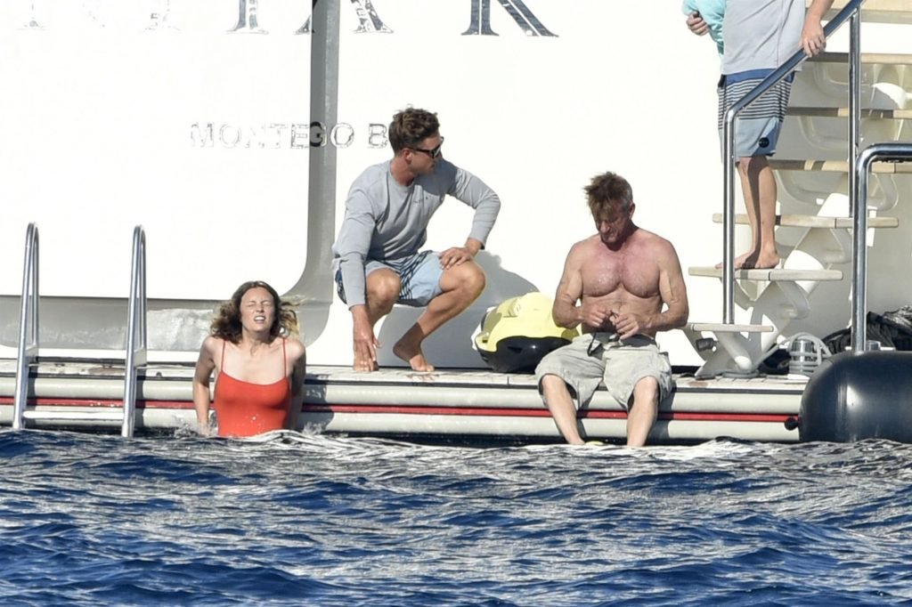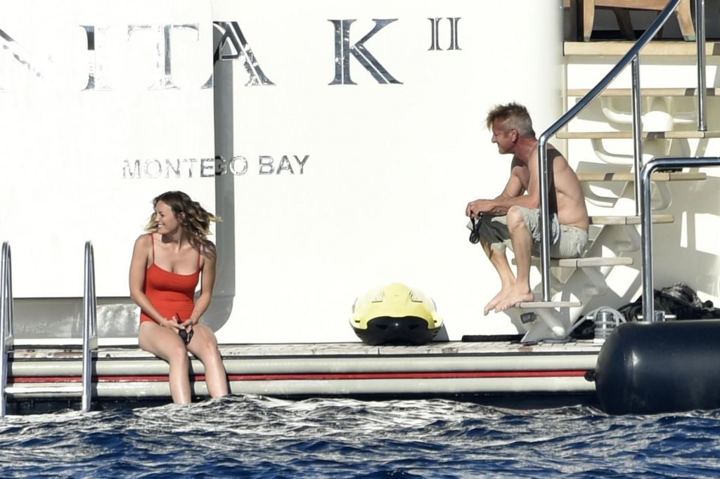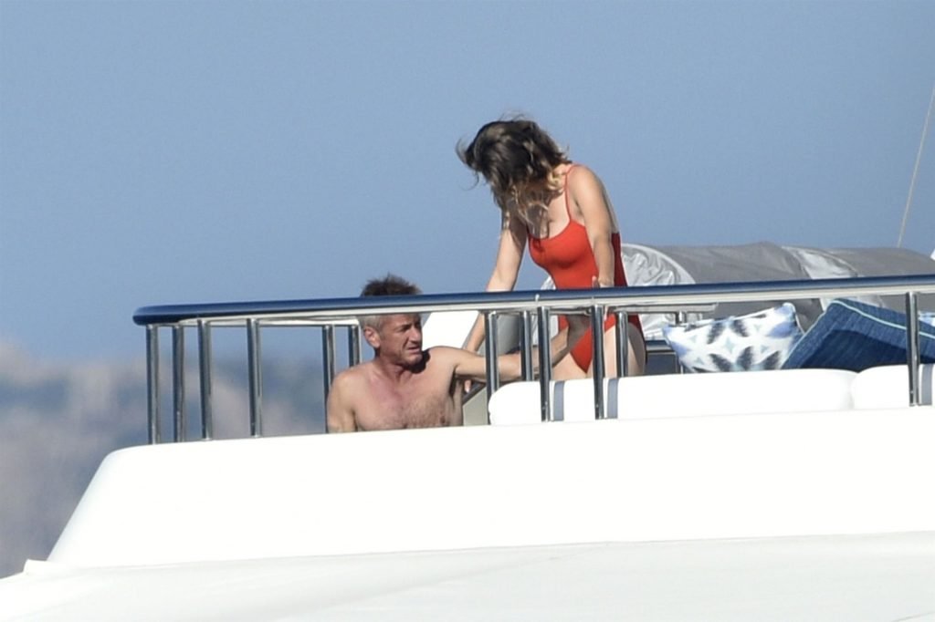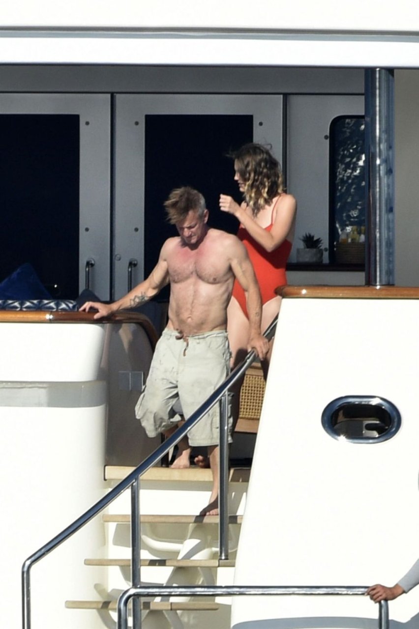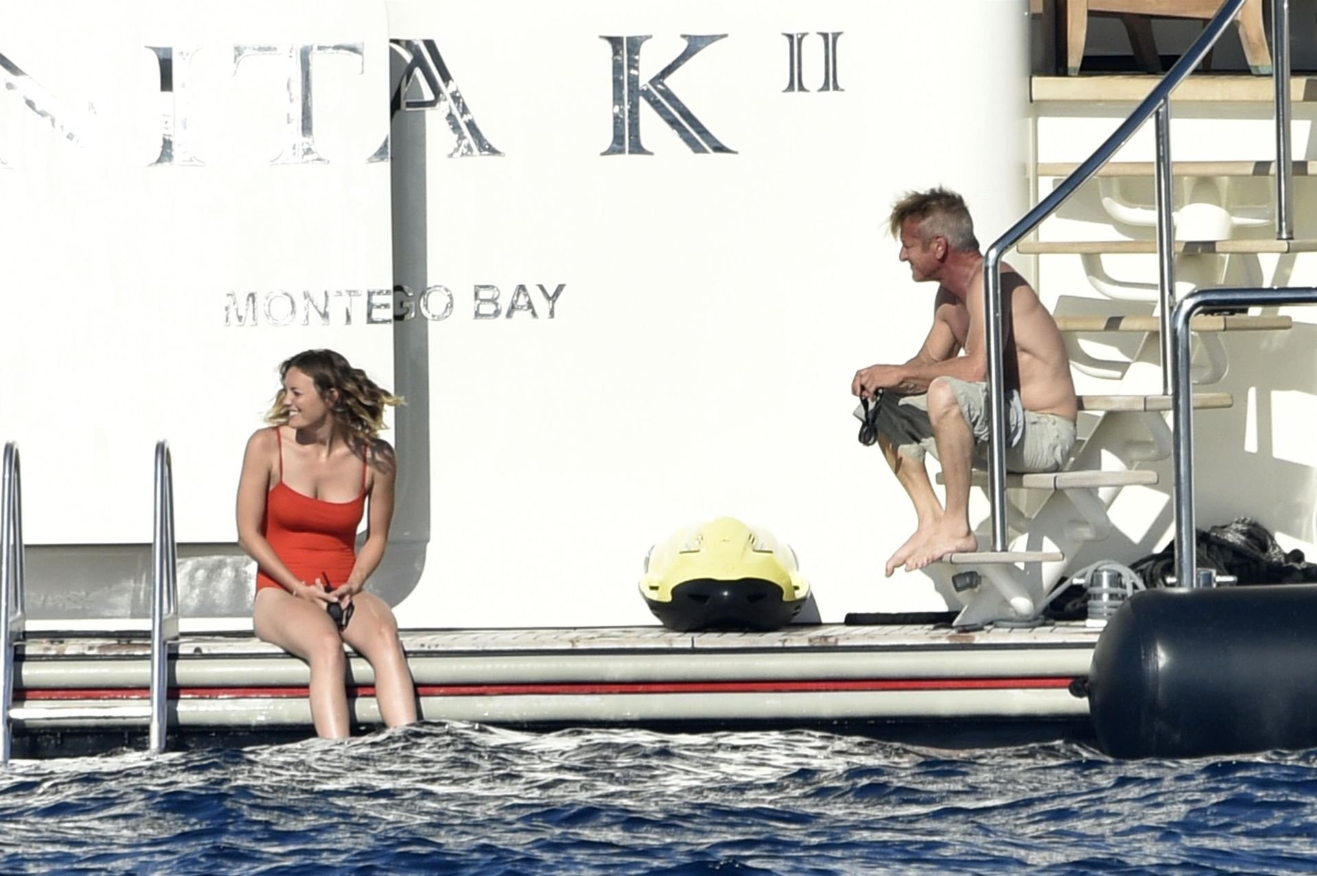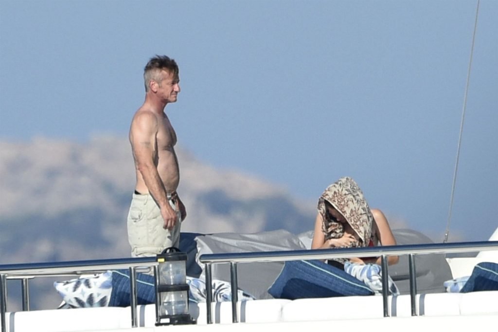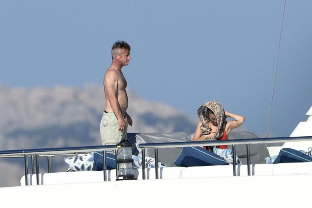 Шон Пенн и его девушка Лейла Джордж наслаждаются отпуском на яхте в Порто Черво, Сардиния, 11.08.2019. Гостями той же яхты являются Леонардо ДиКаприо и его девушка Камила Морроне.