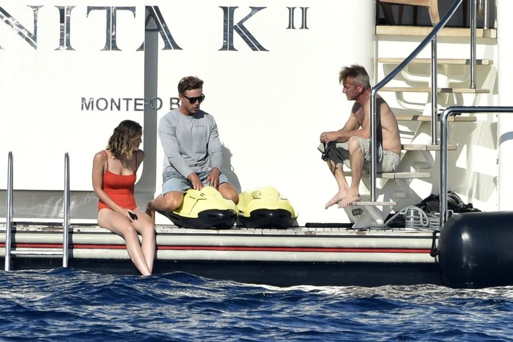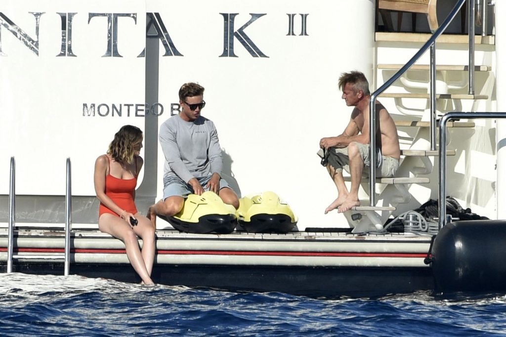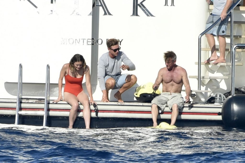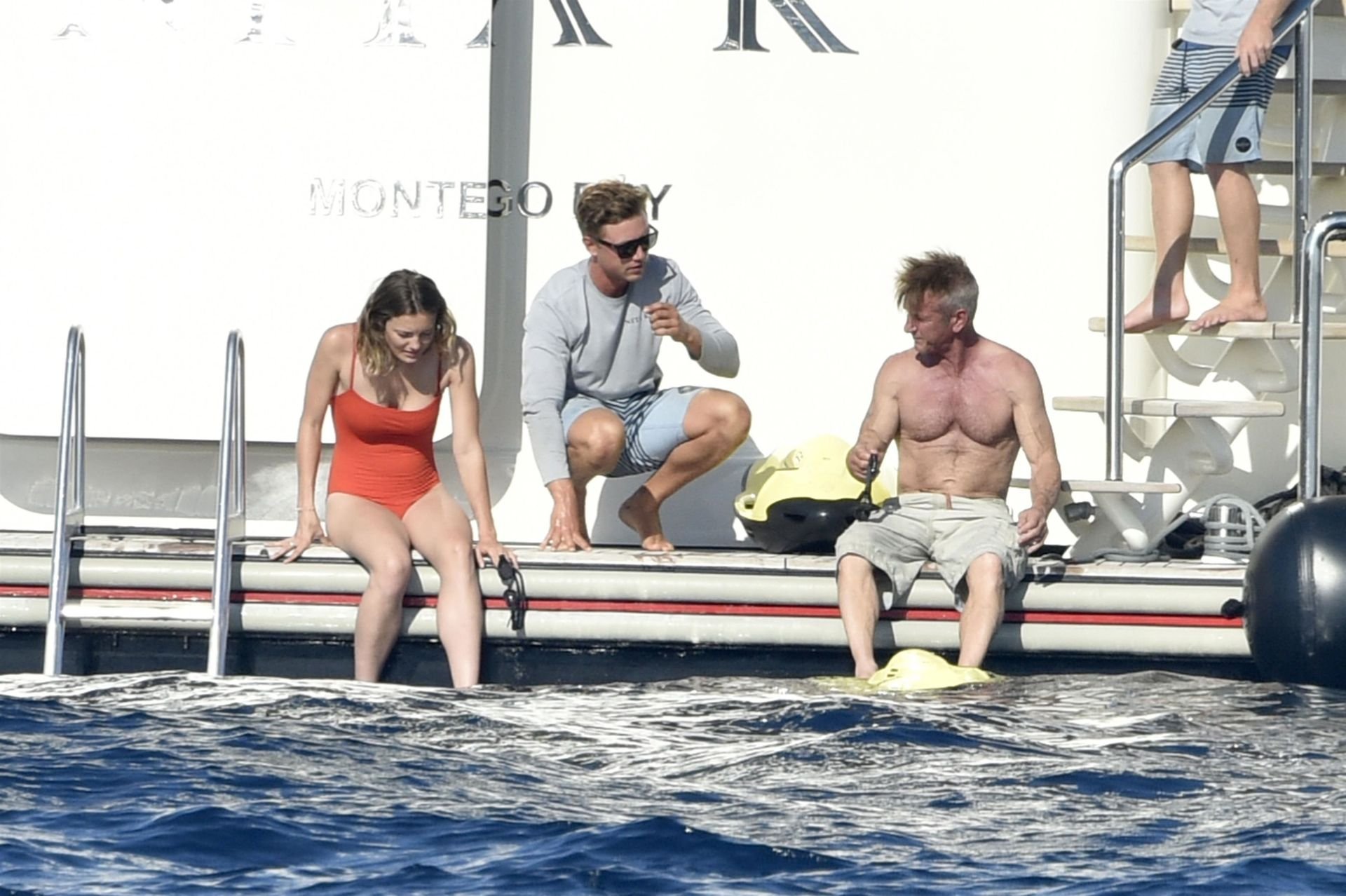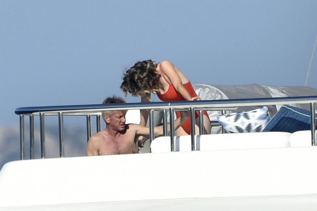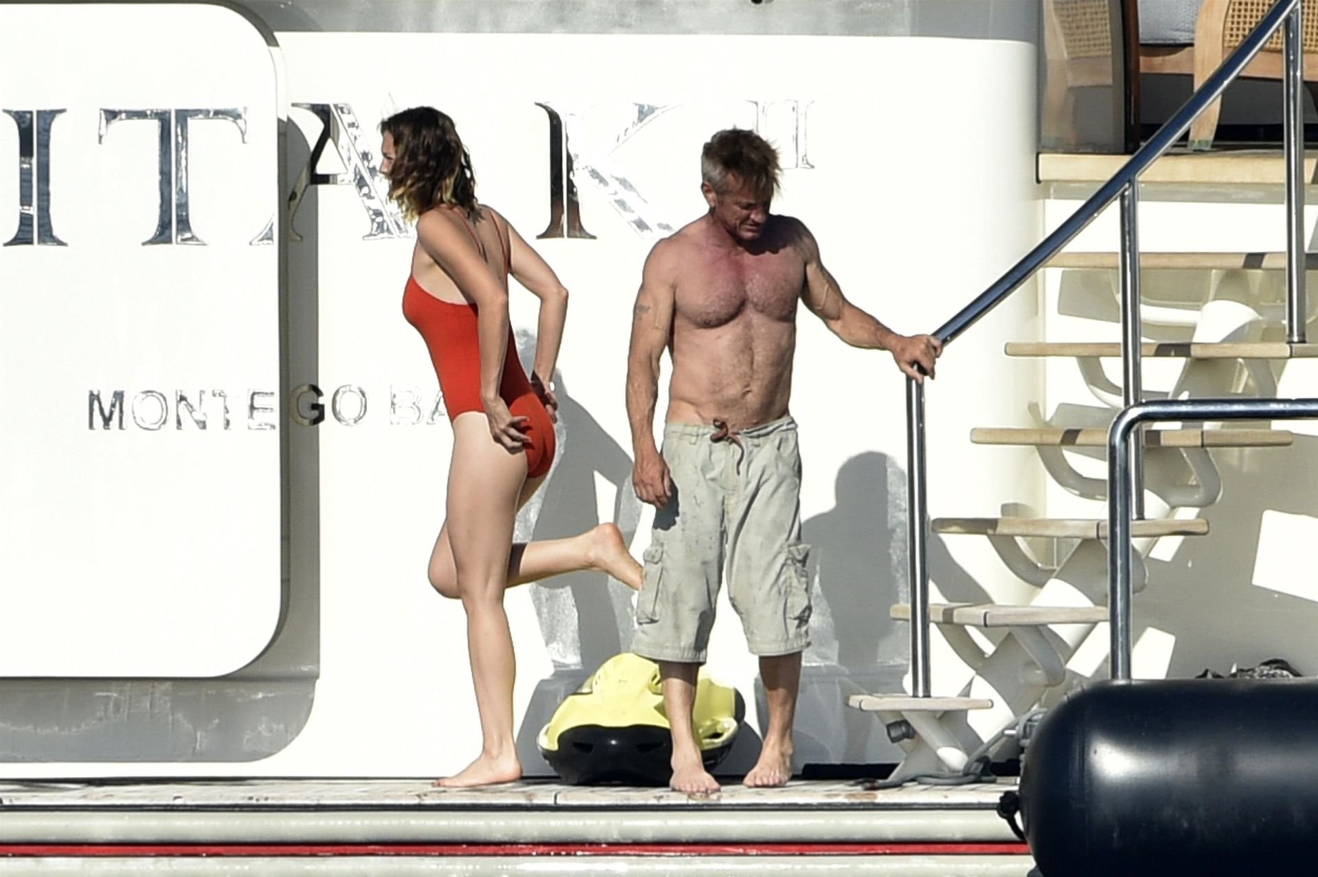 Шон Пенн и его девушка Лейла Джордж наслаждаются отпуском на яхте в Порто Черво, Сардиния, 11.08.2019. Гостями той же яхты являются Леонардо ДиКаприо и его девушка Камила Морроне.