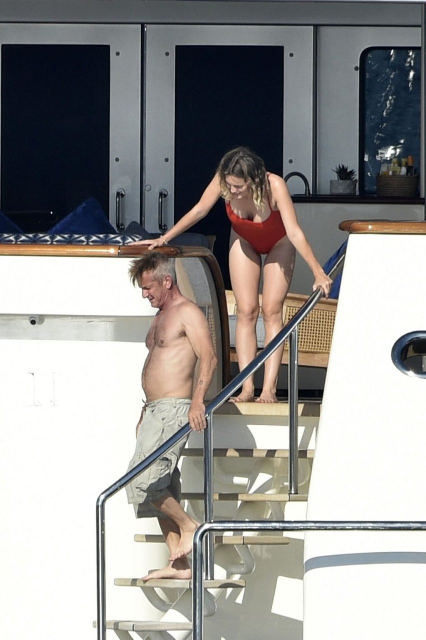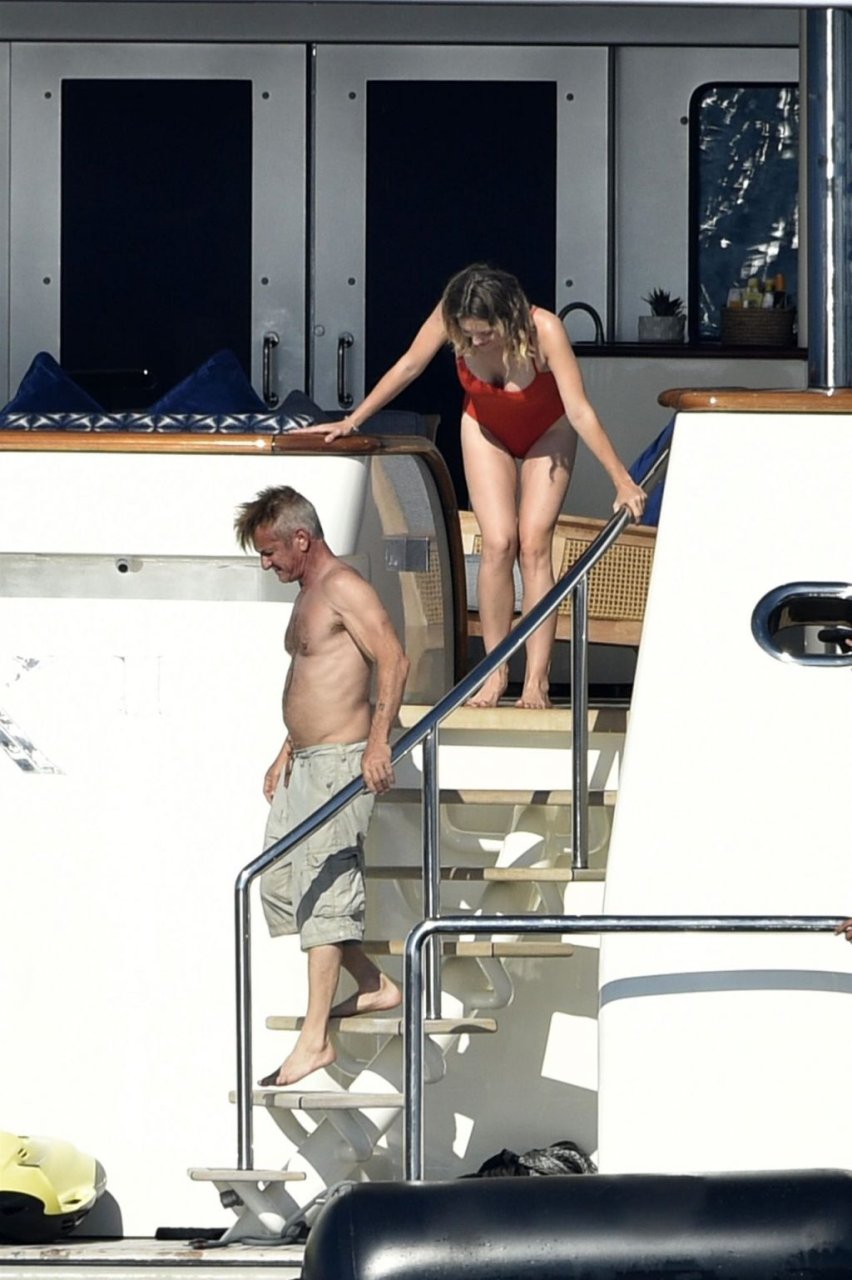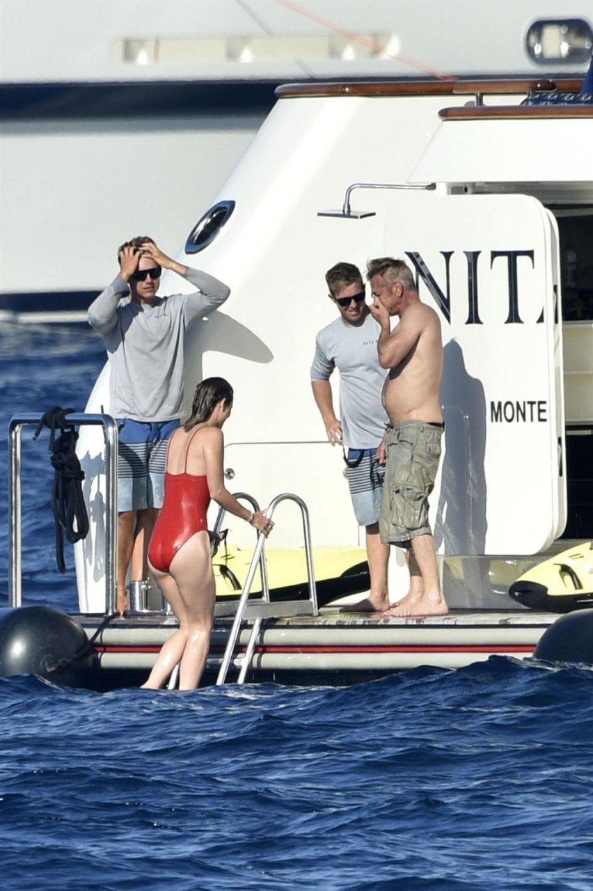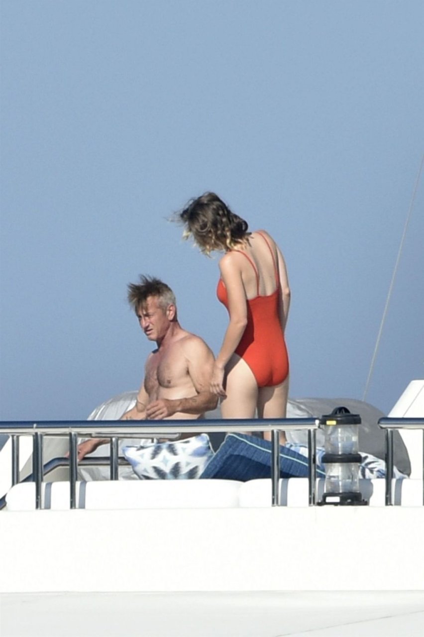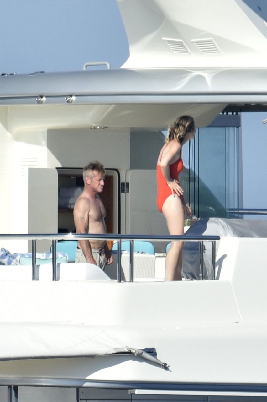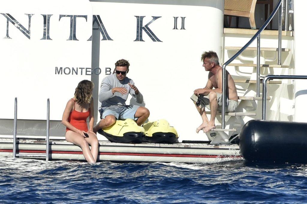 Шон Пенн и его девушка Лейла Джордж наслаждаются отпуском на яхте в Порто Черво, Сардиния, 11.08.2019. Гостями той же яхты являются Леонардо ДиКаприо и его девушка Камила Морроне.