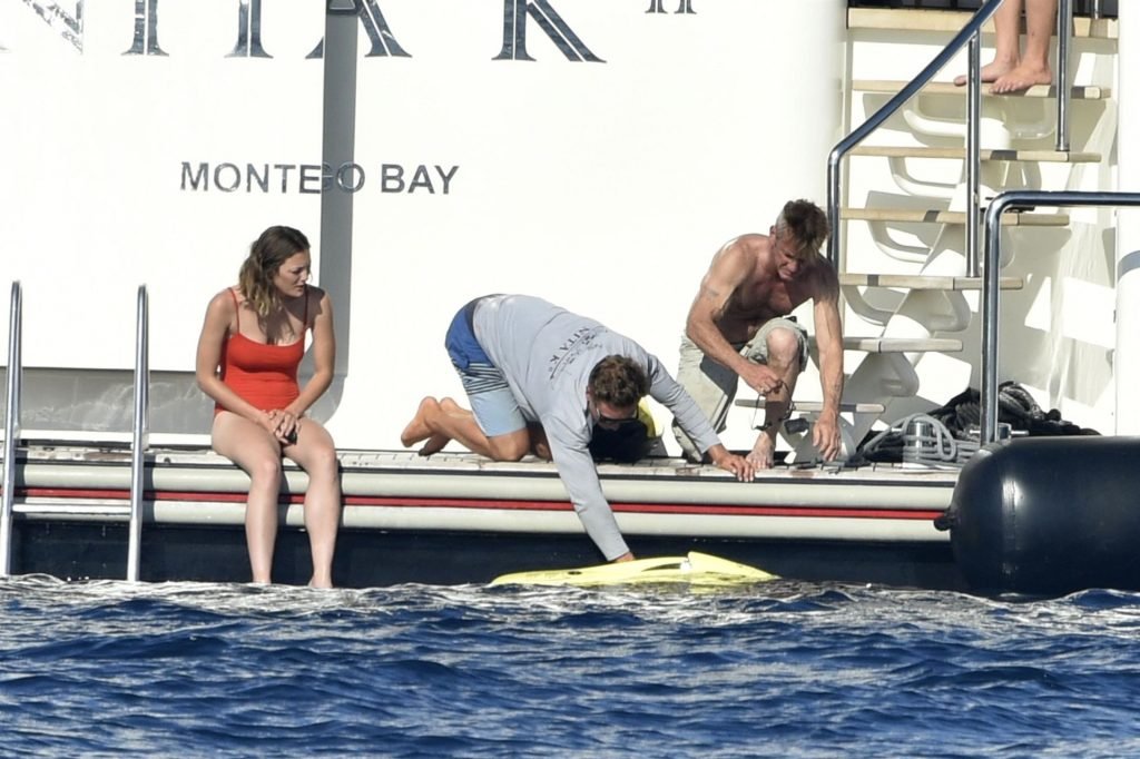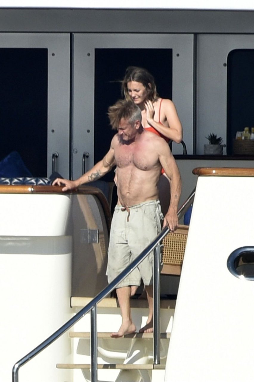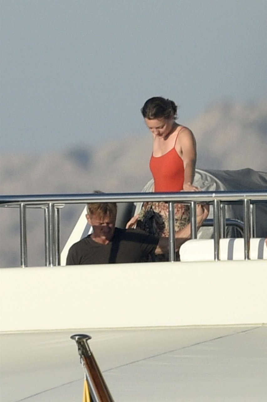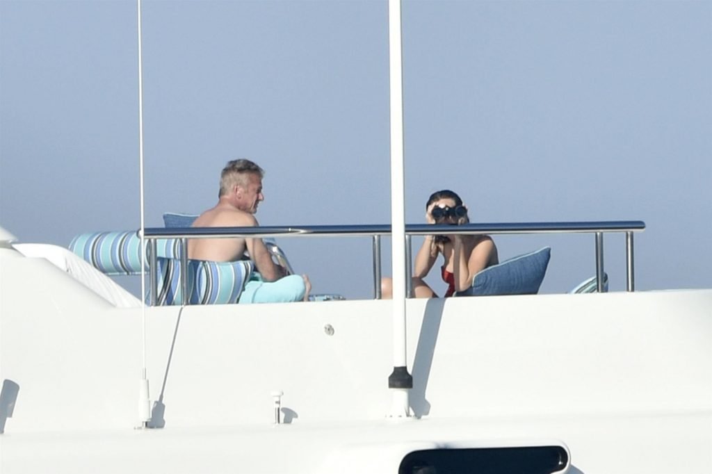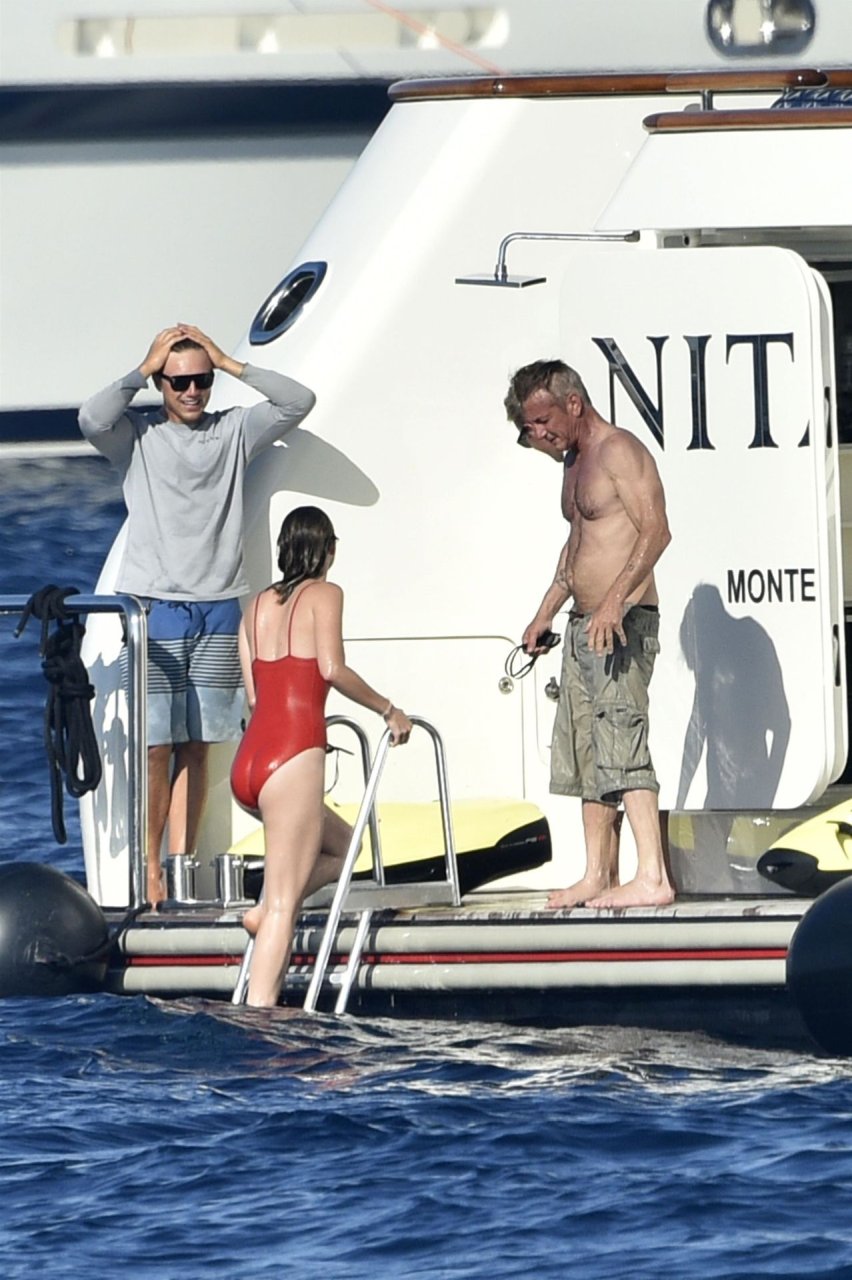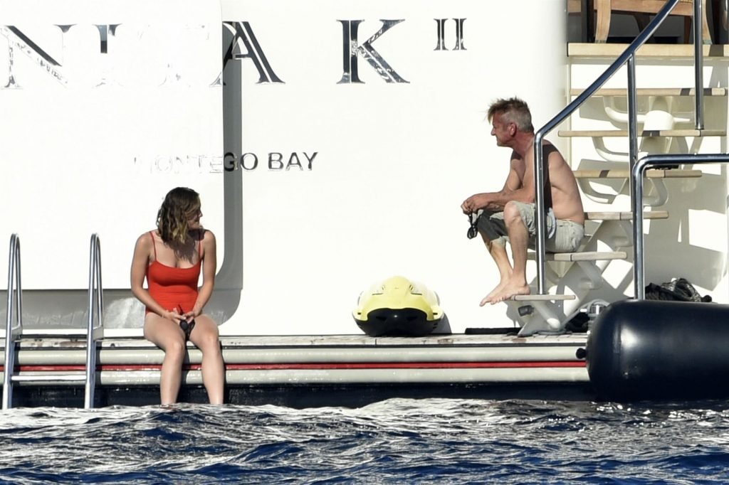 Шон Пенн и его девушка Лейла Джордж наслаждаются отпуском на яхте в Порто Черво, Сардиния, 11.08.2019. Гостями той же яхты являются Леонардо ДиКаприо и его девушка Камила Морроне.