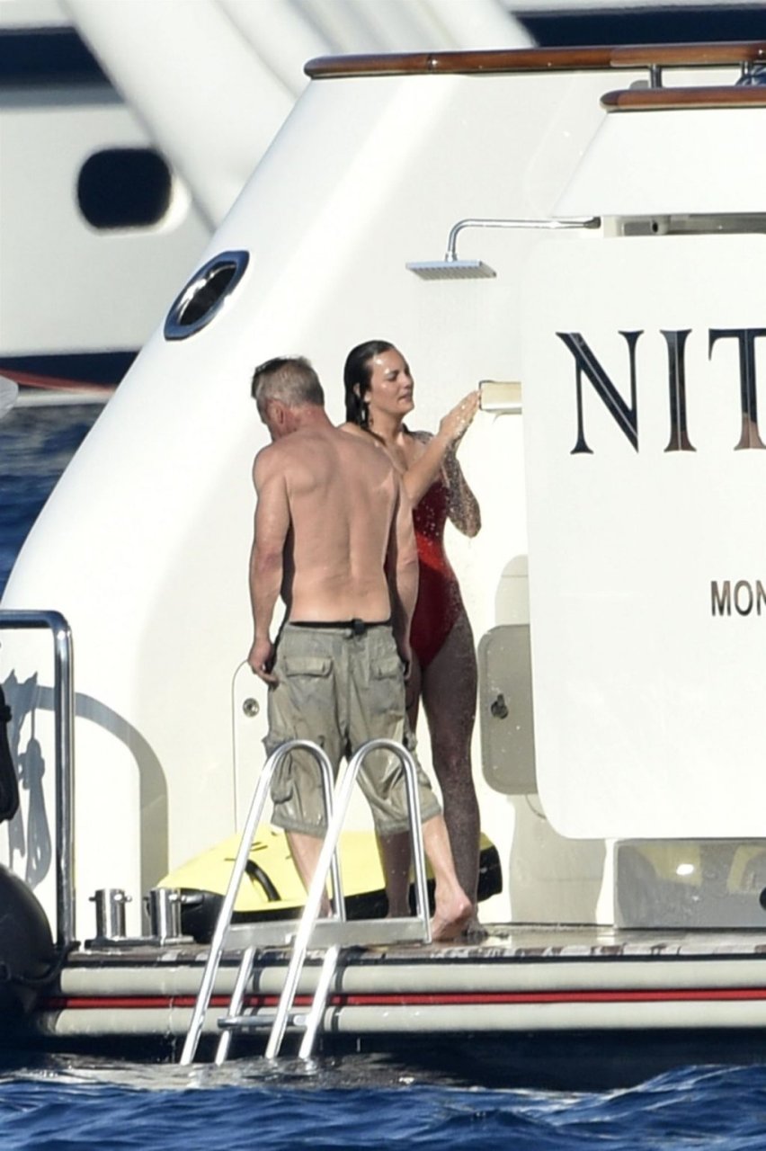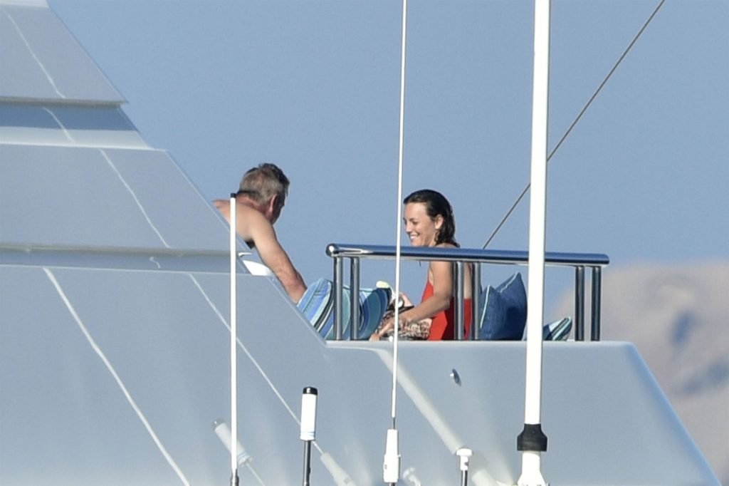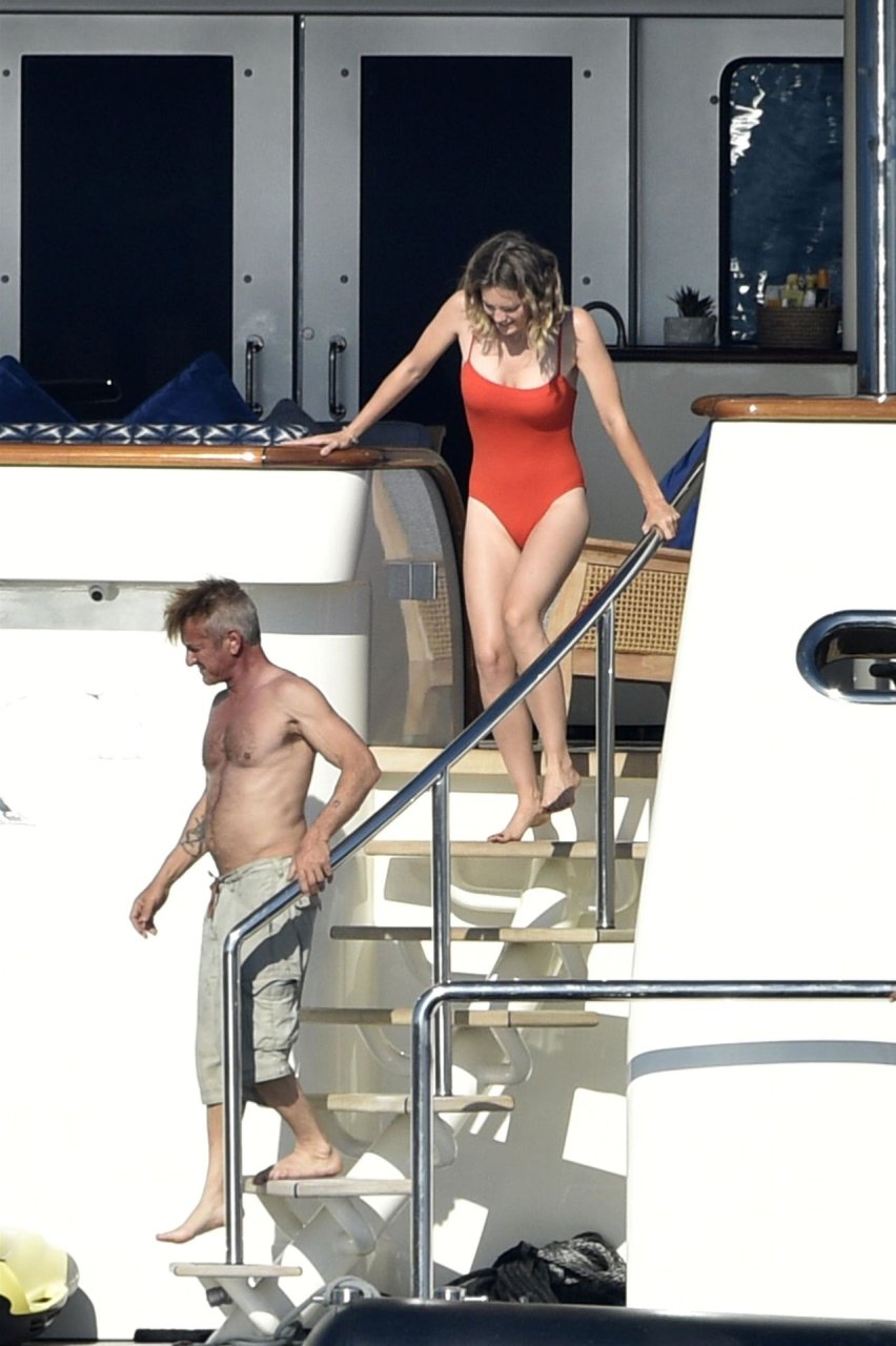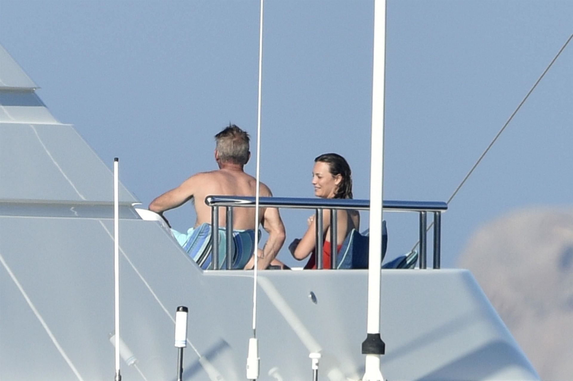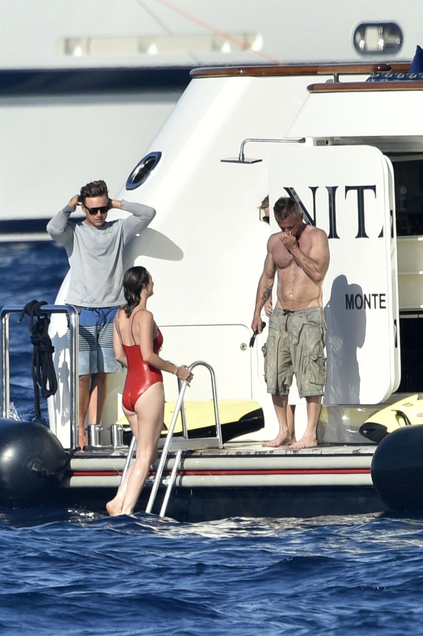 Шон Пенн и его девушка Лейла Джордж наслаждаются отпуском на яхте в Порто Черво, Сардиния, 11.08.2019. Гостями той же яхты являются Леонардо ДиКаприо и его девушка Камила Морроне.