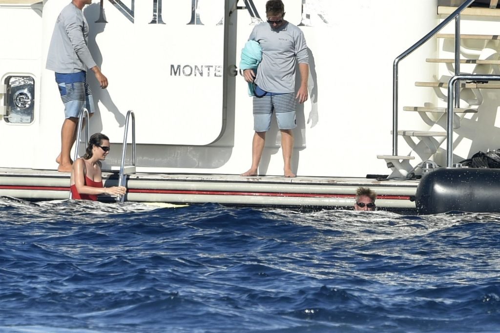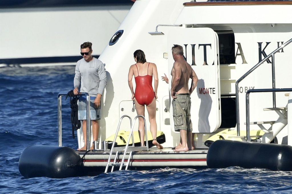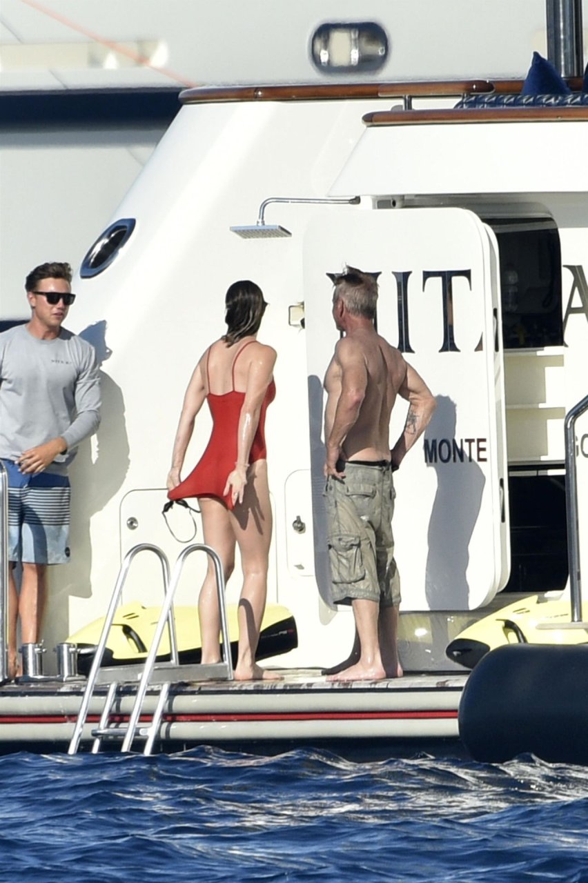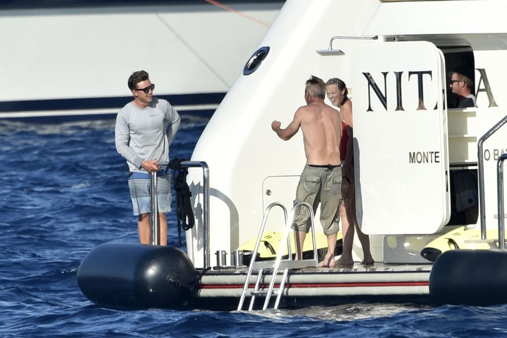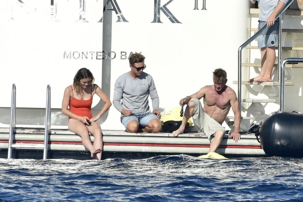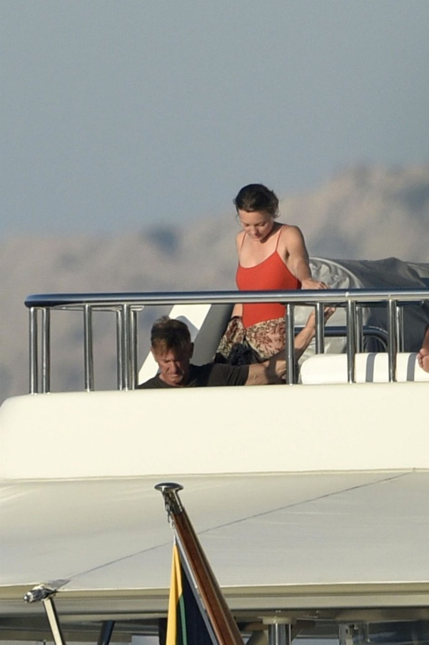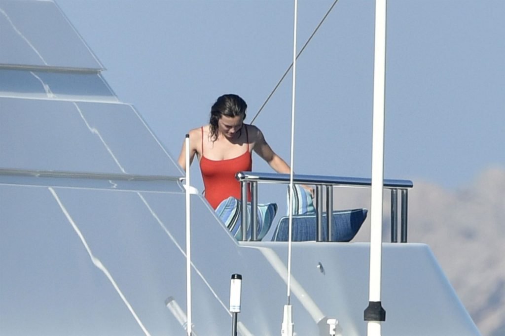 Шон Пенн и его девушка Лейла Джордж наслаждаются отпуском на яхте в Порто Черво, Сардиния, 11.08.2019. Гостями той же яхты являются Леонардо ДиКаприо и его девушка Камила Морроне.