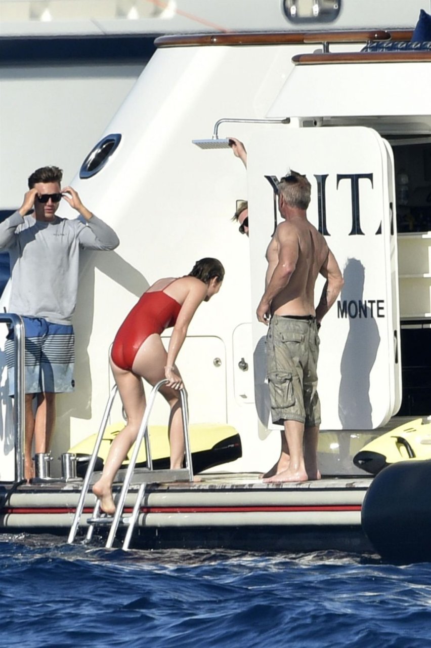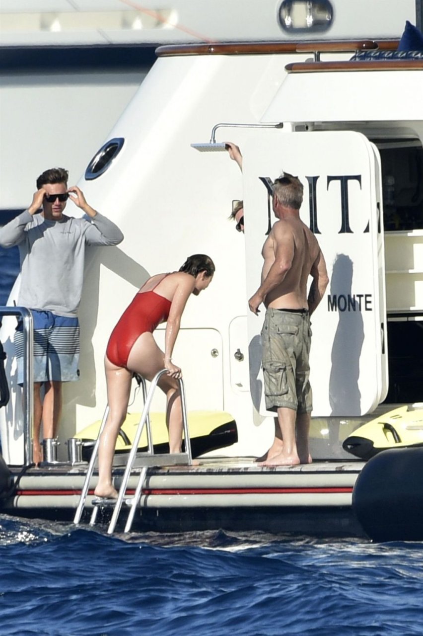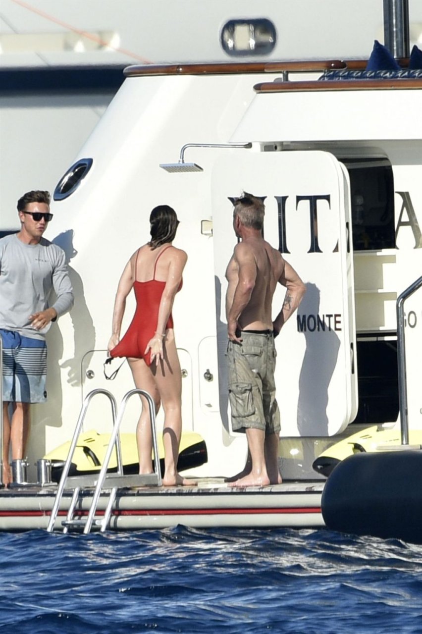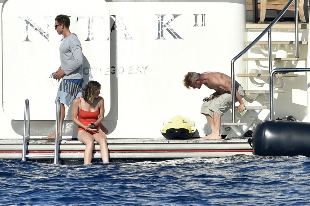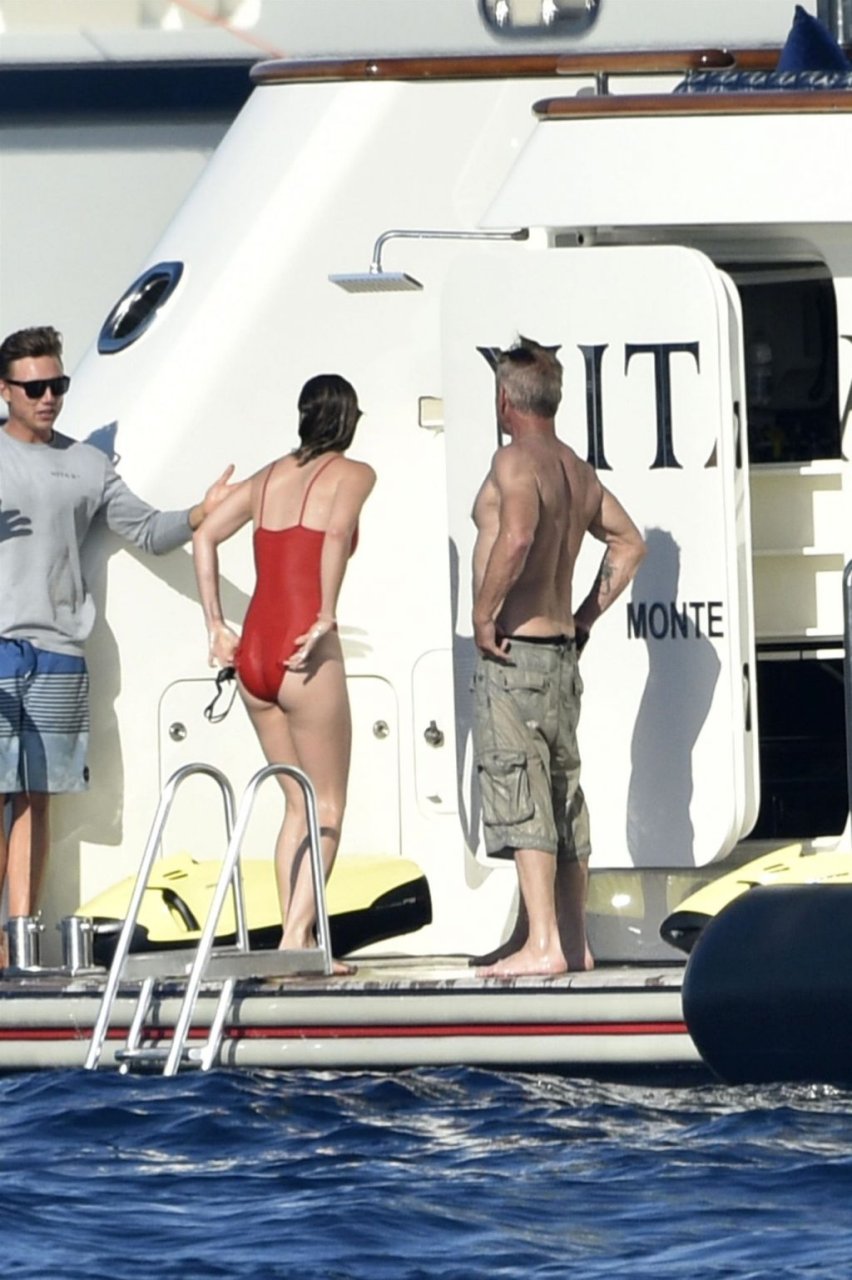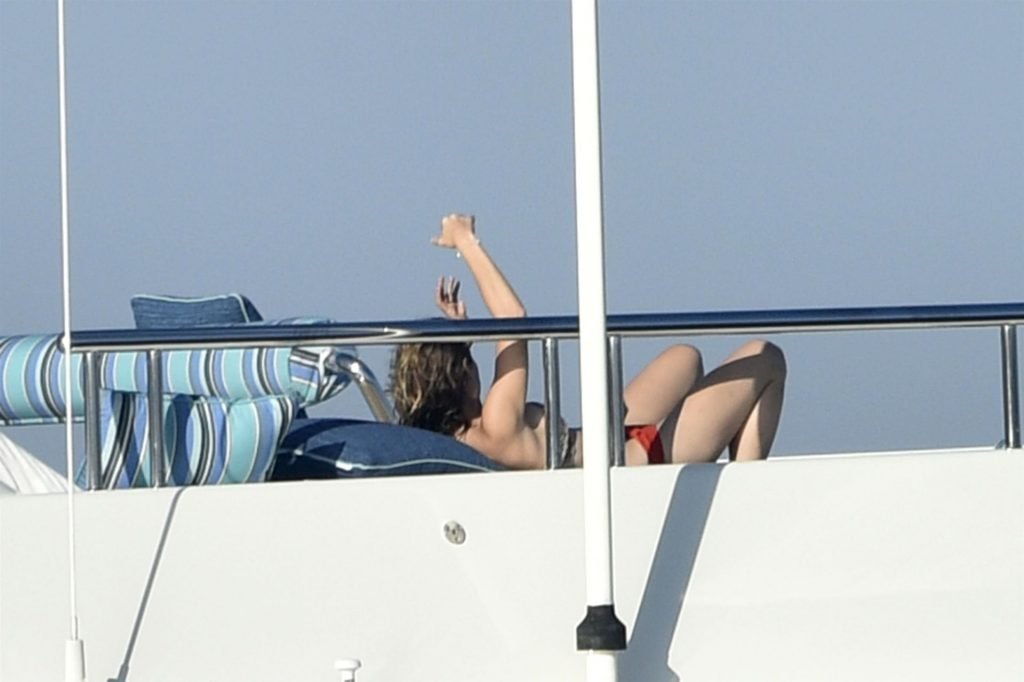 Шон Пенн и его девушка Лейла Джордж наслаждаются отпуском на яхте в Порто Черво, Сардиния, 11.08.2019. Гостями той же яхты являются Леонардо ДиКаприо и его девушка Камила Морроне.