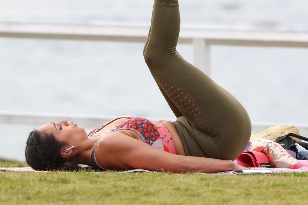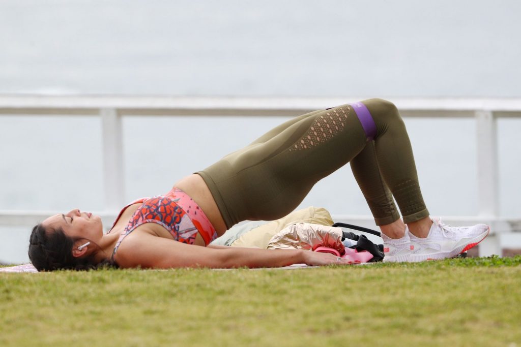 Участница шоу The Bachelor Australia 2020 Лейлани Вакаахи запечатлена во время утренней тренировки в Куги, Сидней, 08/12/2020.