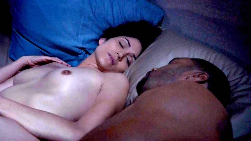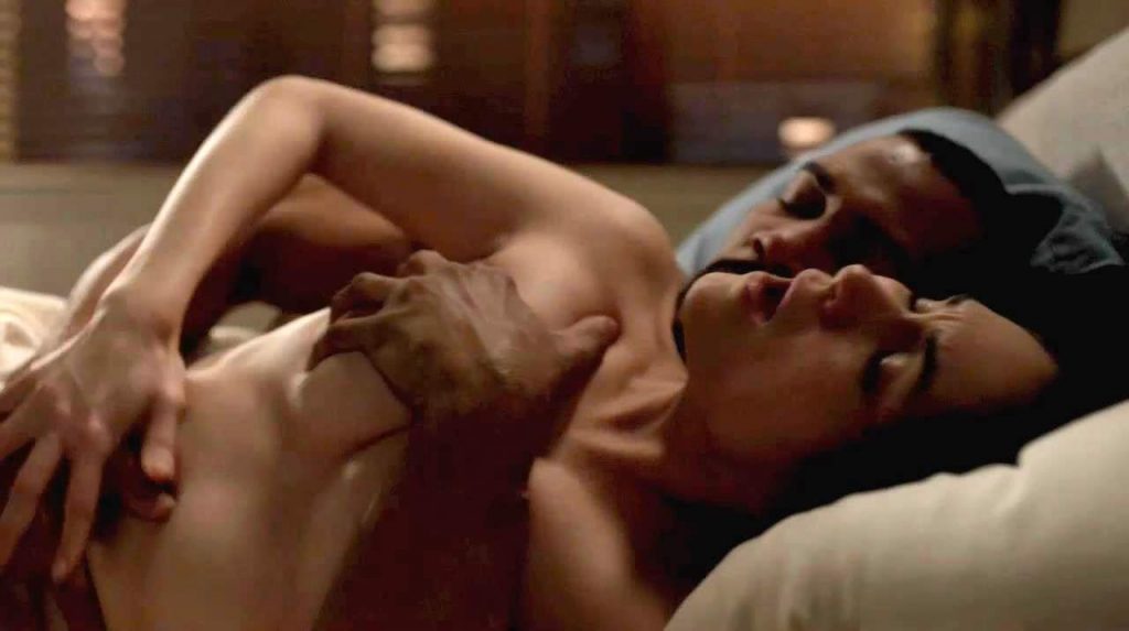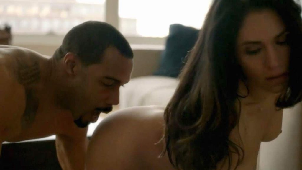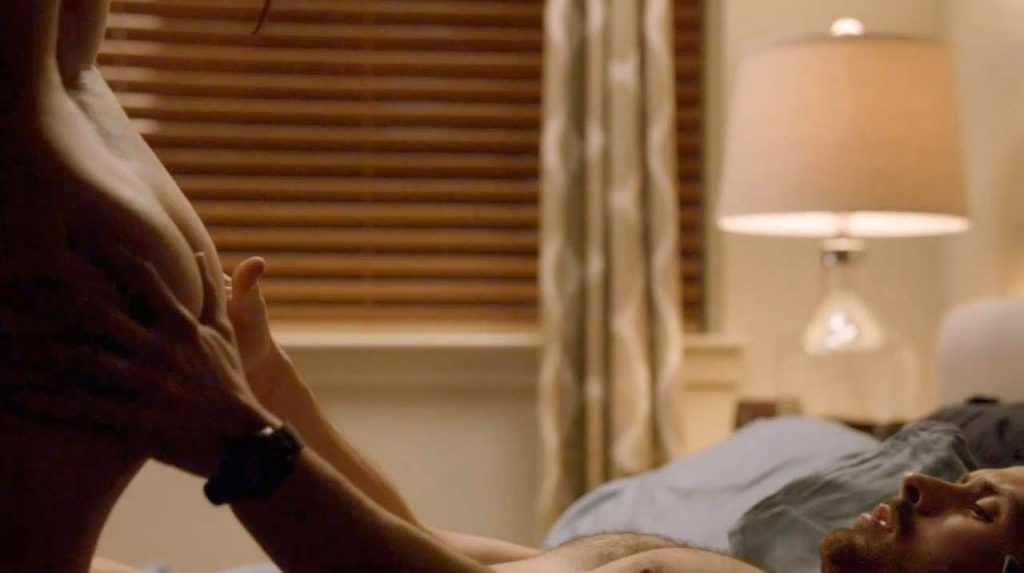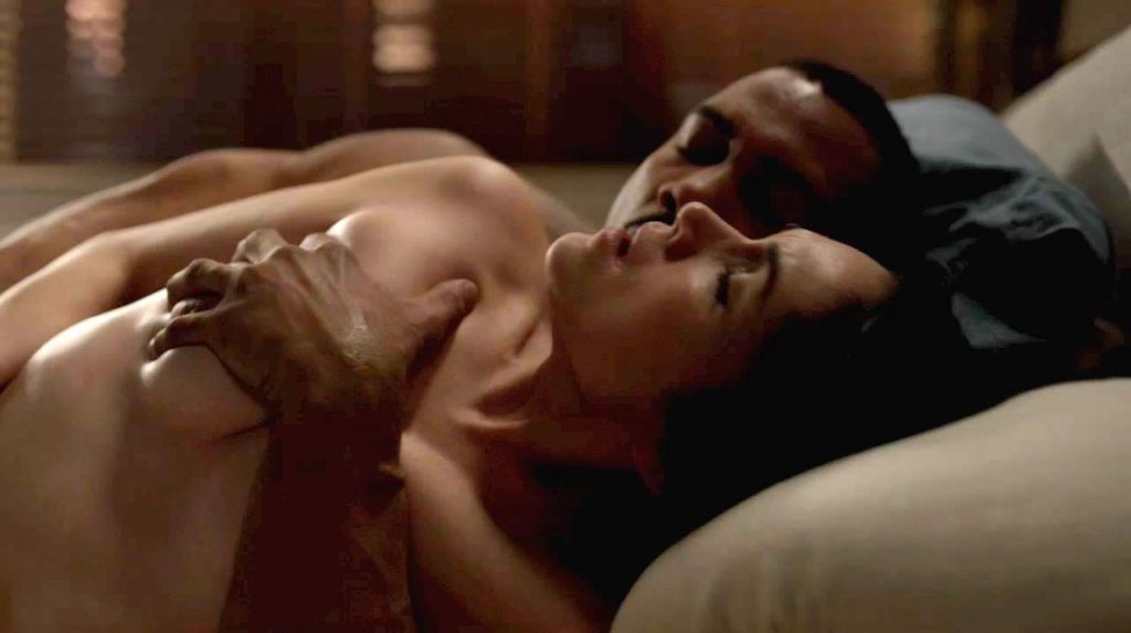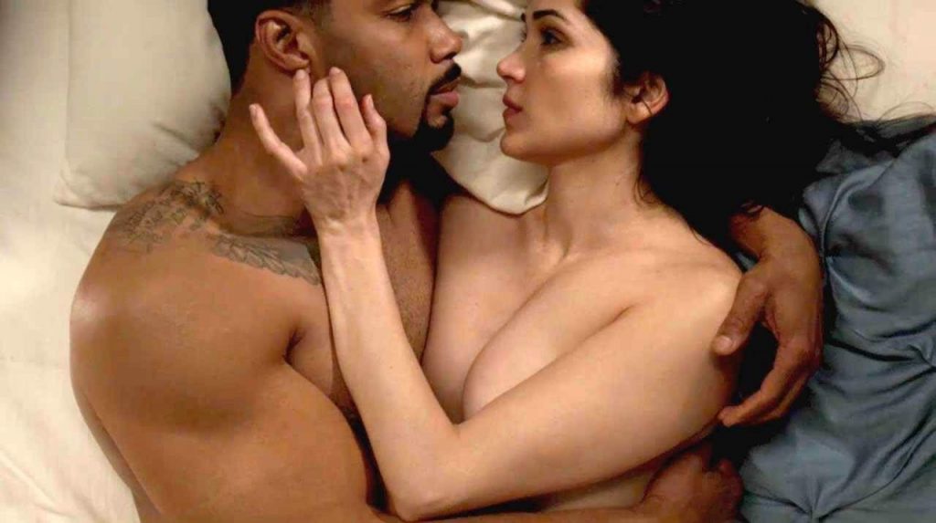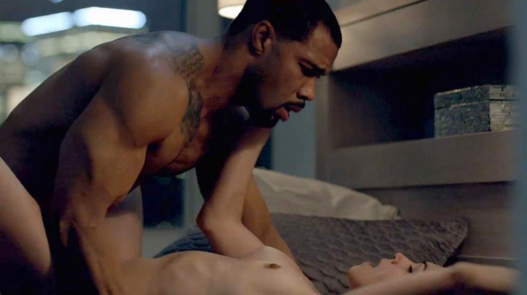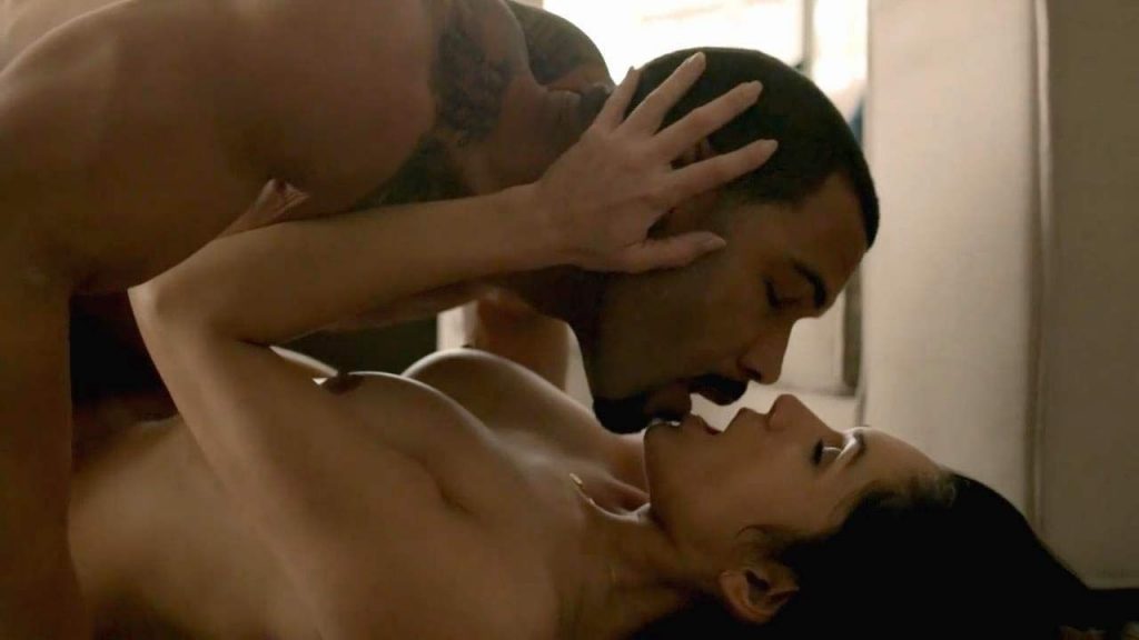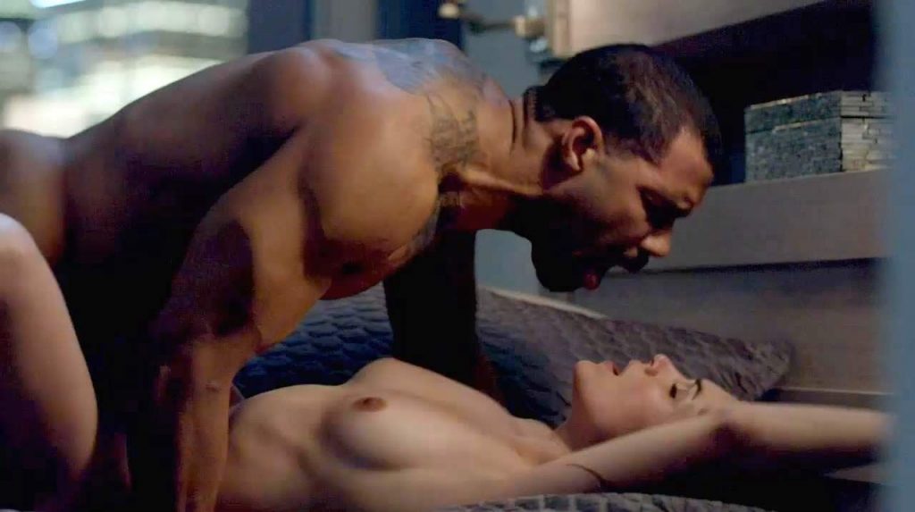 I think this scene is the first-ever Lela Loren did for Power. Here she takes off her red dress and starts passionate sex with a boyfriend. She fucks under the shower and then continues sex in a bedroom. We see a part of her nude boobs and hot nipple.