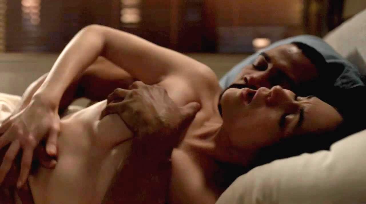 One more time, Lela shows her attributes in a nude sex scene in a standing position. She stands near the window, and her boyfriend kisses her down between her legs. Then she wrapped her legs around the guy as they have hot sex — a good view of her nude boobs.