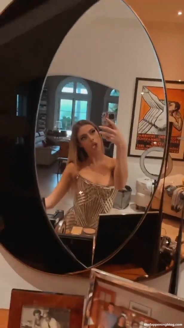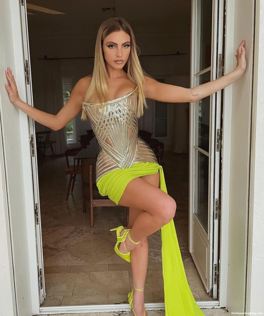 Звезда социальных сетей Леле Понс показывает красивое декольте и соски, надевая прекрасное платье от Лены Бериша – Instagram, 24.07.2021.