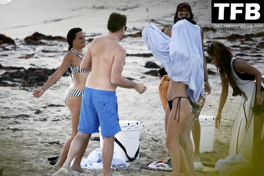 47-летний актёр из “Не смотри вверх” и его 24-летняя девушка выглядели счастливыми и расслабленными, сидя с друзьями после купания в океане.