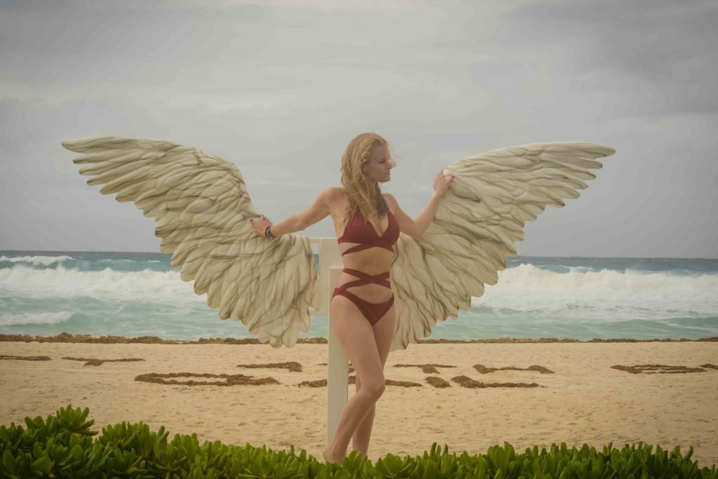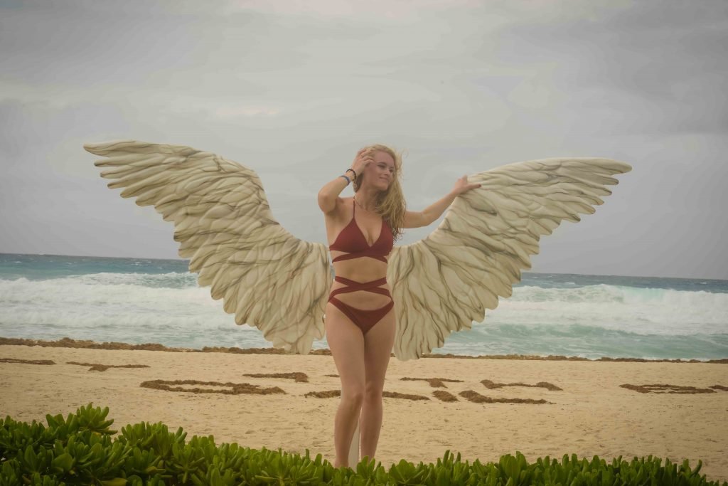 Голливудская звезда Левен Рамбин устроила настоящее театральное шоу во время романтического отпуска с новым мужчиной, появившись на пляже в бикини и с крыльями, 22.05.2018.