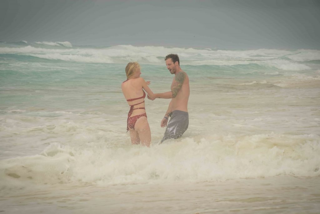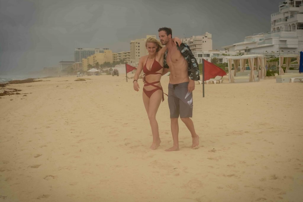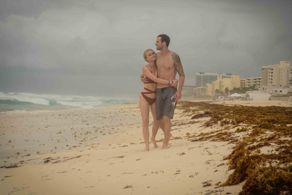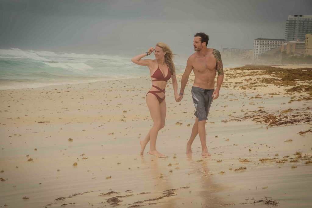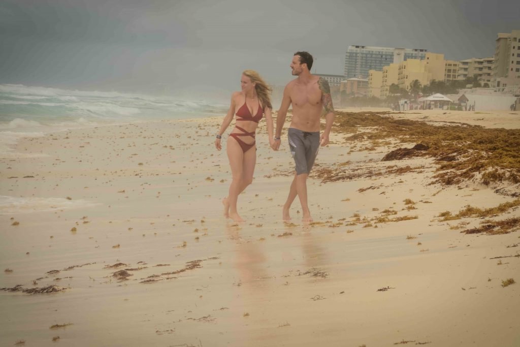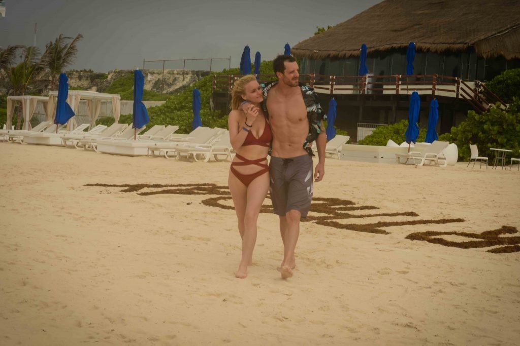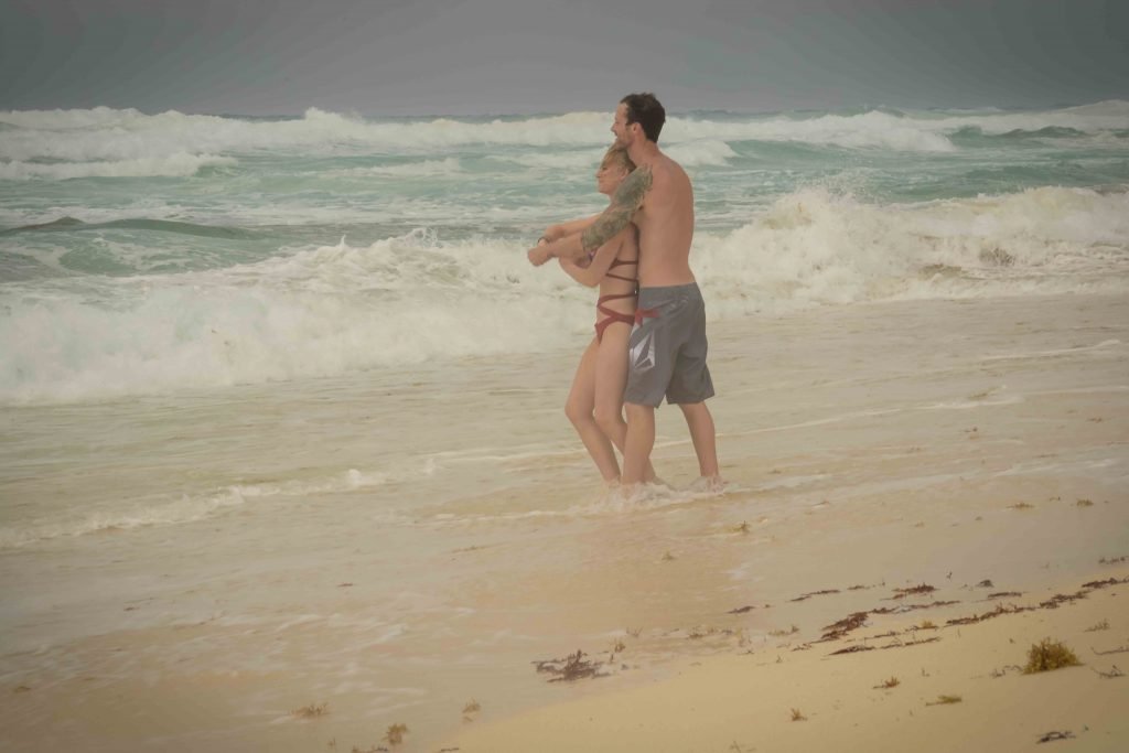 Пару видели за коктейлями в их отеле Live Aqua Beach Resort Cancun, и дождь не испортил им настроение — они смело гуляли по ветреному пляжу и заходили в неспокойные воды для купания.