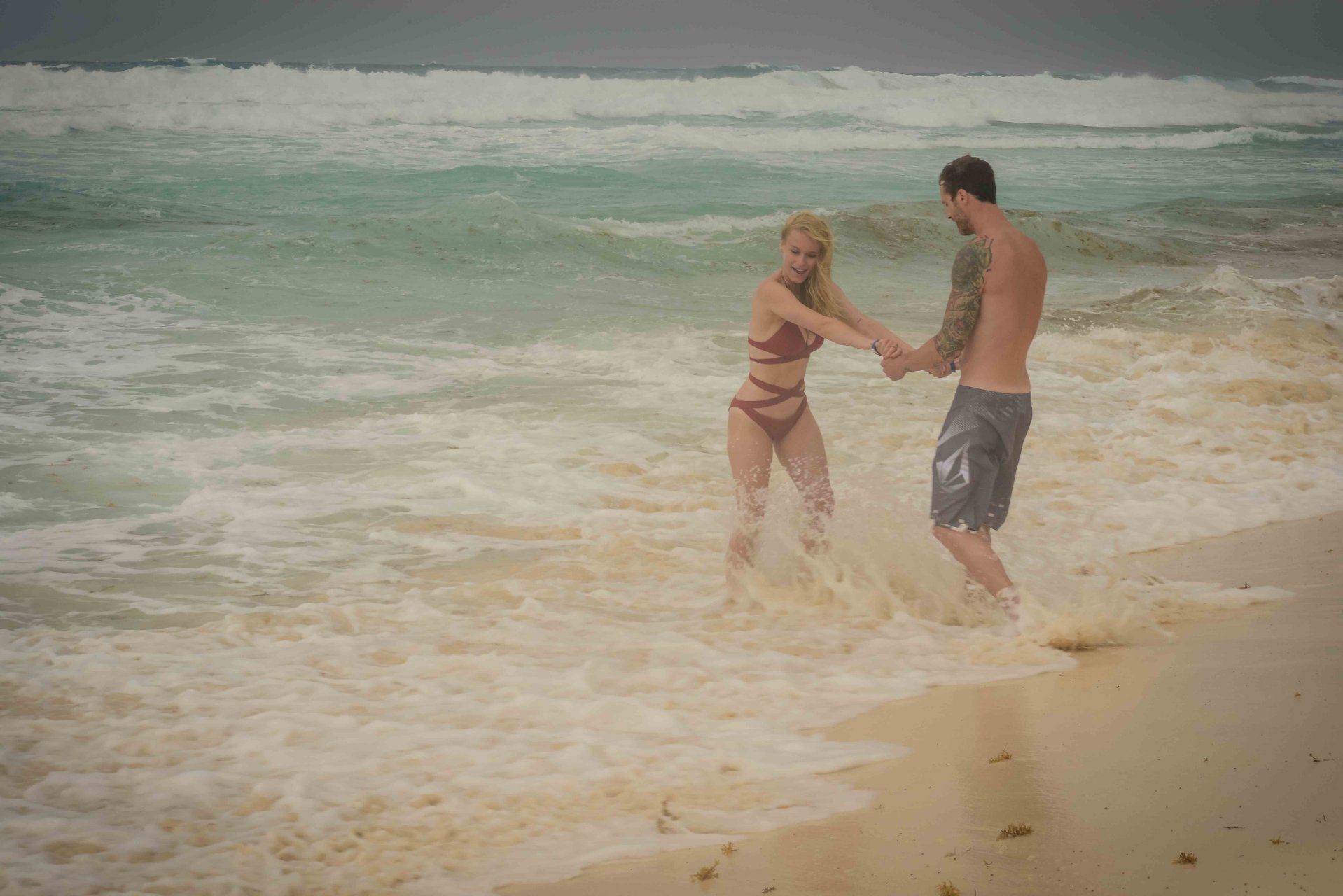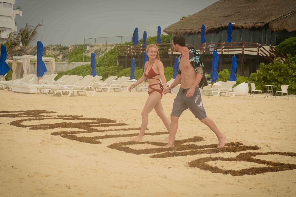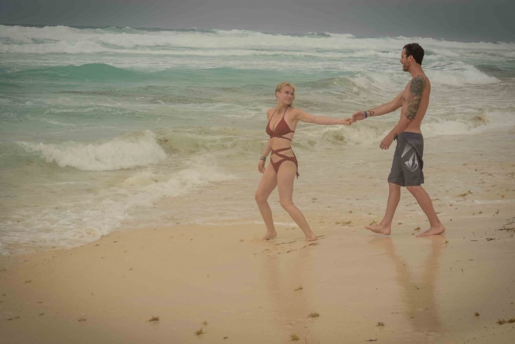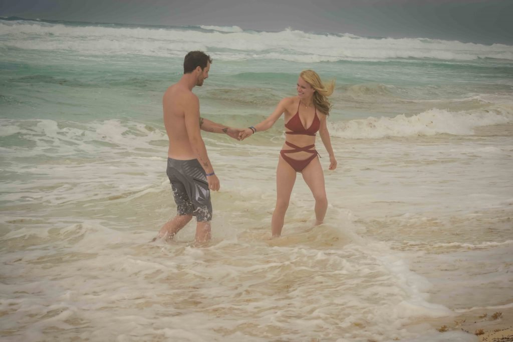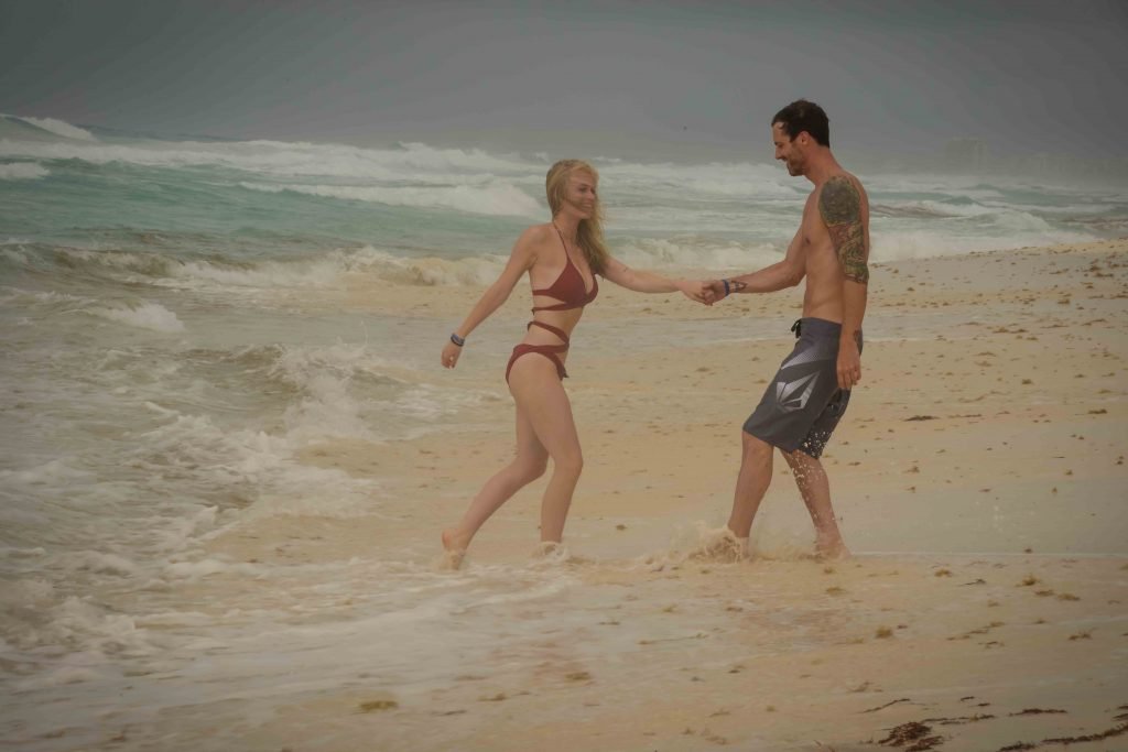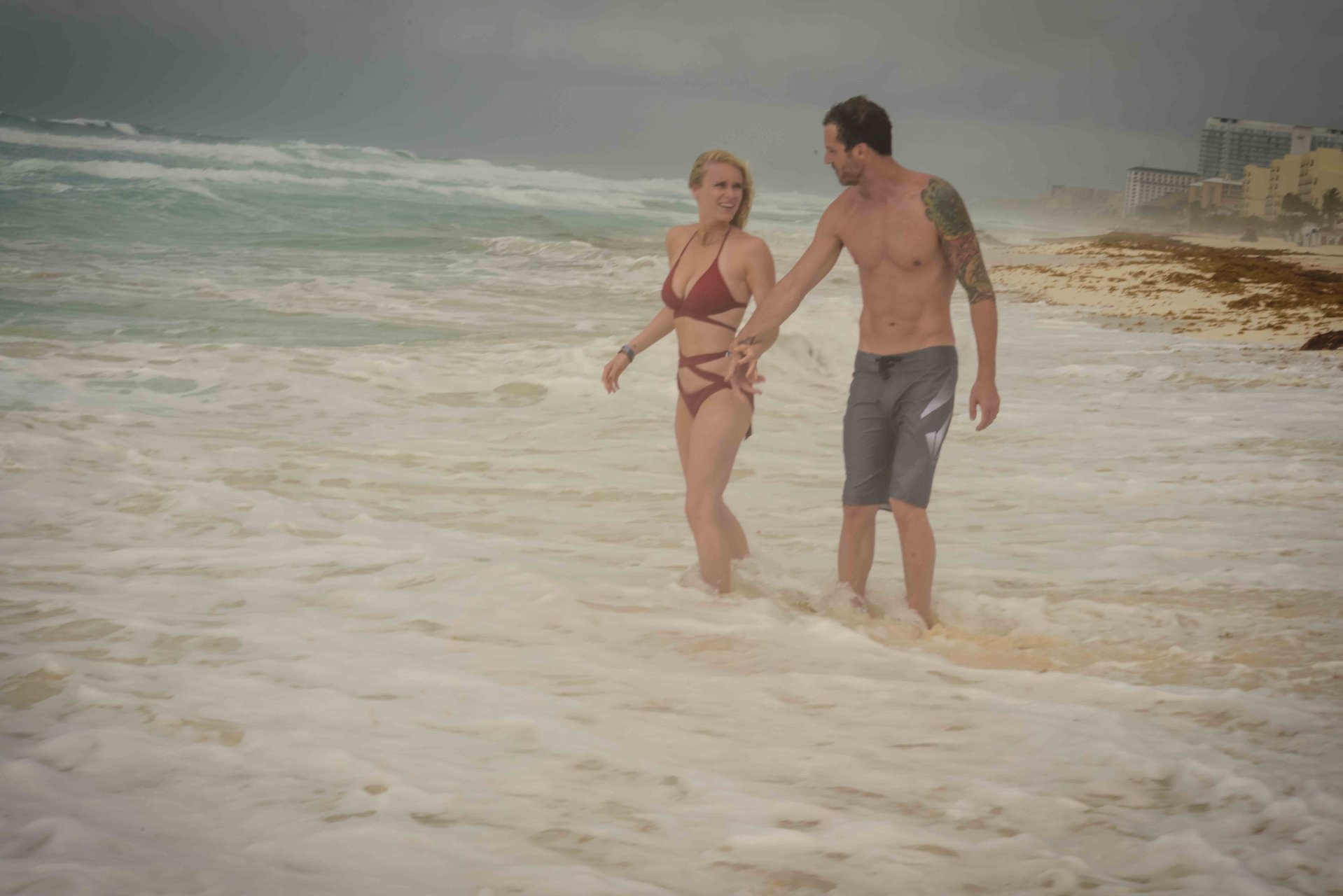 Пару видели за коктейлями в их отеле Live Aqua Beach Resort Cancun, и дождь не испортил им настроение — они смело гуляли по ветреному пляжу и заходили в неспокойные воды для купания.
