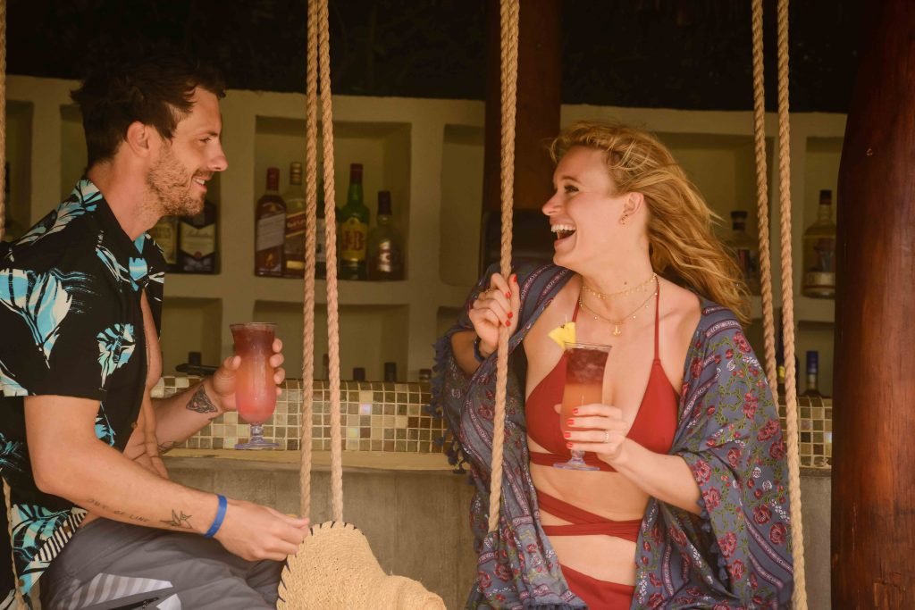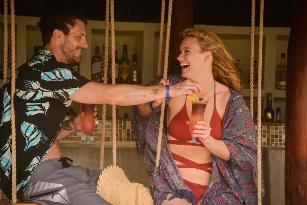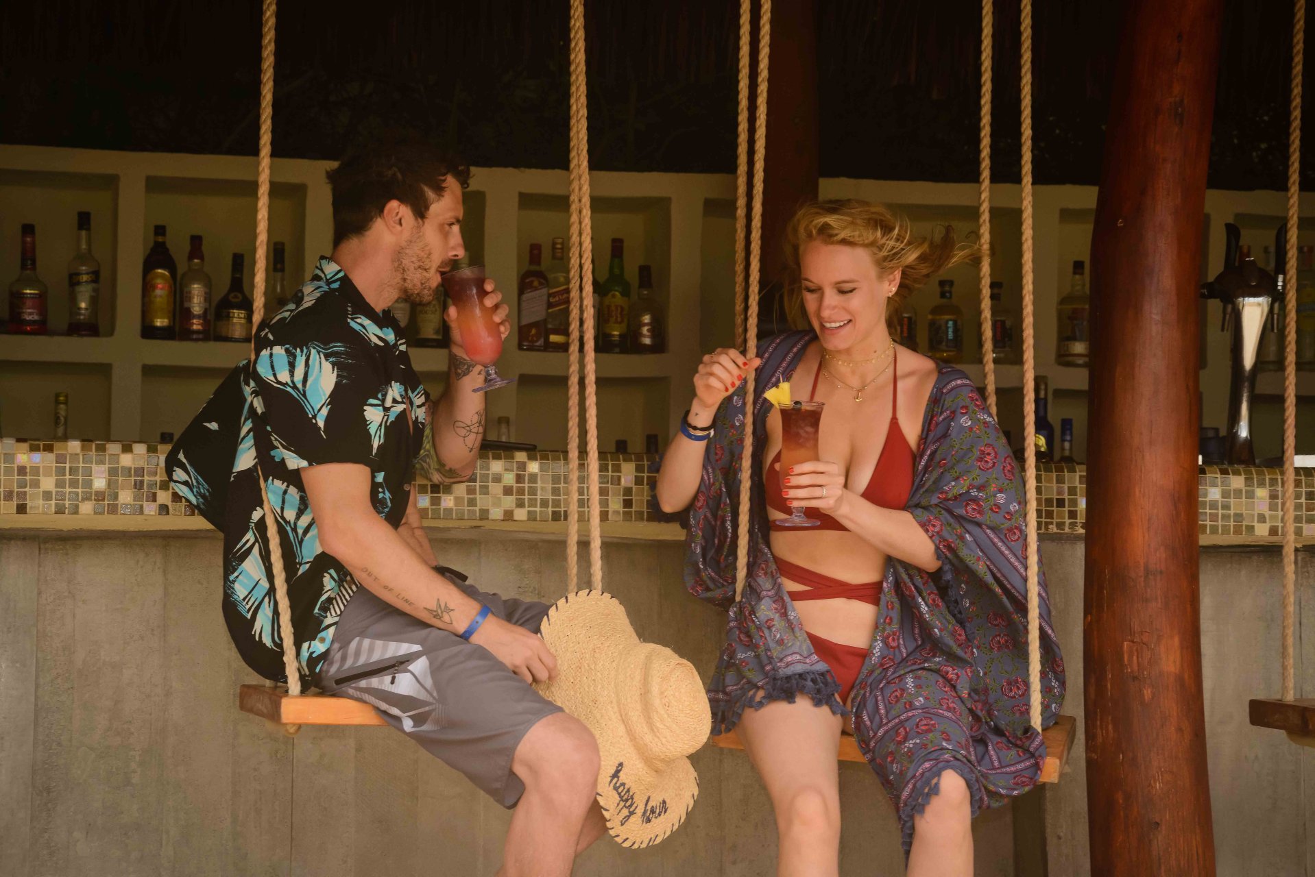 Левен выглядела потрясающе в алом бикини, которое в один момент она дополнила парой ангельских крыльев, в то время как Тилки демонстрировал подтянутый торс в серых плавках.