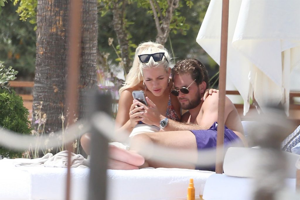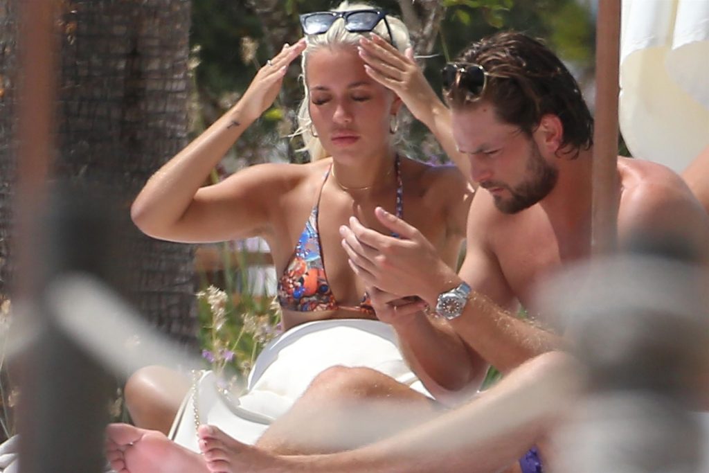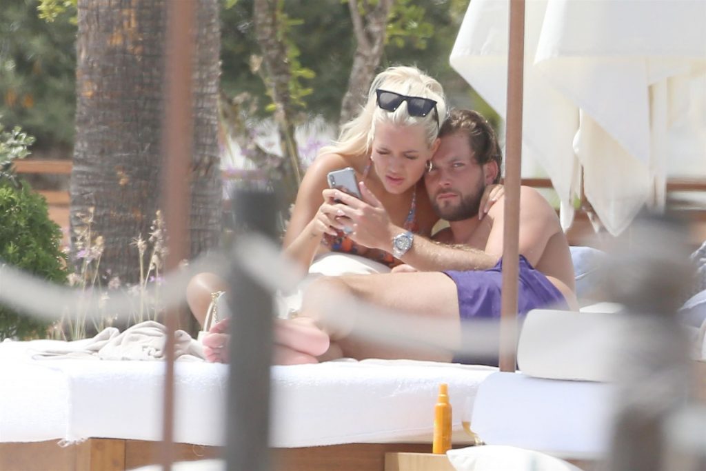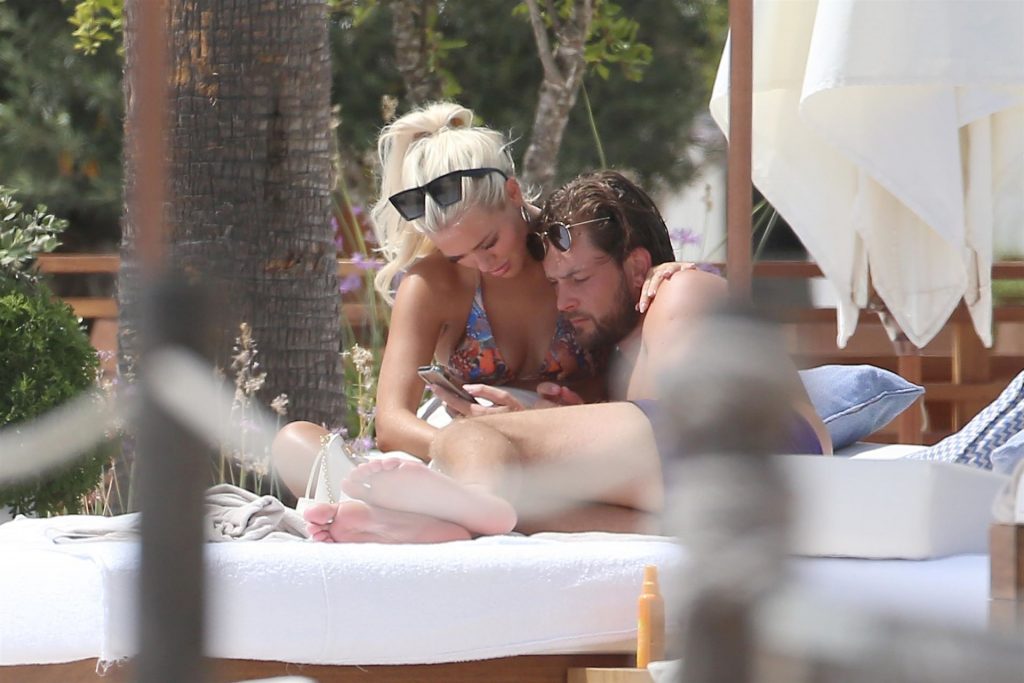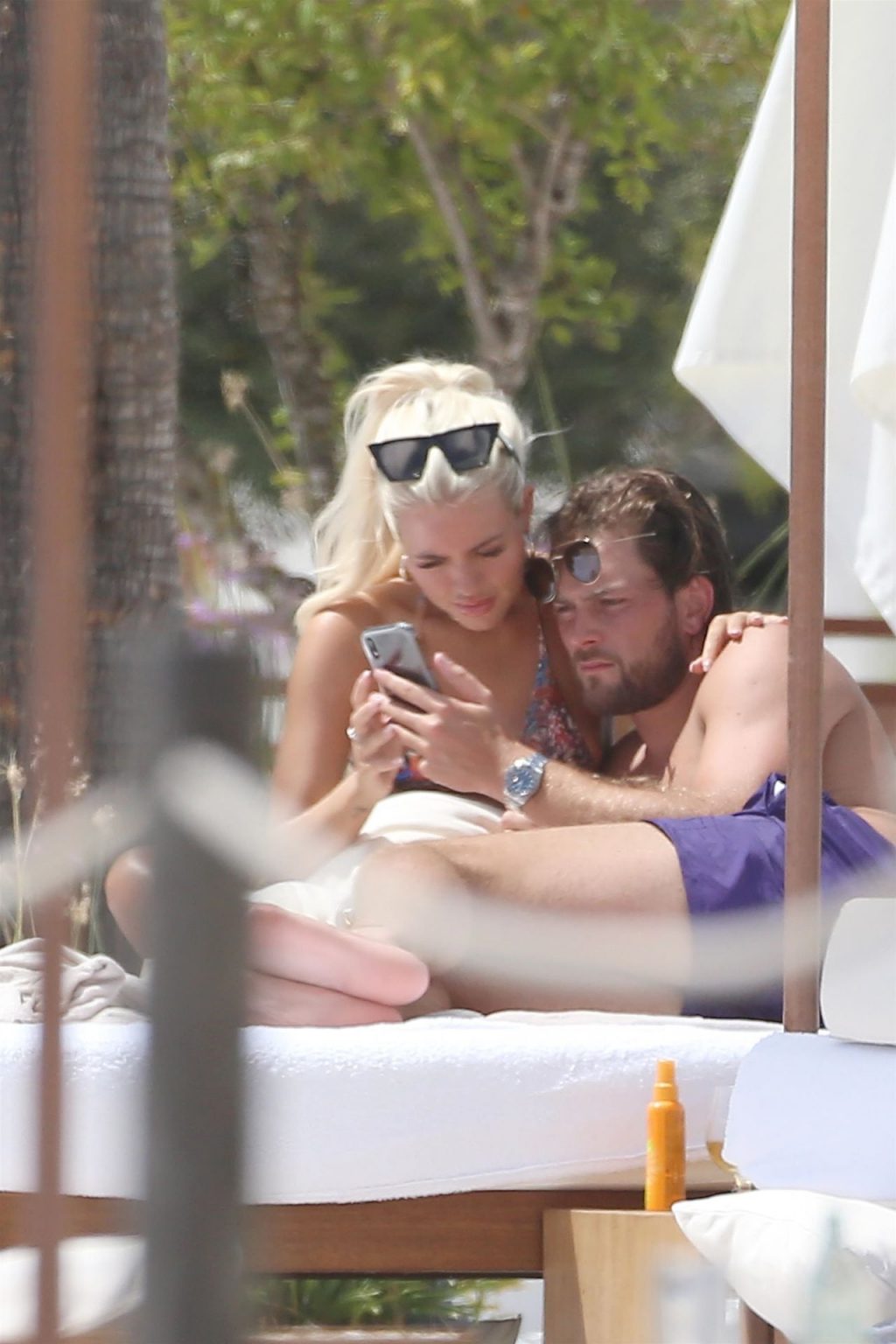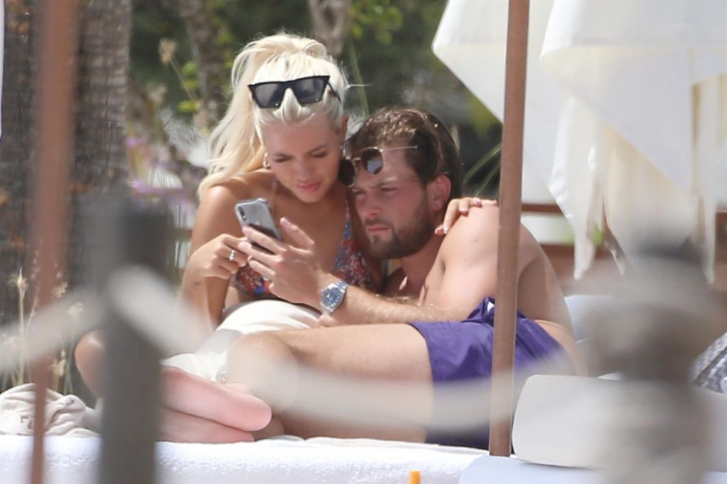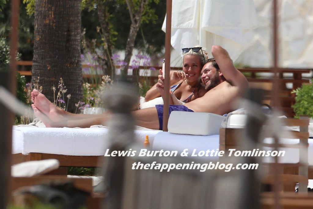 Льюис Бертон и Лотти Томлинсон (22) запечатлены во время своего отпуска на Ибице после того, как они недавно подтвердили свои романтические отношения, 23.08.2020.