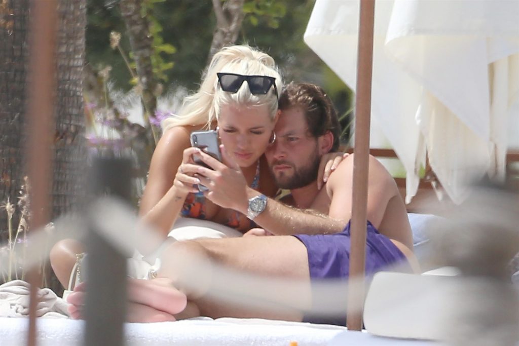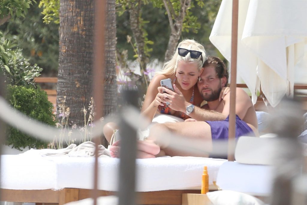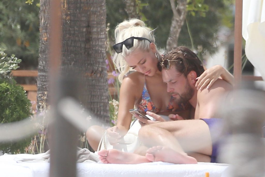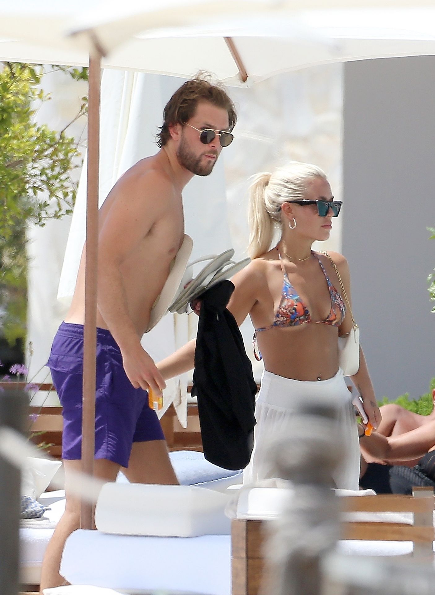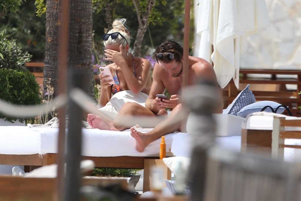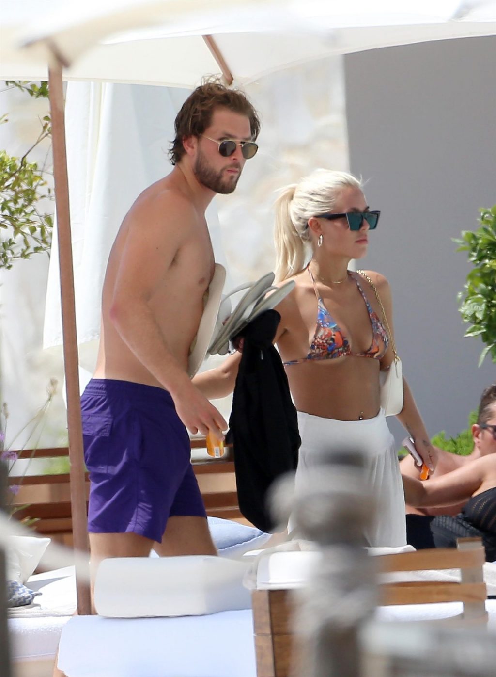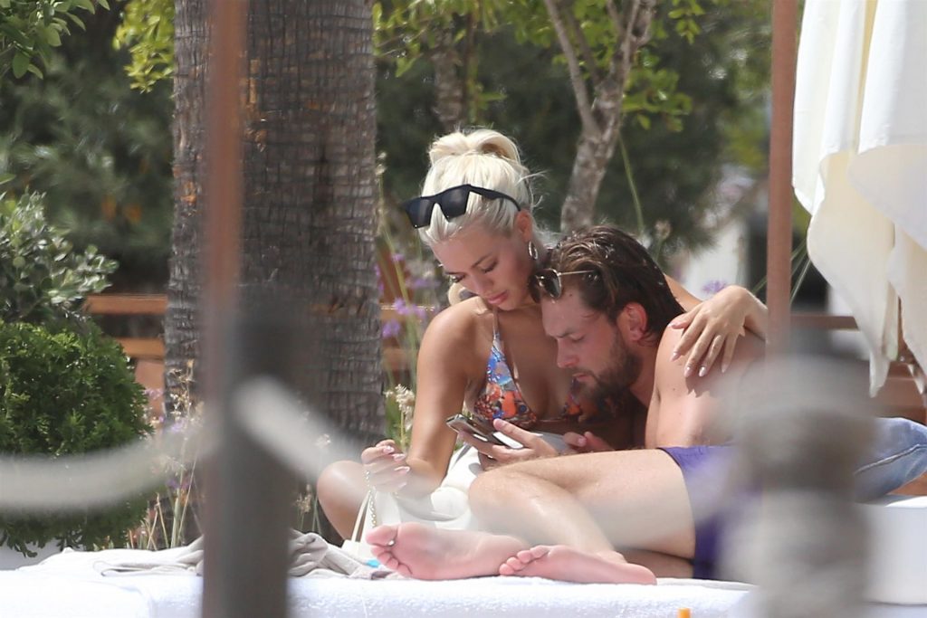 Льюис Бертон и Лотти Томлинсон (22) запечатлены во время своего отпуска на Ибице после того, как они недавно подтвердили свои романтические отношения, 23.08.2020.