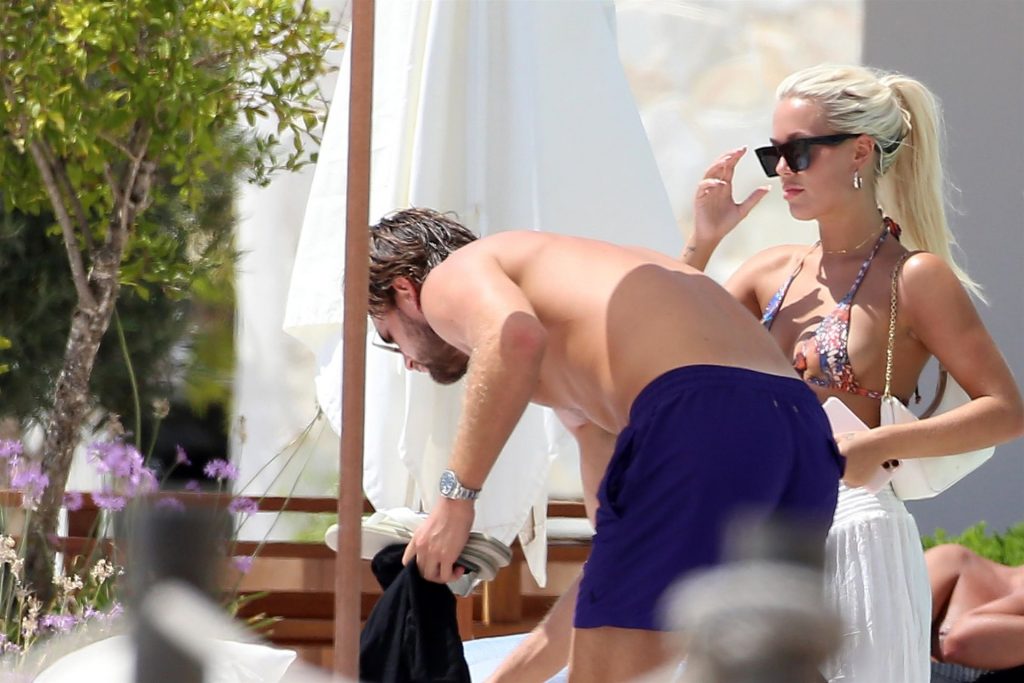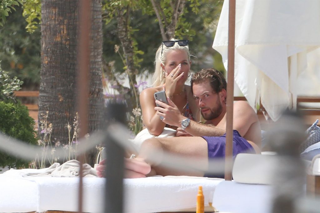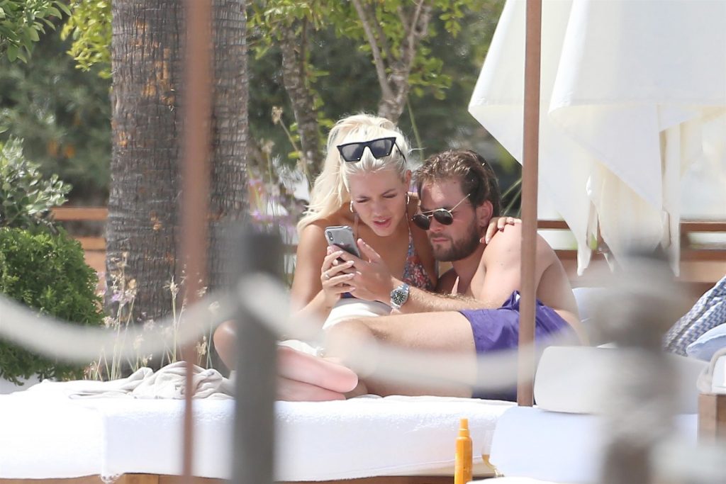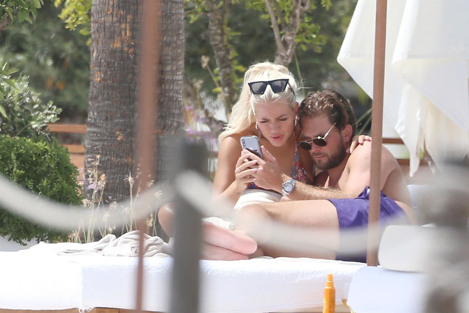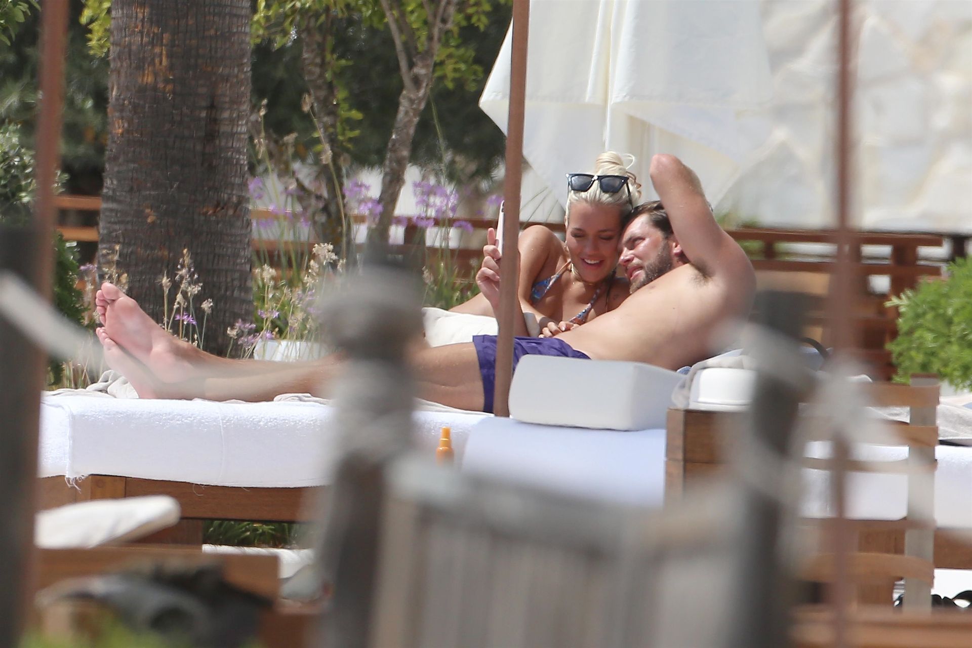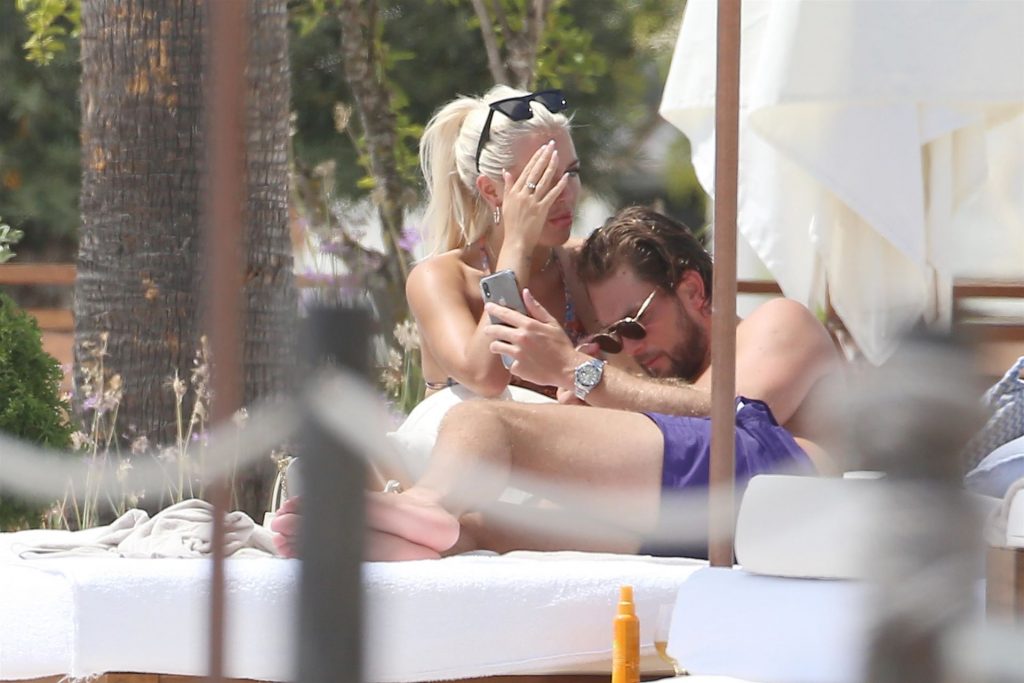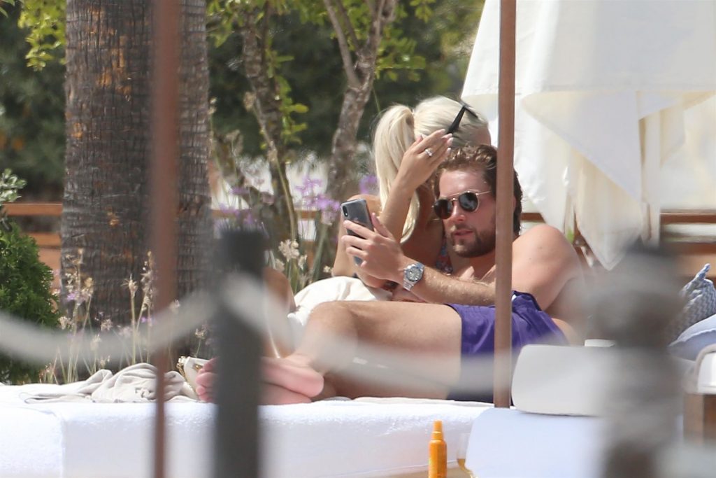Льюис Бертон и Лотти Томлинсон (22) запечатлены во время своего отпуска на Ибице после того, как они недавно подтвердили свои романтические отношения, 23.08.2020.