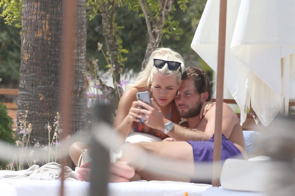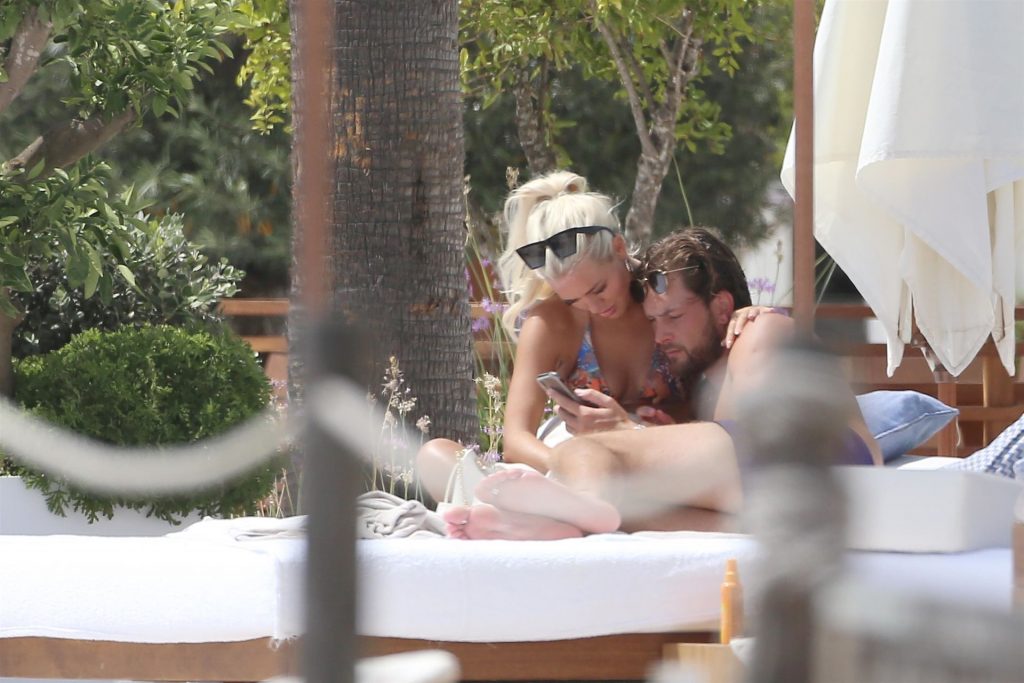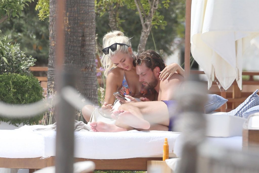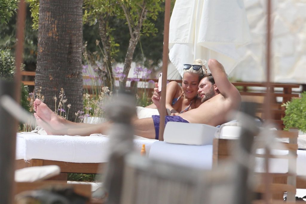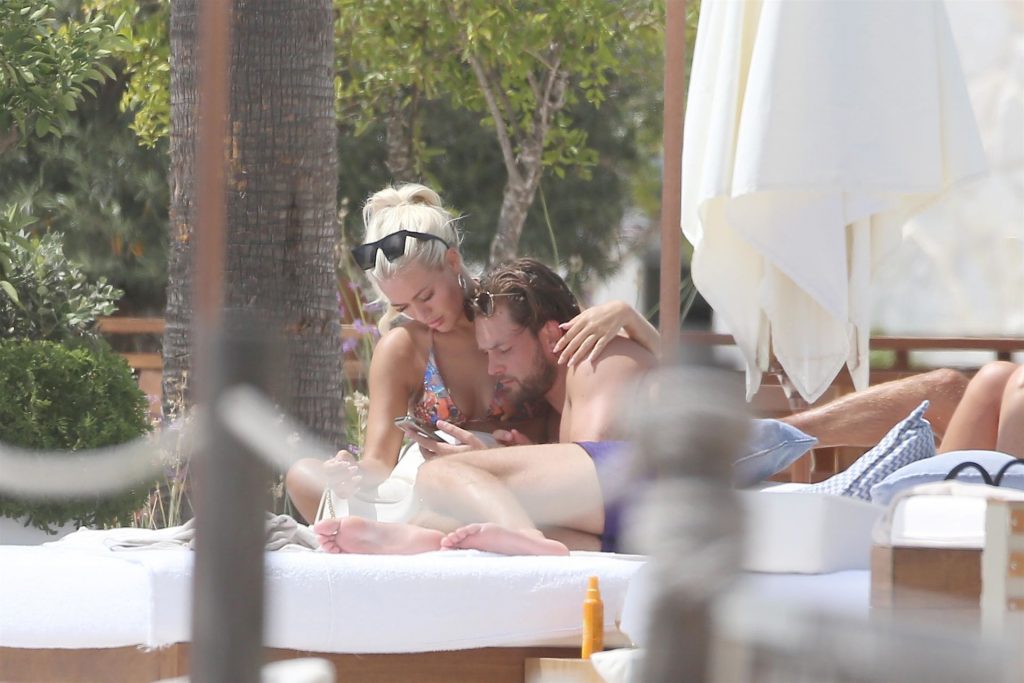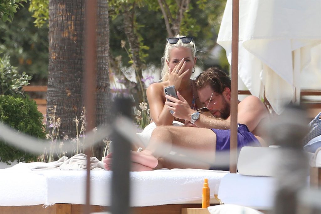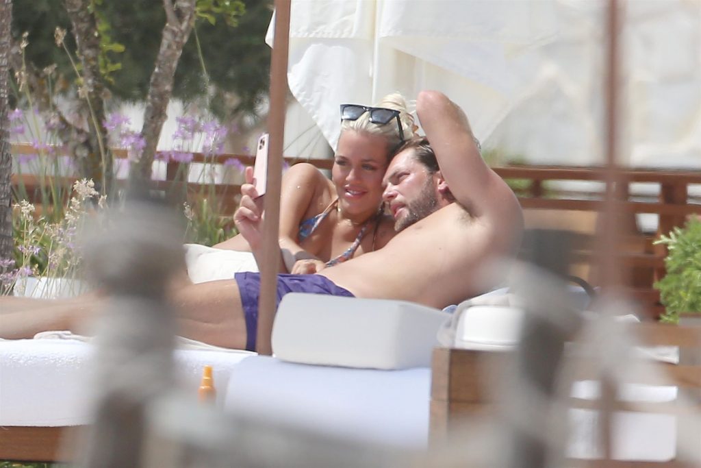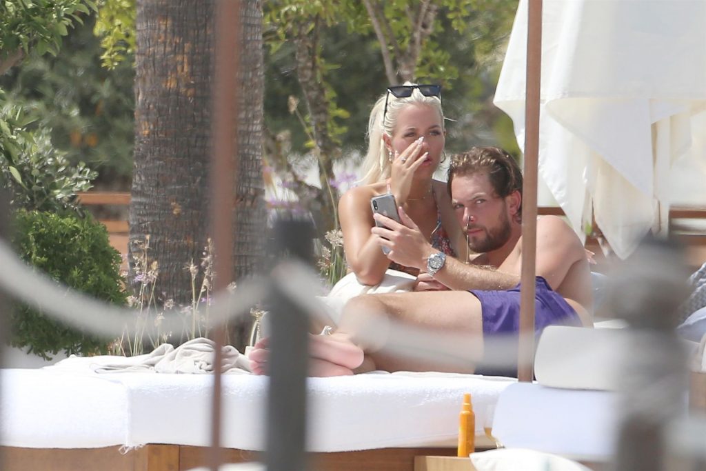 Льюис Бертон и Лотти Томлинсон (22) запечатлены во время своего отпуска на Ибице после того, как они недавно подтвердили свои романтические отношения, 23.08.2020.