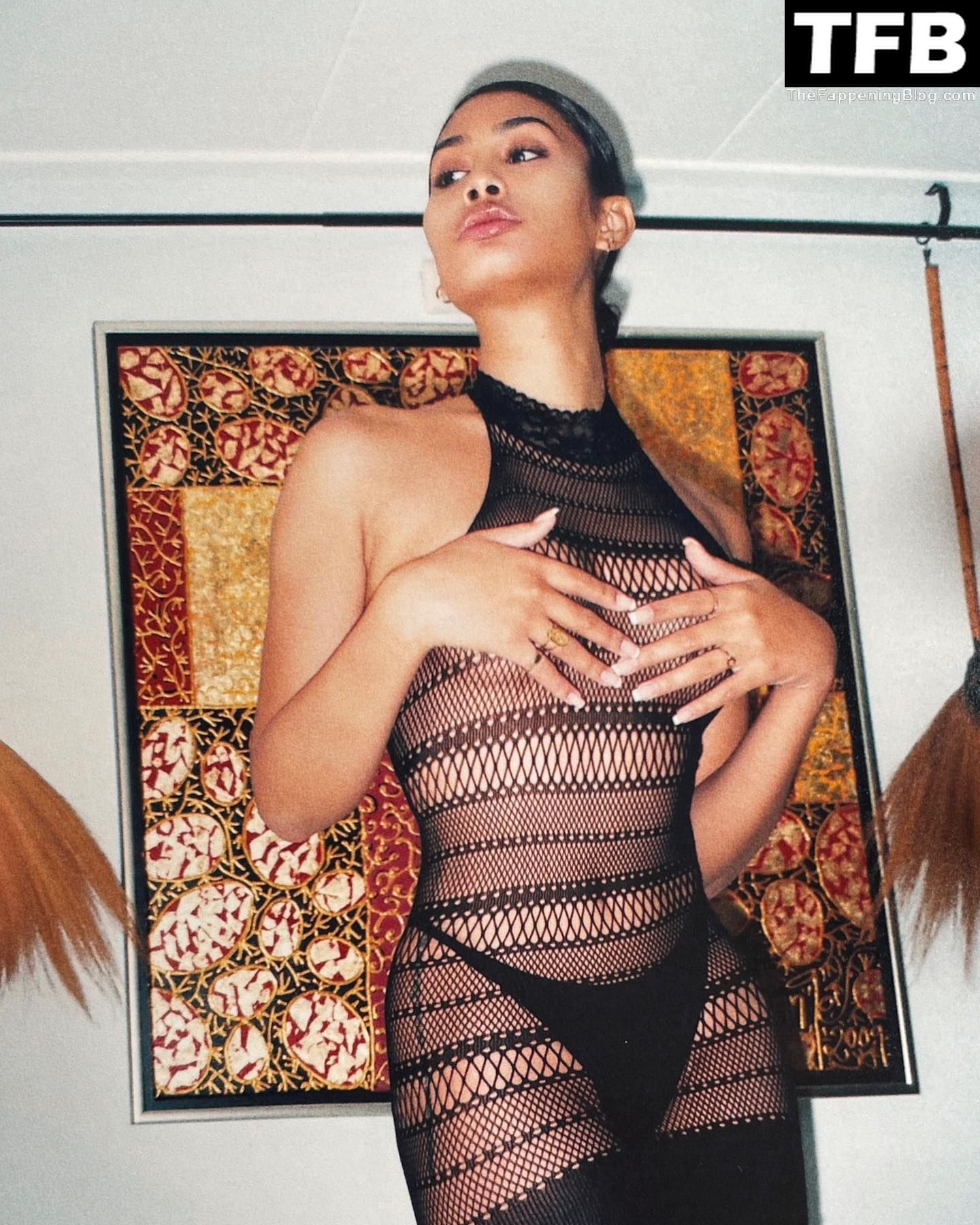 TS девушка Leyna Bloom демонстрирует свои груди в различных полуобнажённых и сексуальных фотосессиях для социальных сетей.