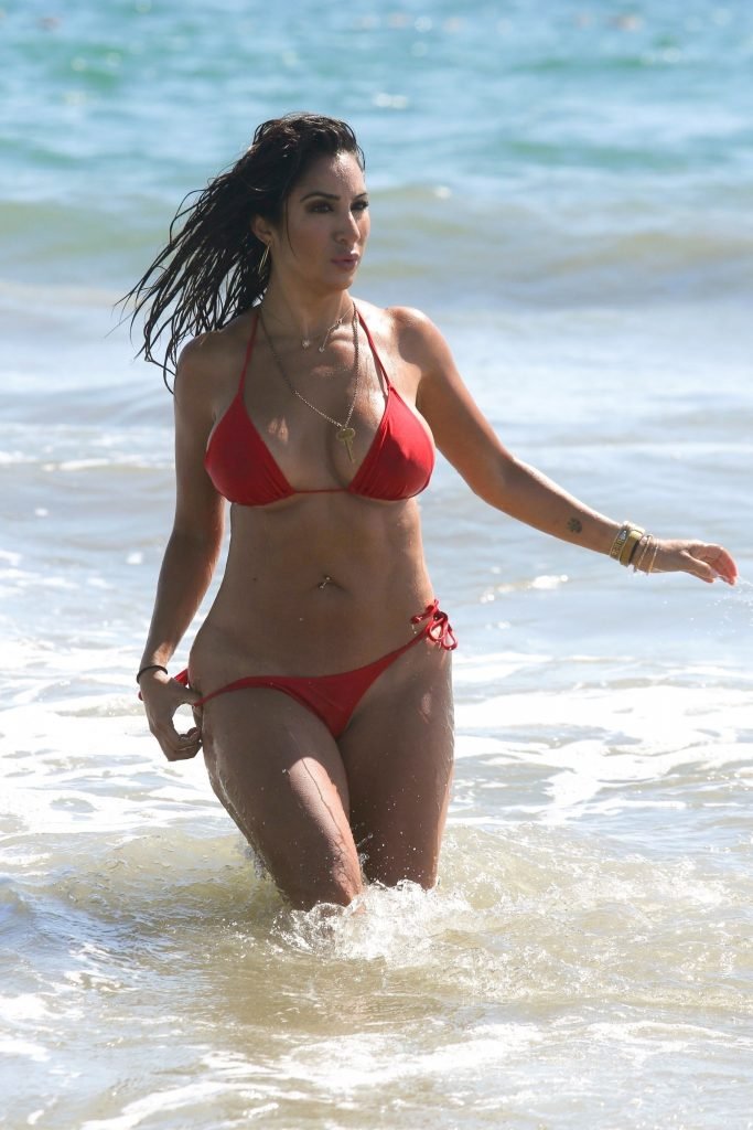 Джереми Пивен бывшая Лиана Мендоза была замечена, демонстрируя свою невероятно изогнутую фигуру в ярко-красном бикини, охлаждаясь в Санта-Монике перед 4 июля, 03.07.2018. Лиана Мендоза — 33-летняя испанская телеведущая.