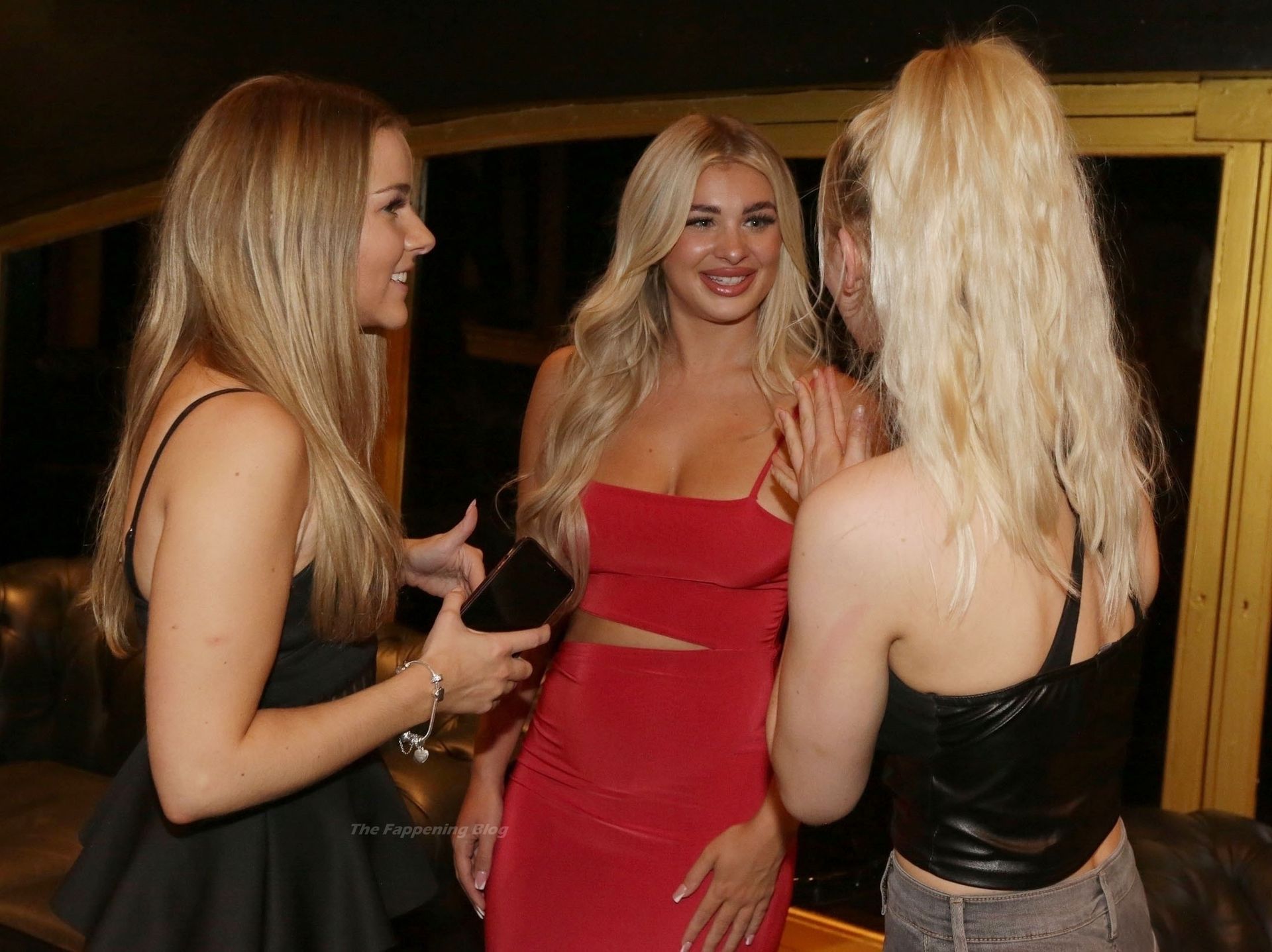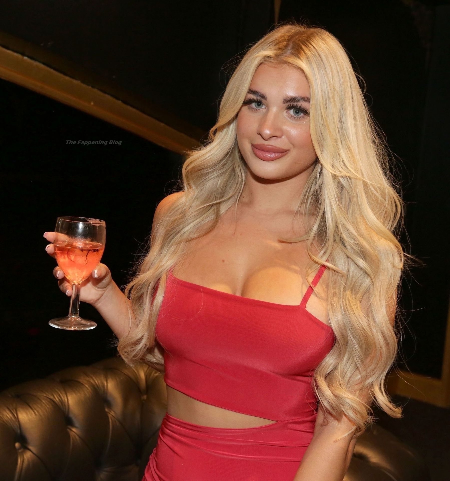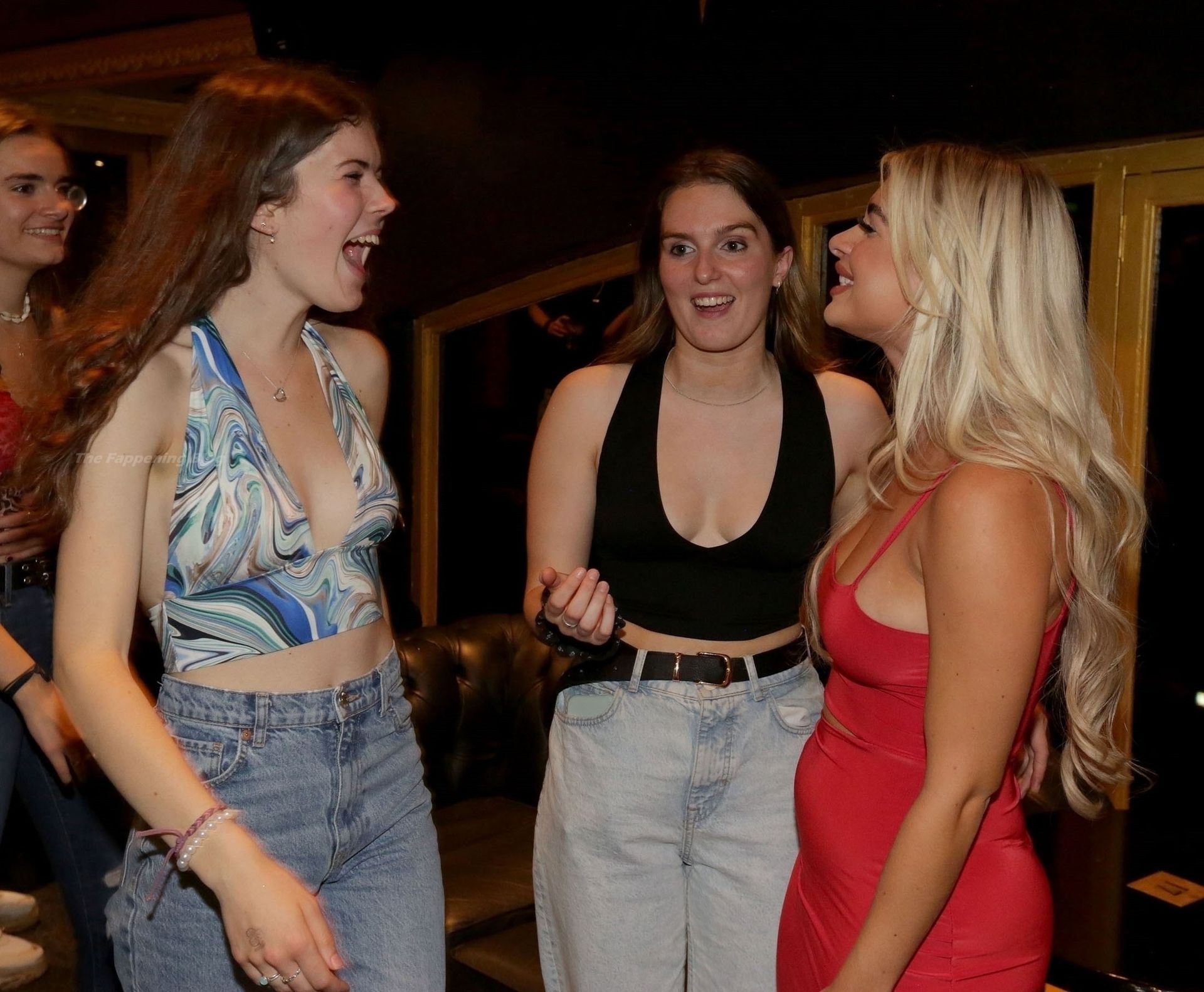 Любимица шоу Love Island Либерти Пул выглядит сногсшибательно в мини-красном платье, посещая казино-ночной клуб Гилдфорда, где она танцует на сцене и встречается с обожающими фанатами, 30.08.2021.
